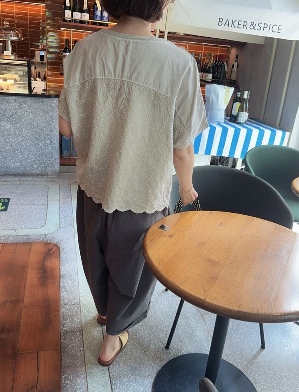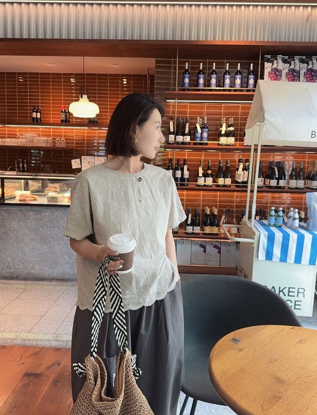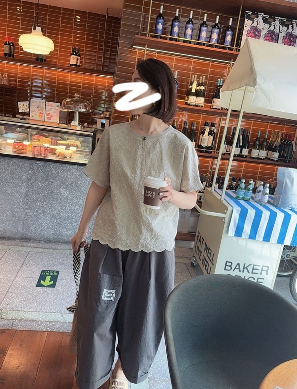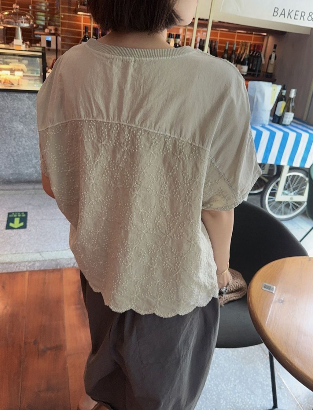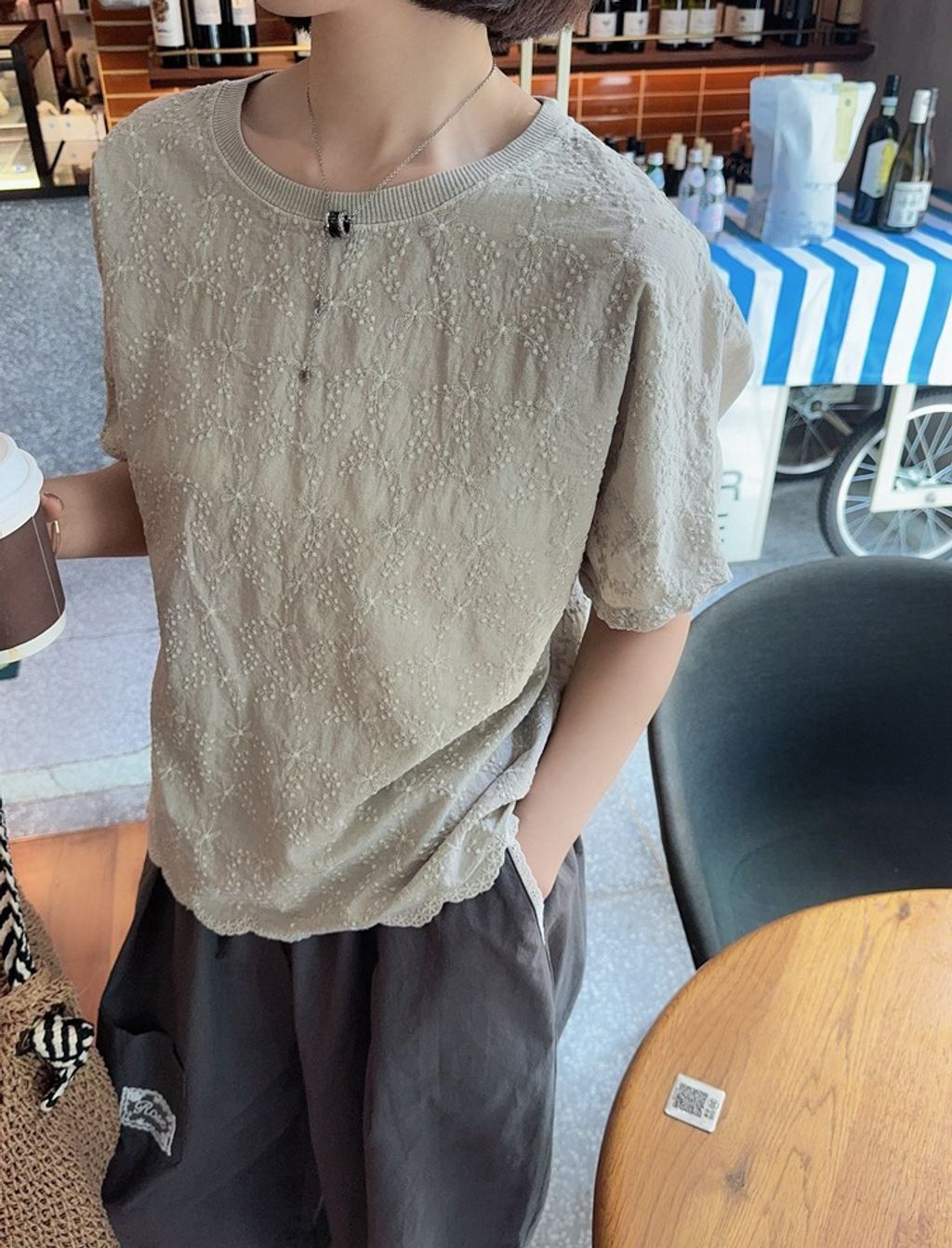 正韓 法式復古雕花刺繡質感上衣*淺灰*【N0731-99】