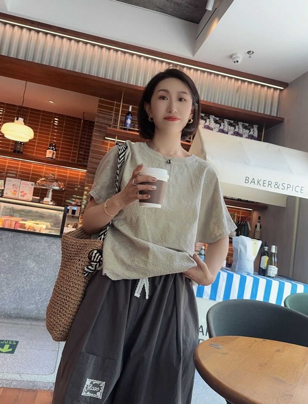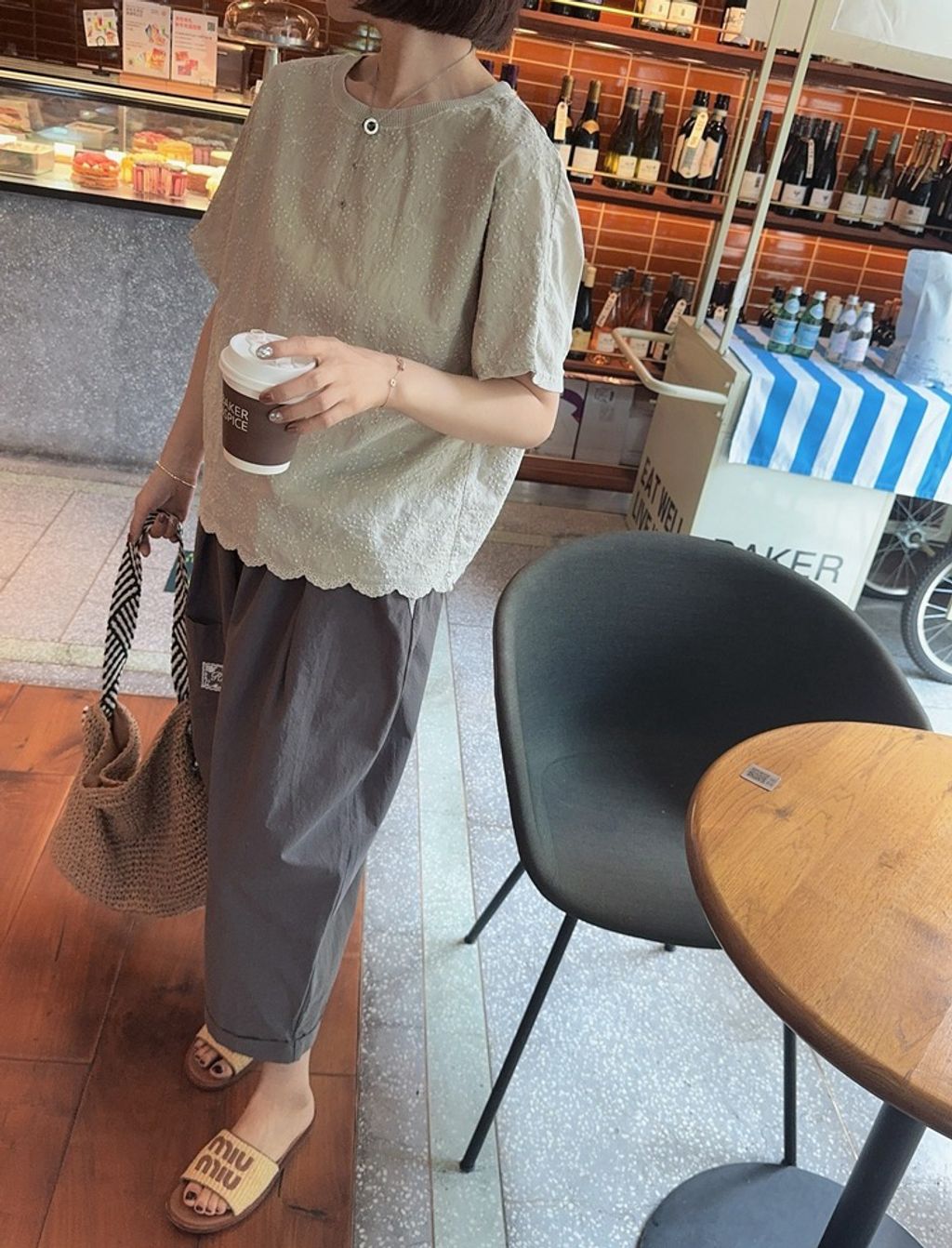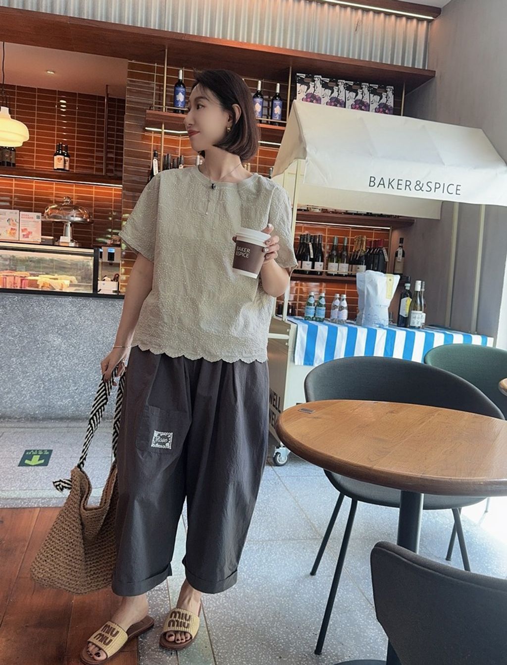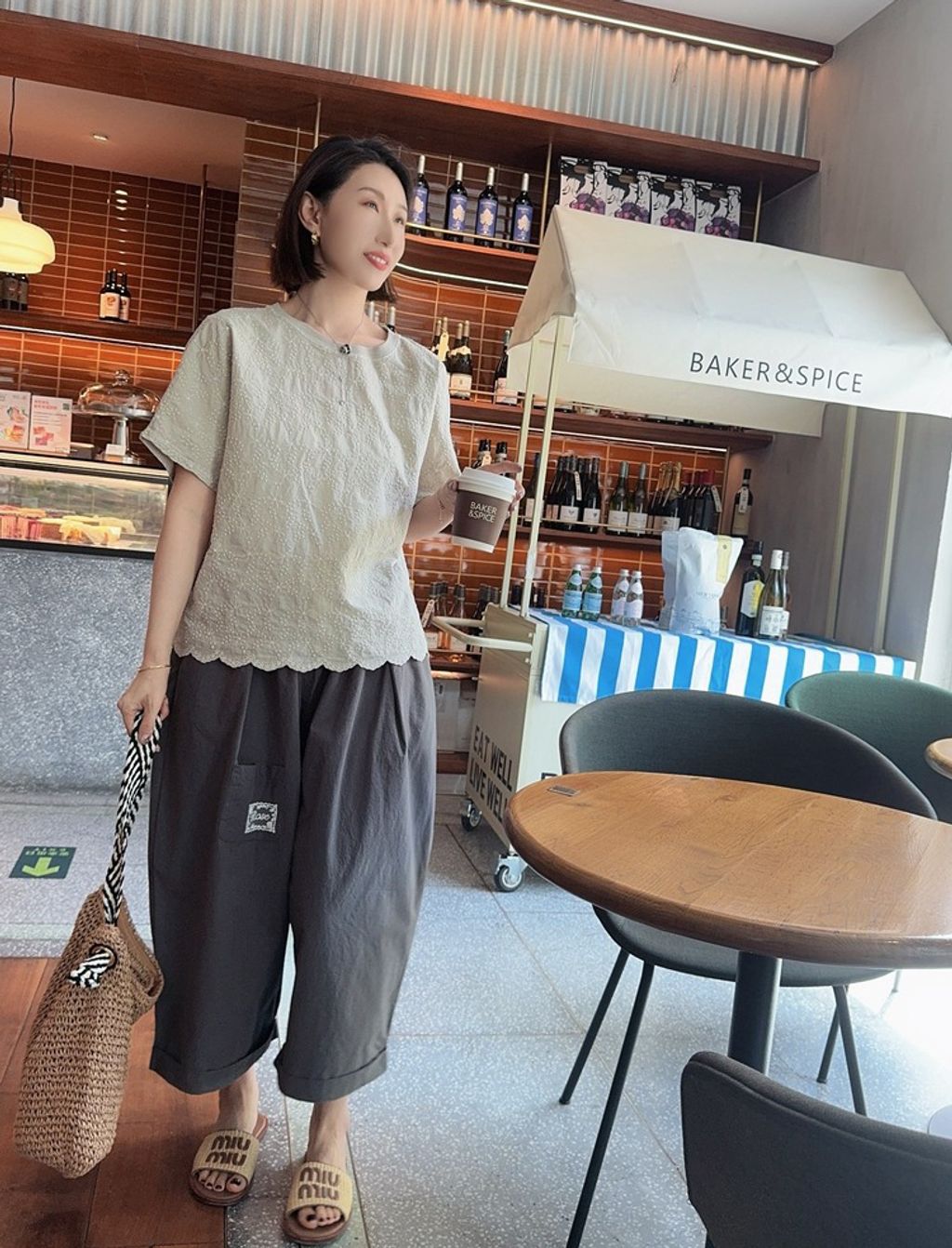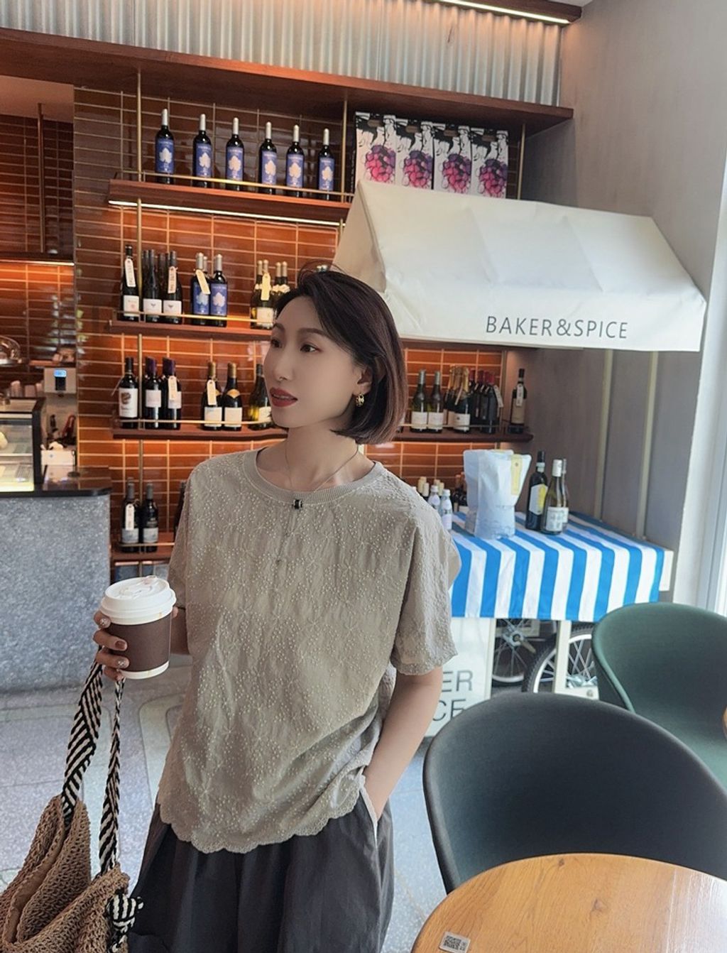 正韓 法式復古雕花刺繡質感上衣*淺灰*【N0731-99】