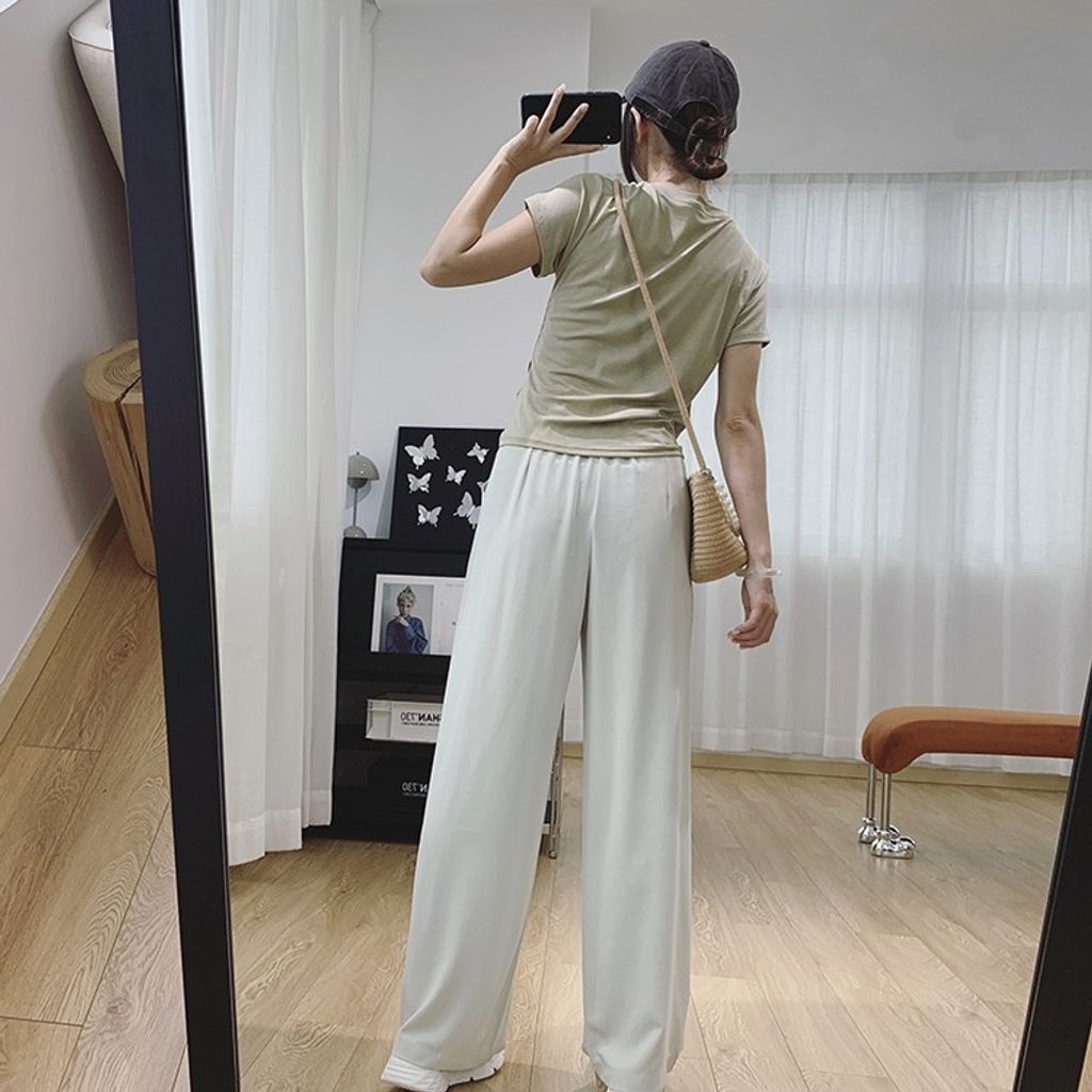 涼感好穿親膚抖抖褲休閒褲*藍奶油杏*【N0731-109】