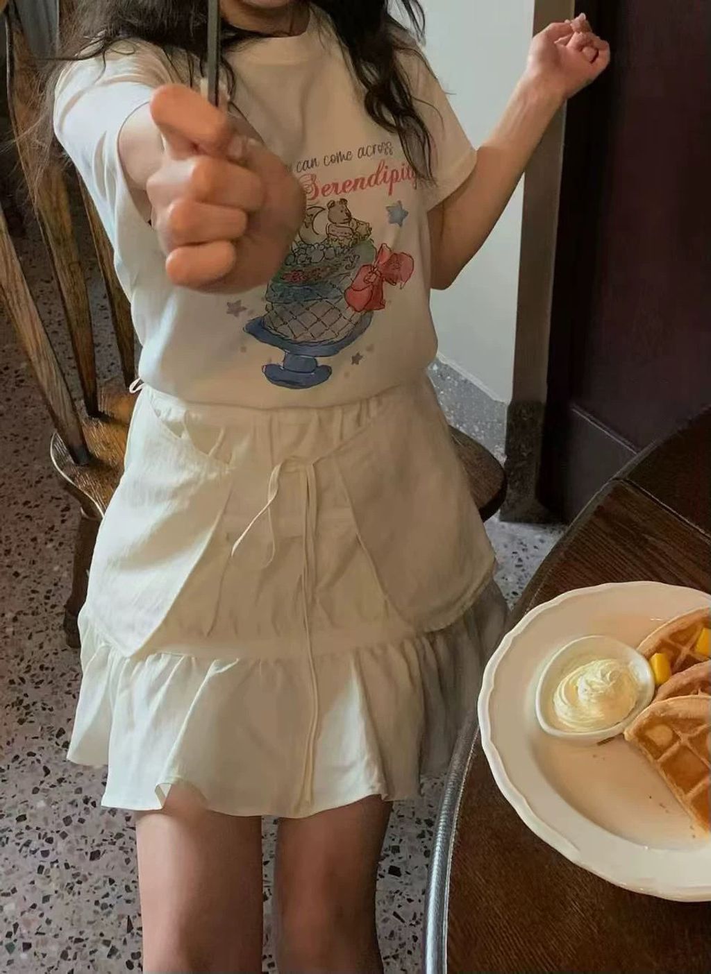 可愛手繪感小熊聖代短T*米*【P0812-78】