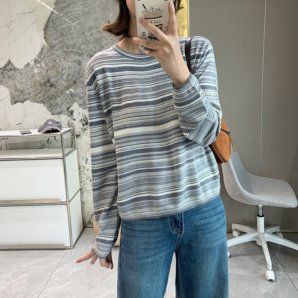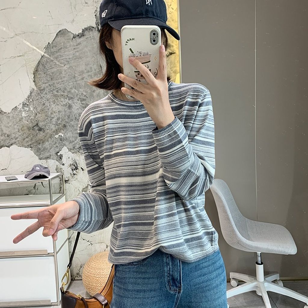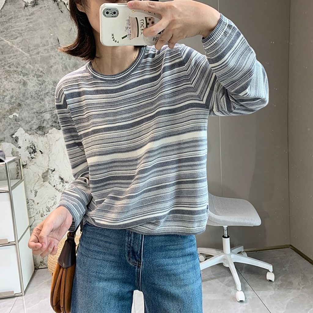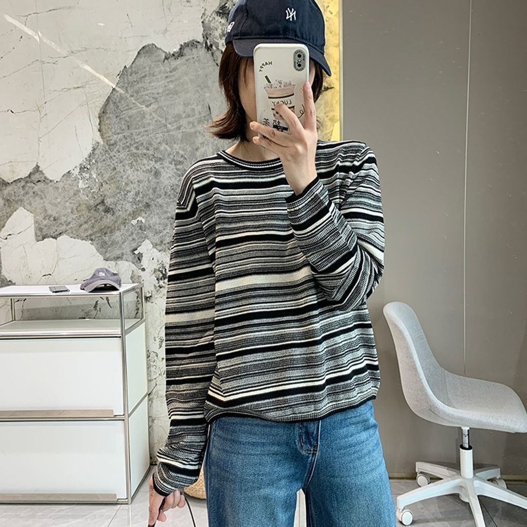 復古氣質撞色條紋柔軟長T *灰黑*【P0812-09】
