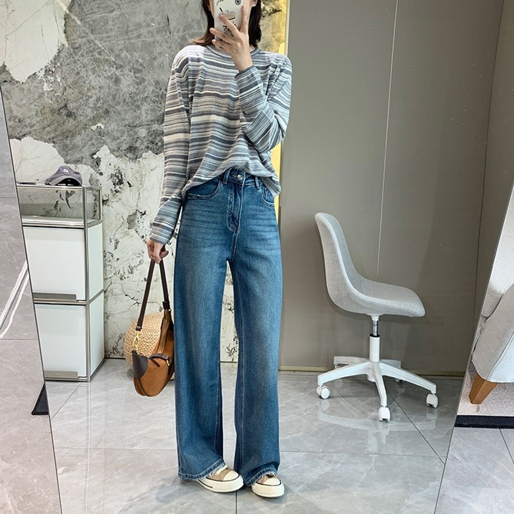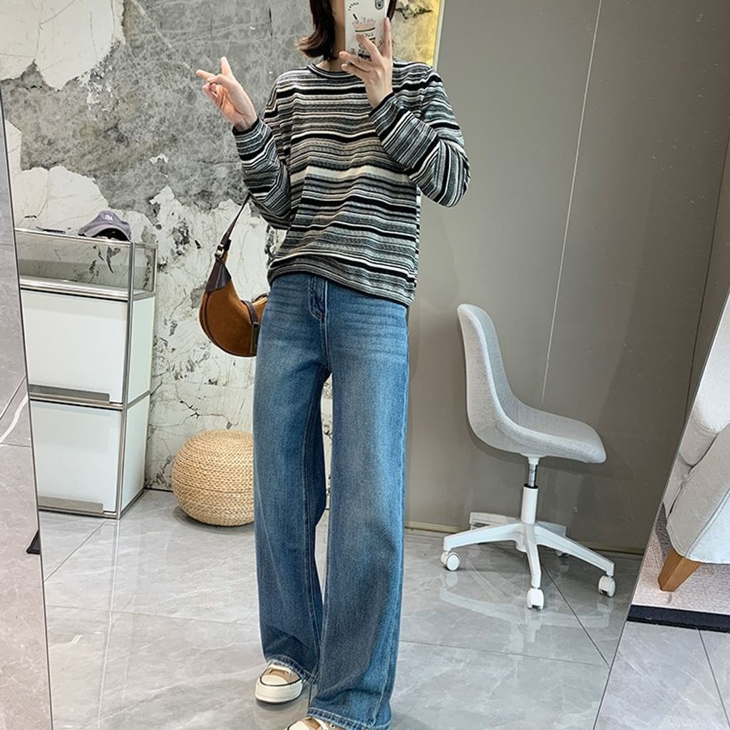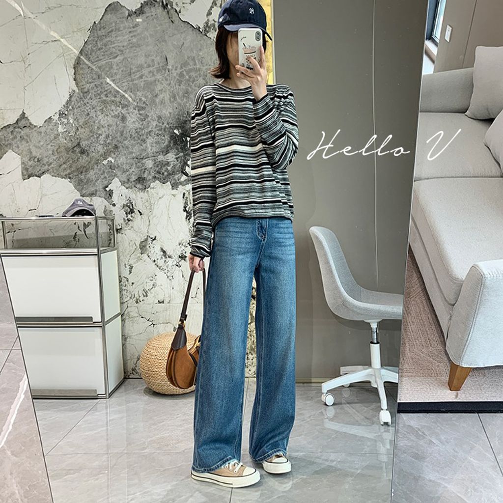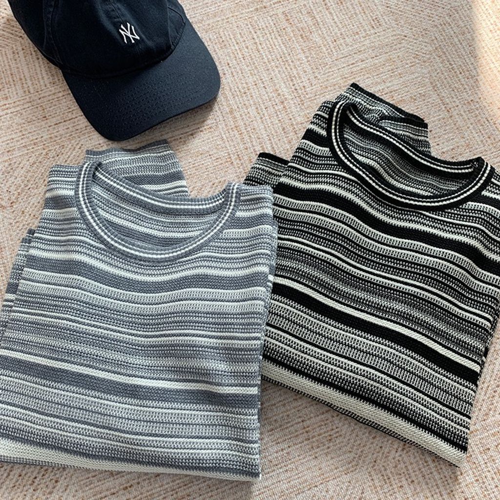 復古氣質撞色條紋柔軟長T *灰黑*【P0812-09】