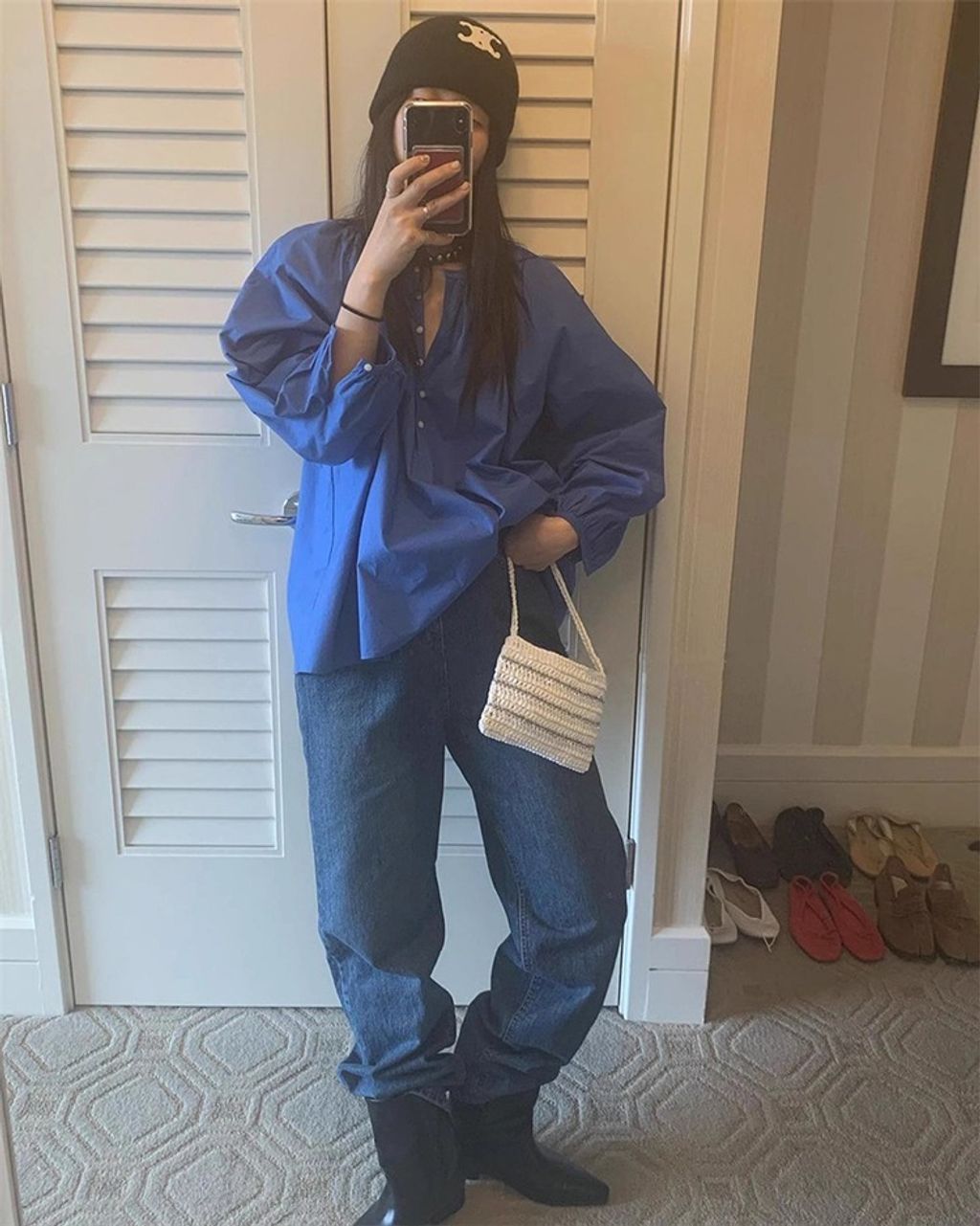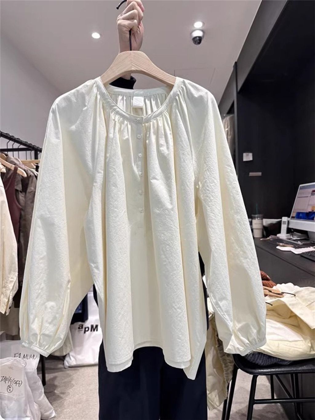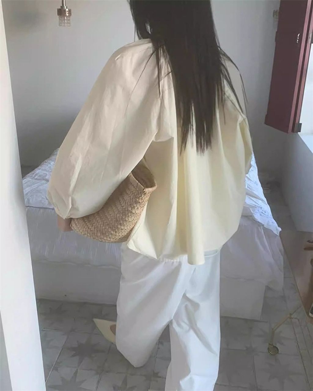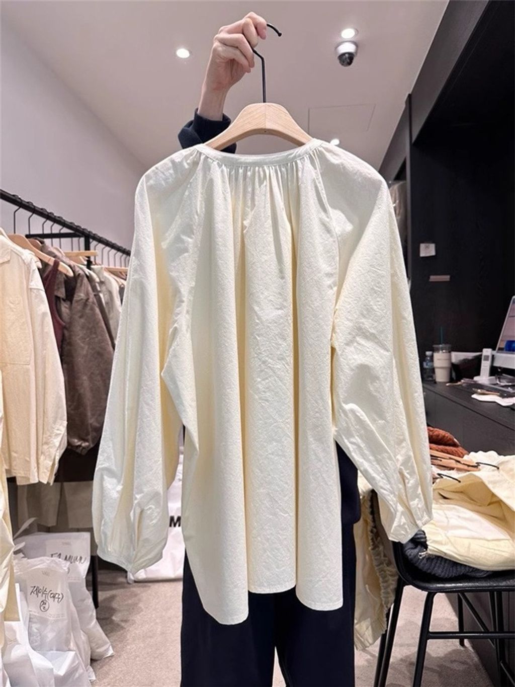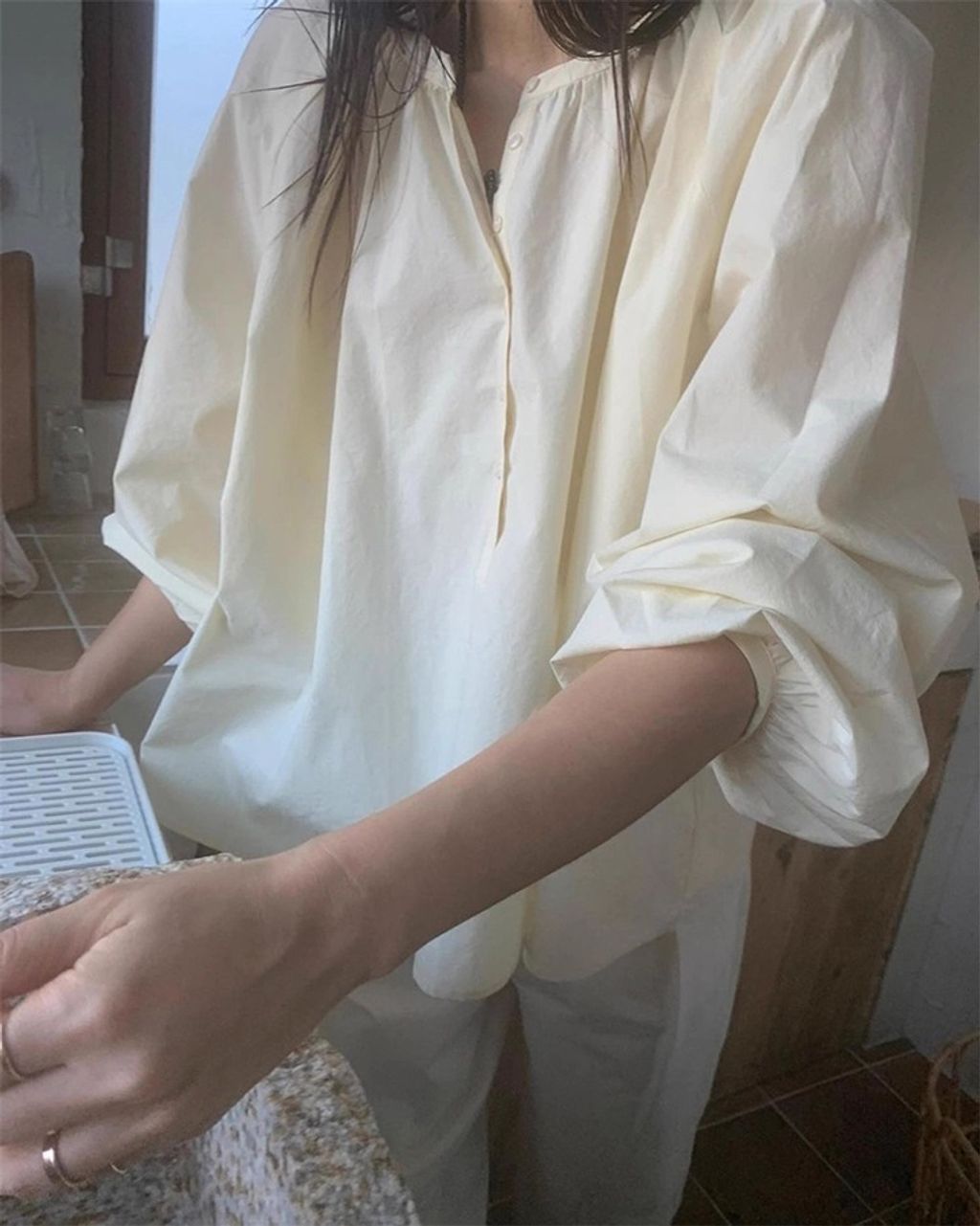 正韓 法式復古蓬袖質感襯衫*藍米*【P0812-56】