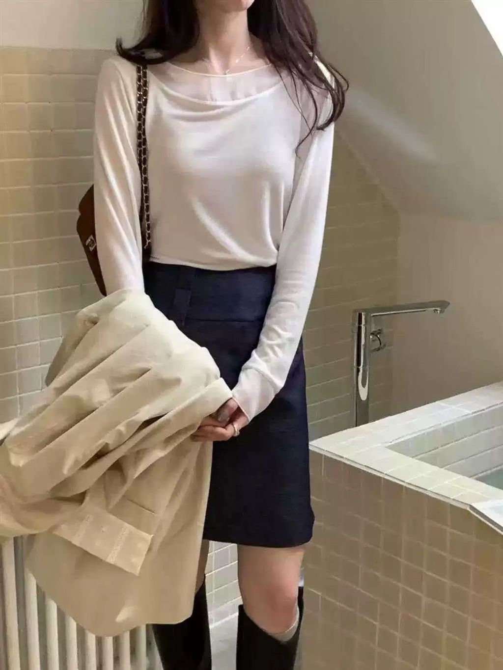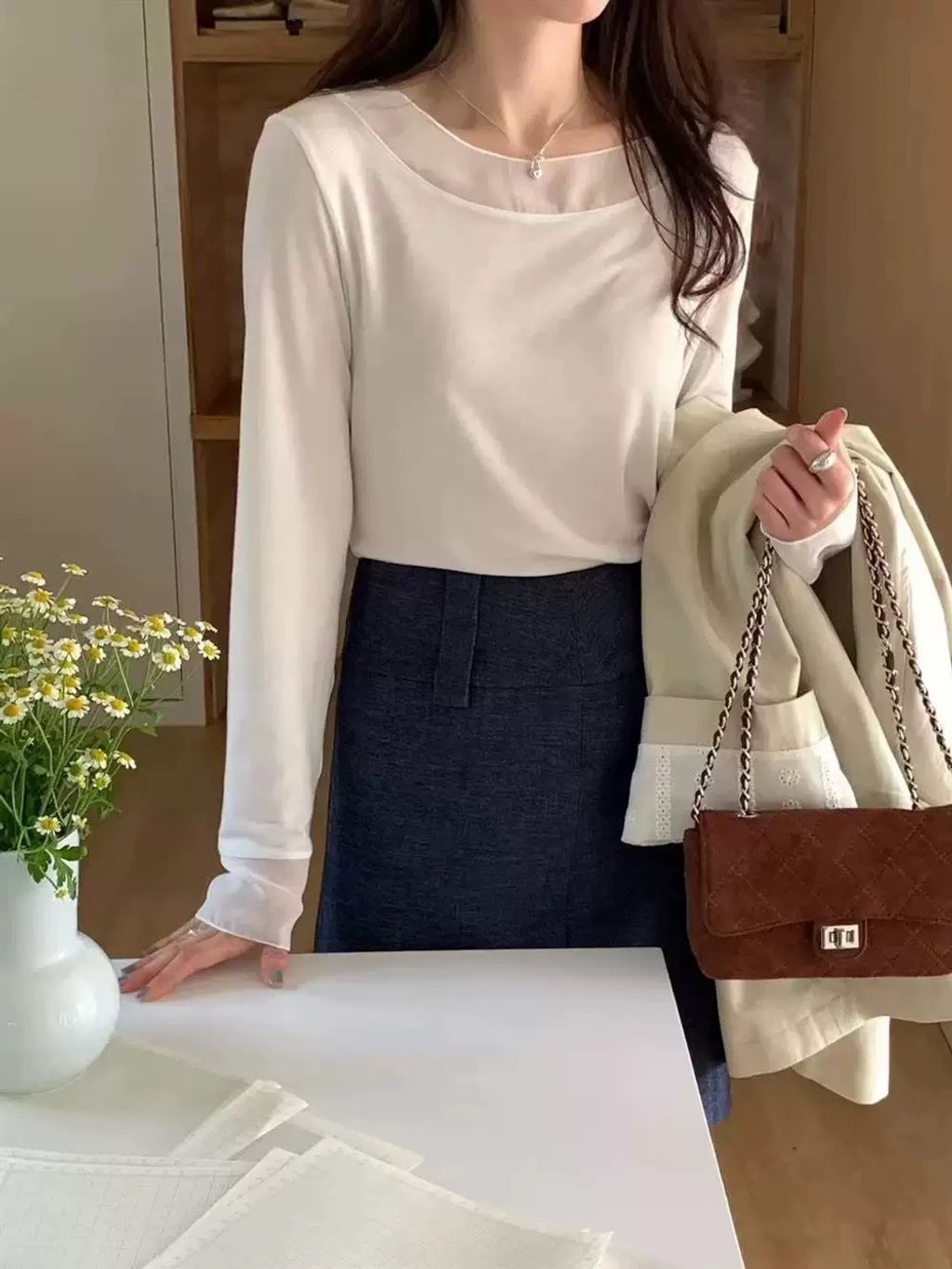 正韓 清純甜美網紗拼接長T*白杏藍*【P0812-79】