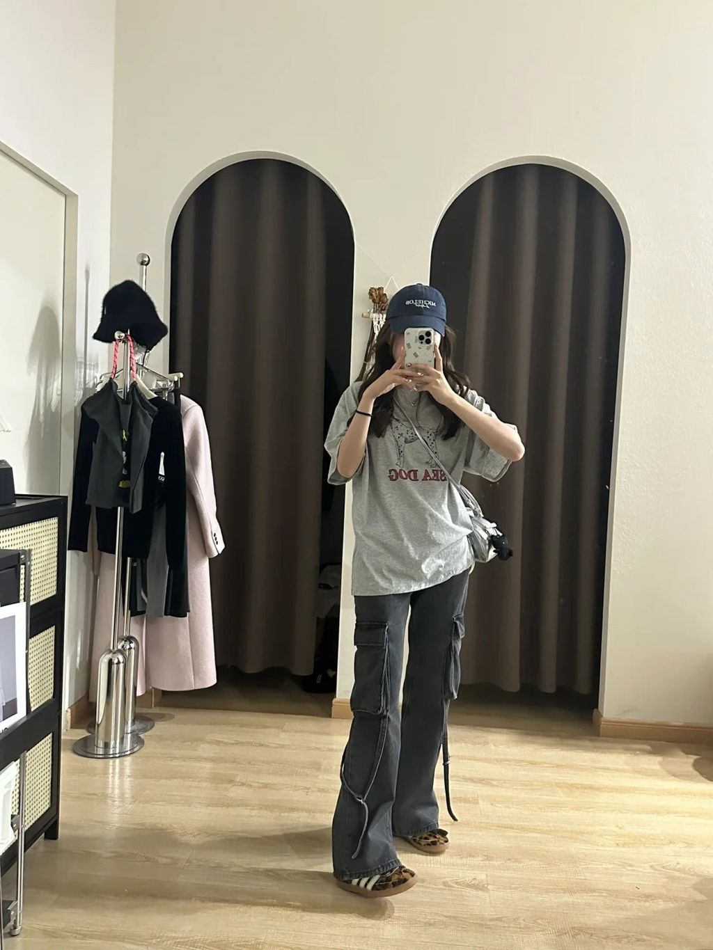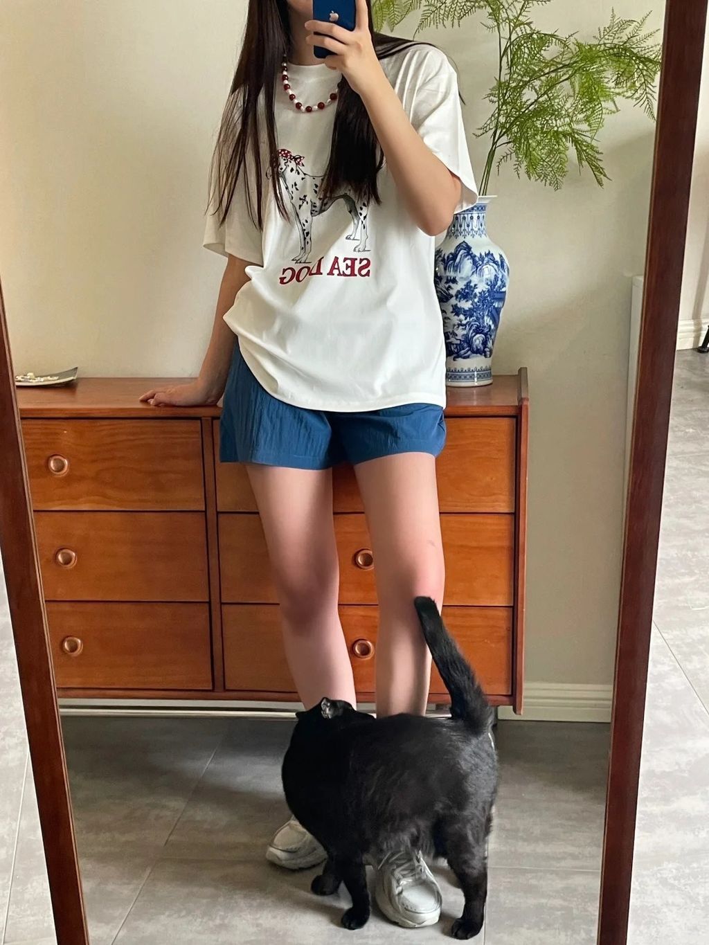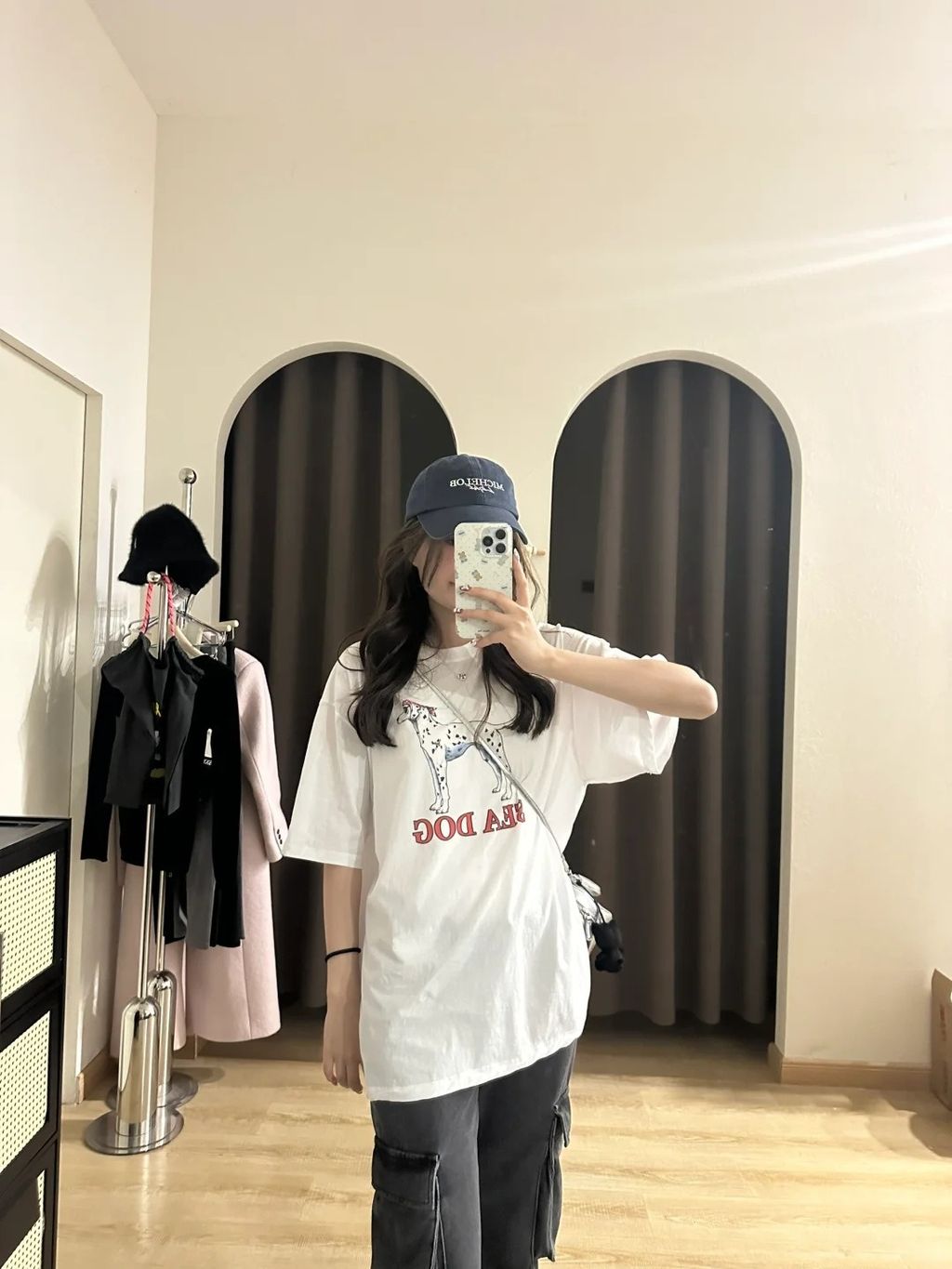 正韓 美式復古斑點狗狗寬鬆短T*白灰黑*【P0812-57】