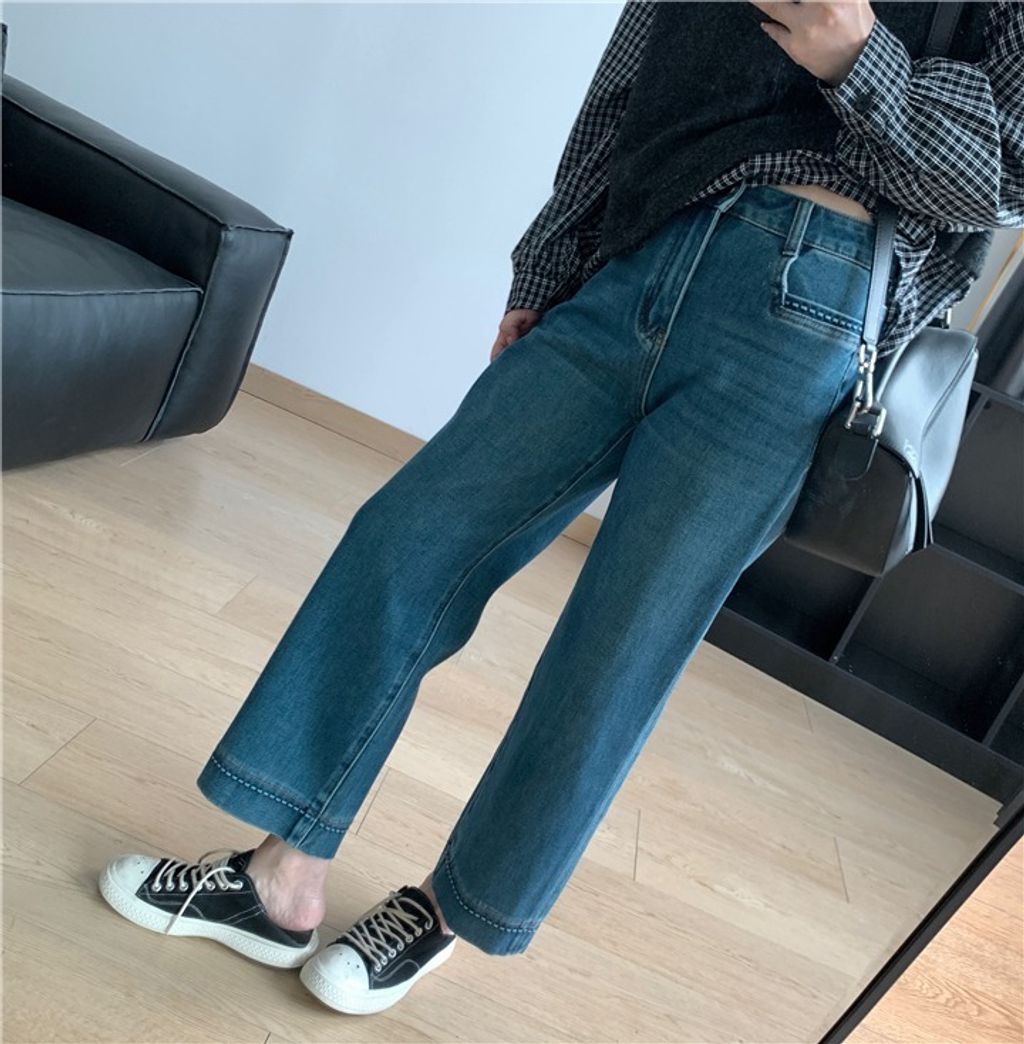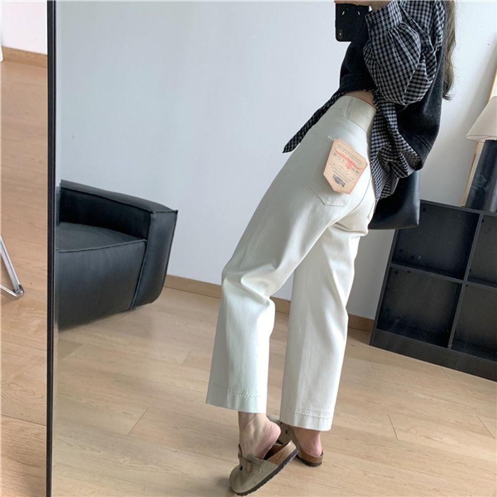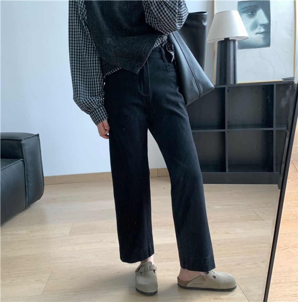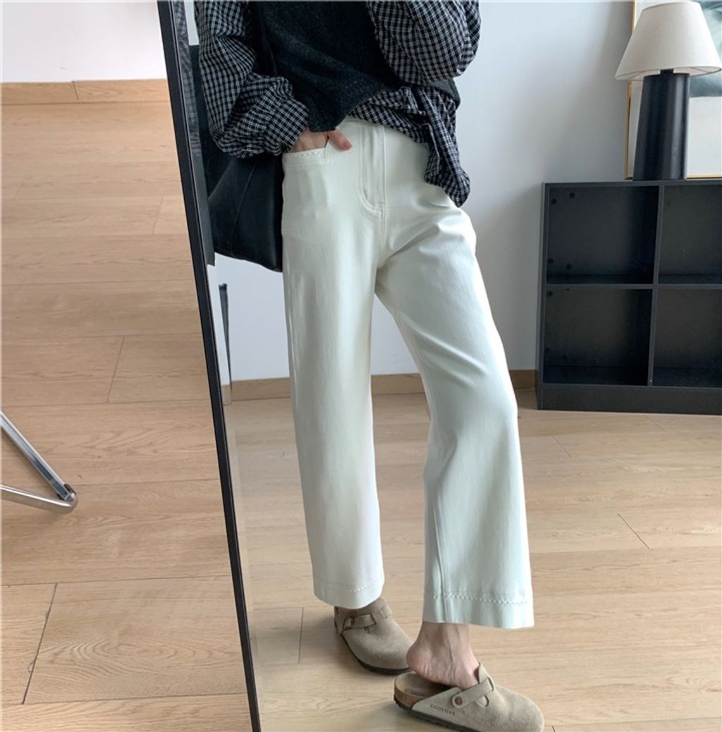 復古質感刷色顯瘦彈性牛仔褲 *米藍黑*【X0905-13】