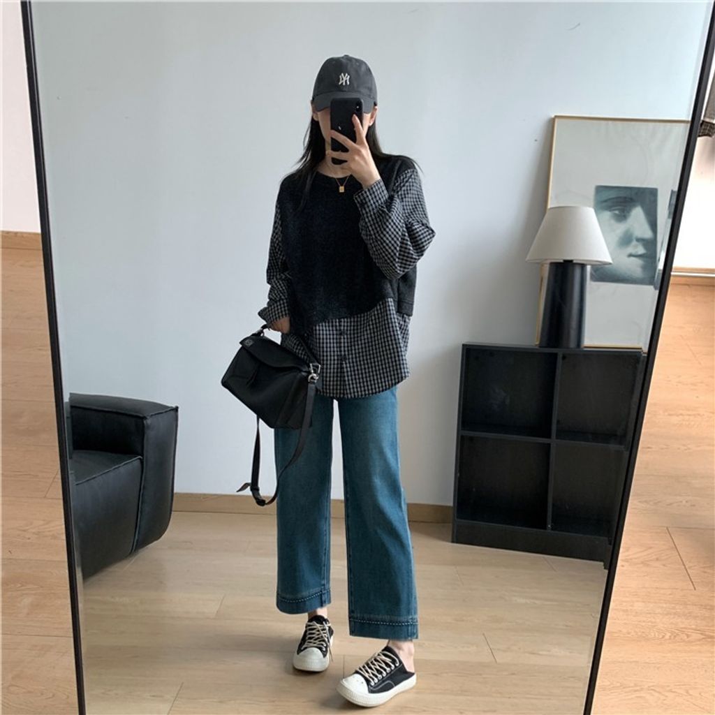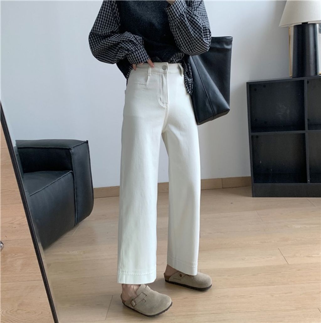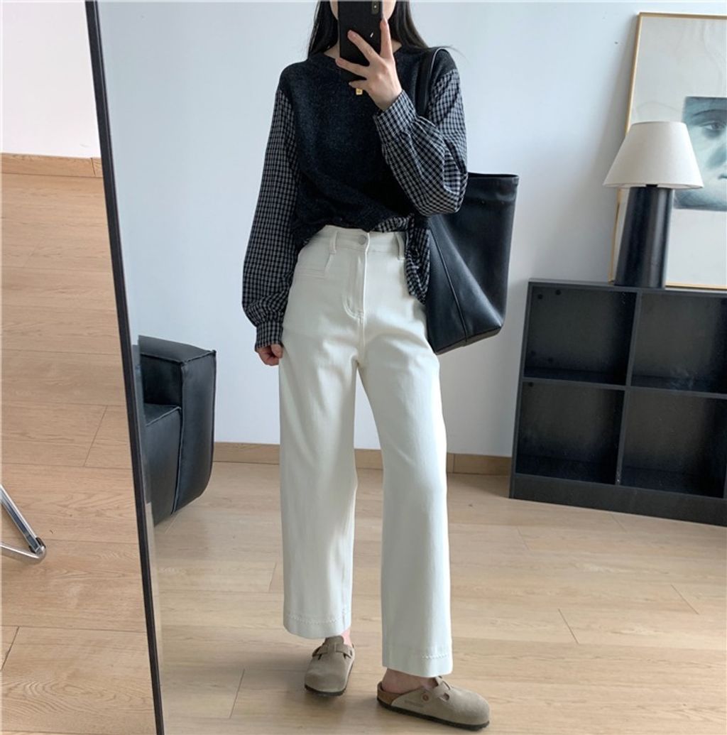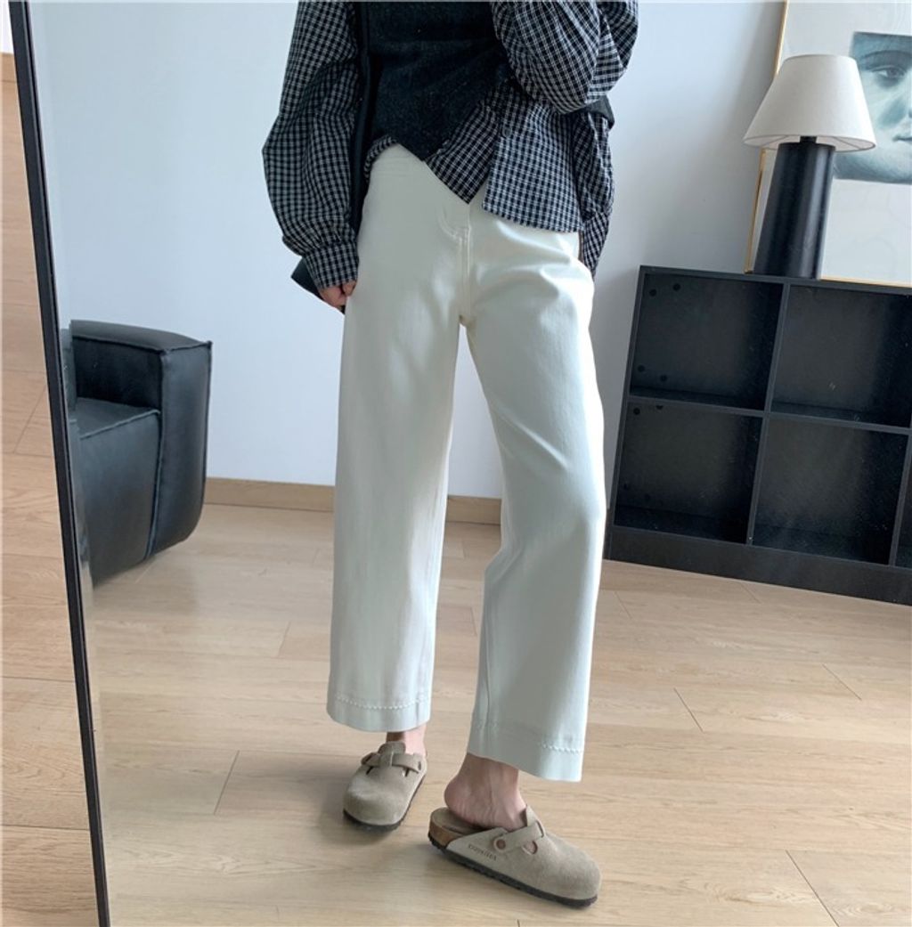 復古質感刷色顯瘦彈性牛仔褲 *米藍黑*【X0905-13】