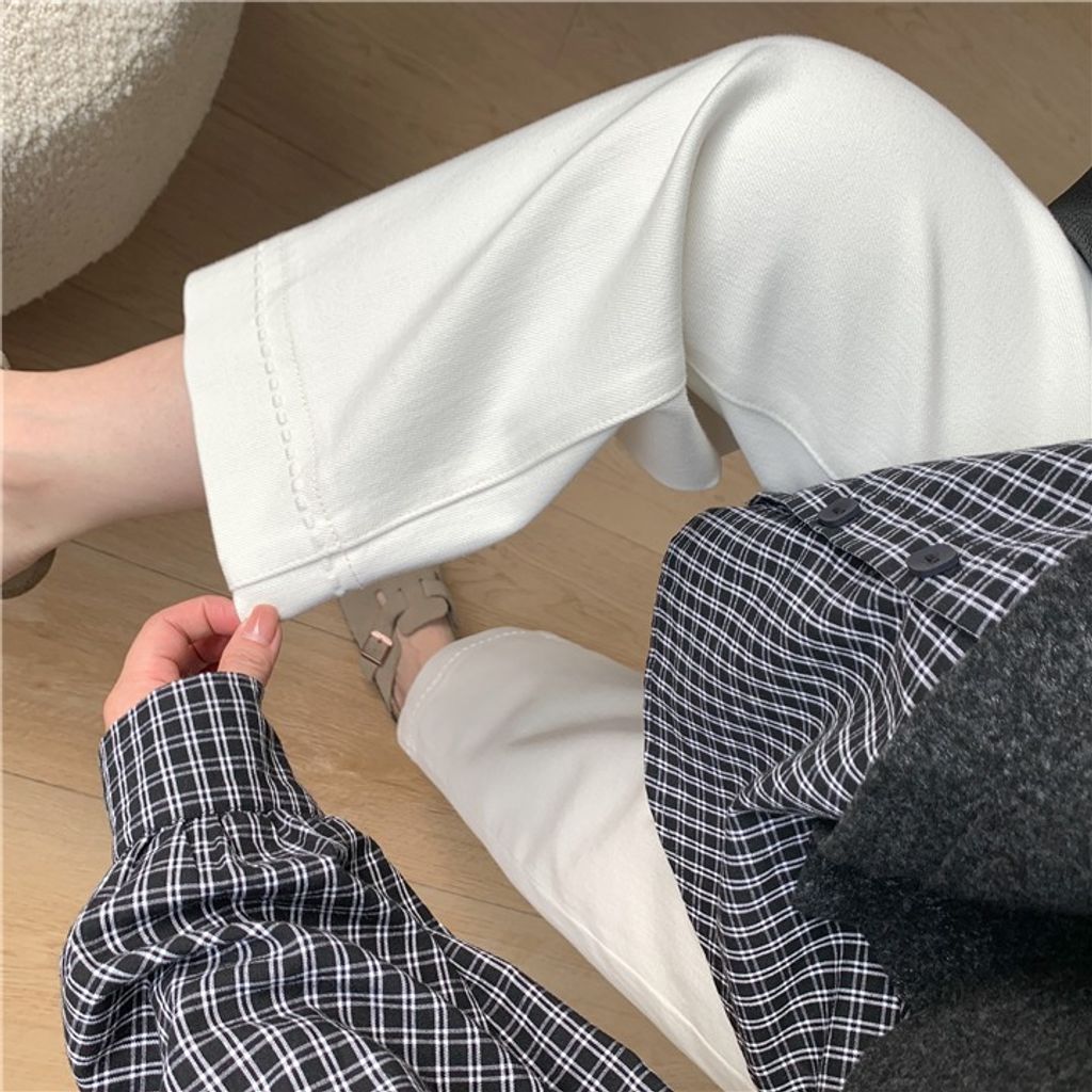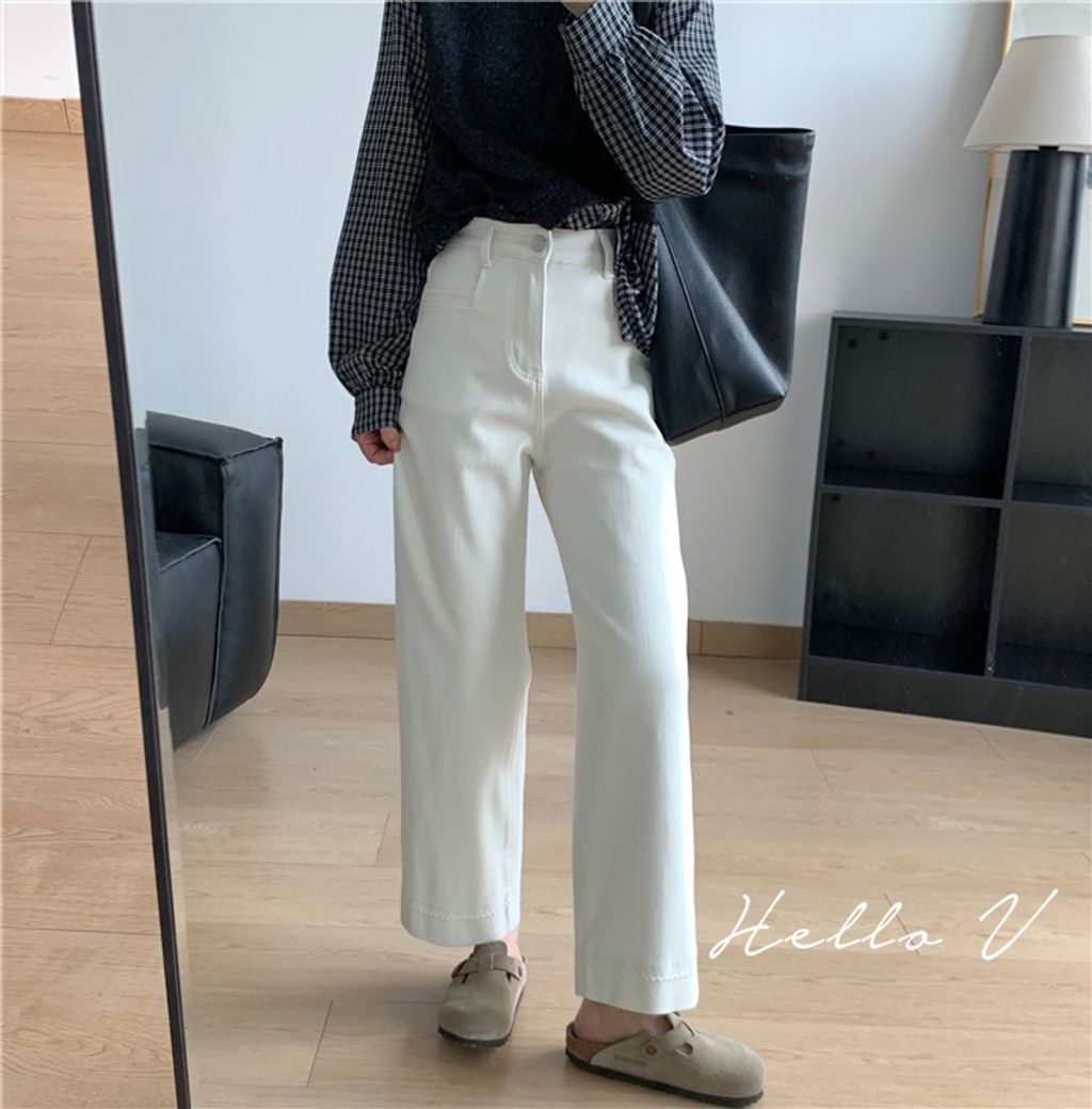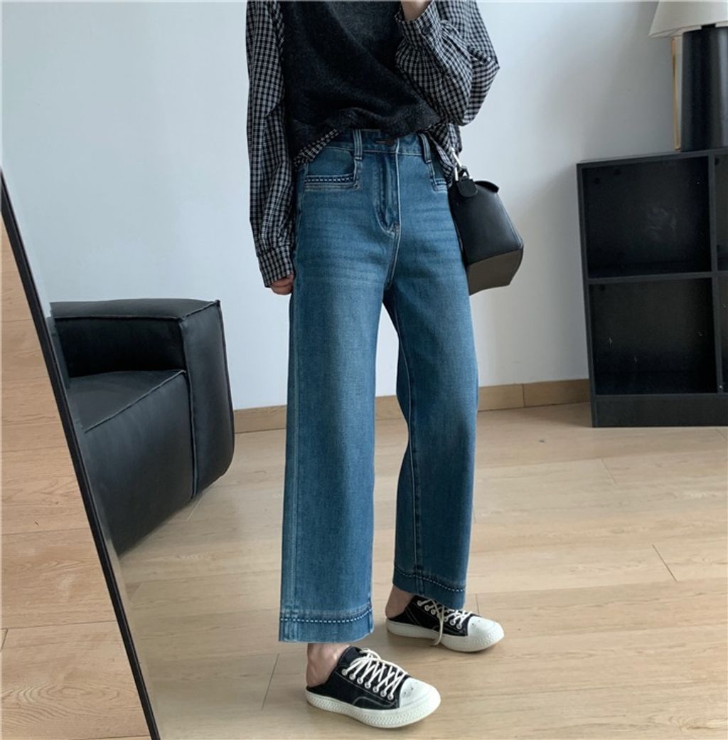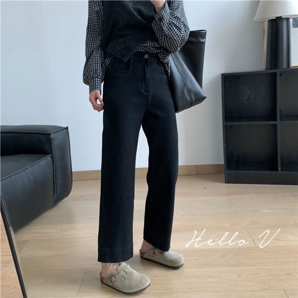 復古質感刷色顯瘦彈性牛仔褲 *米藍黑*【X0905-13】