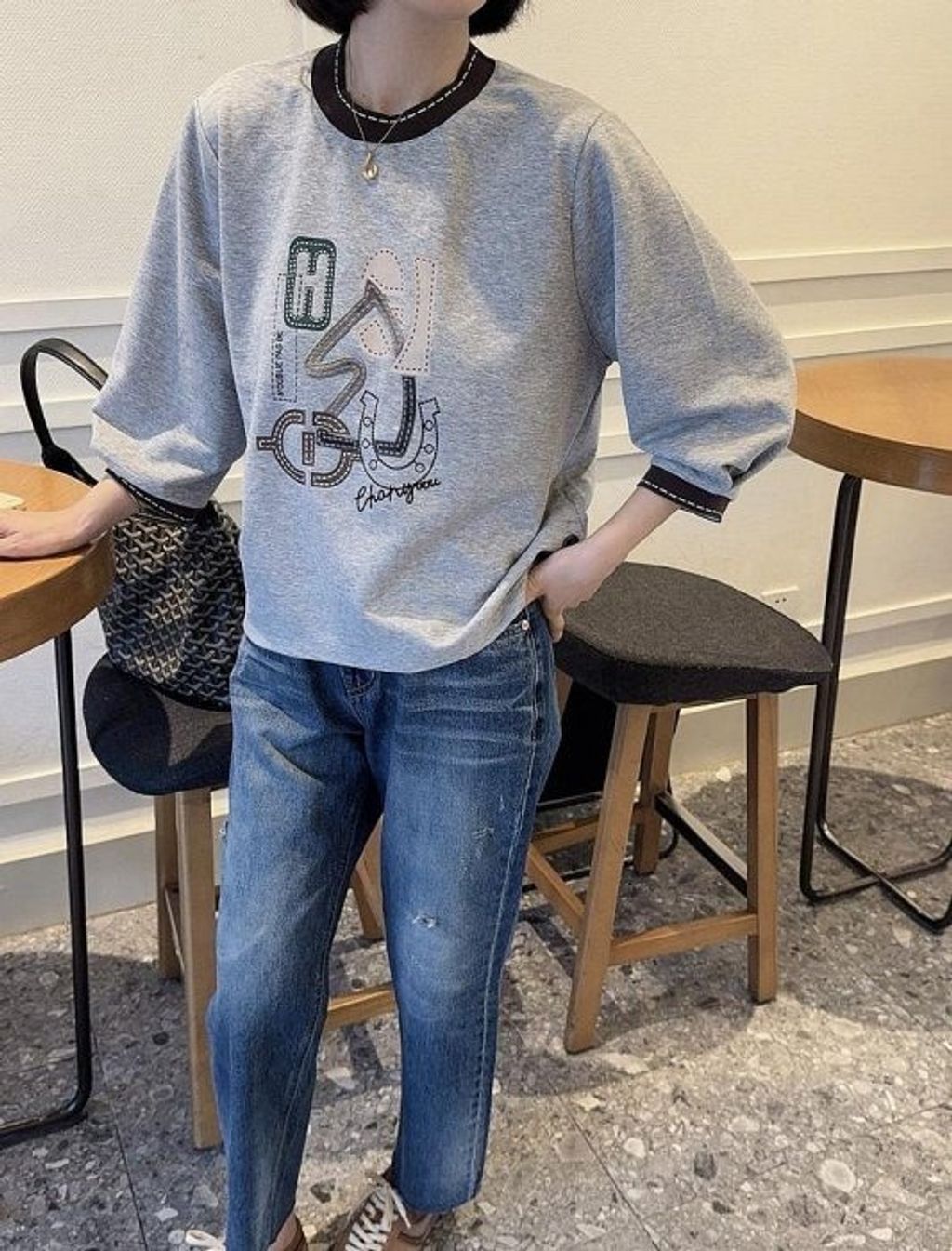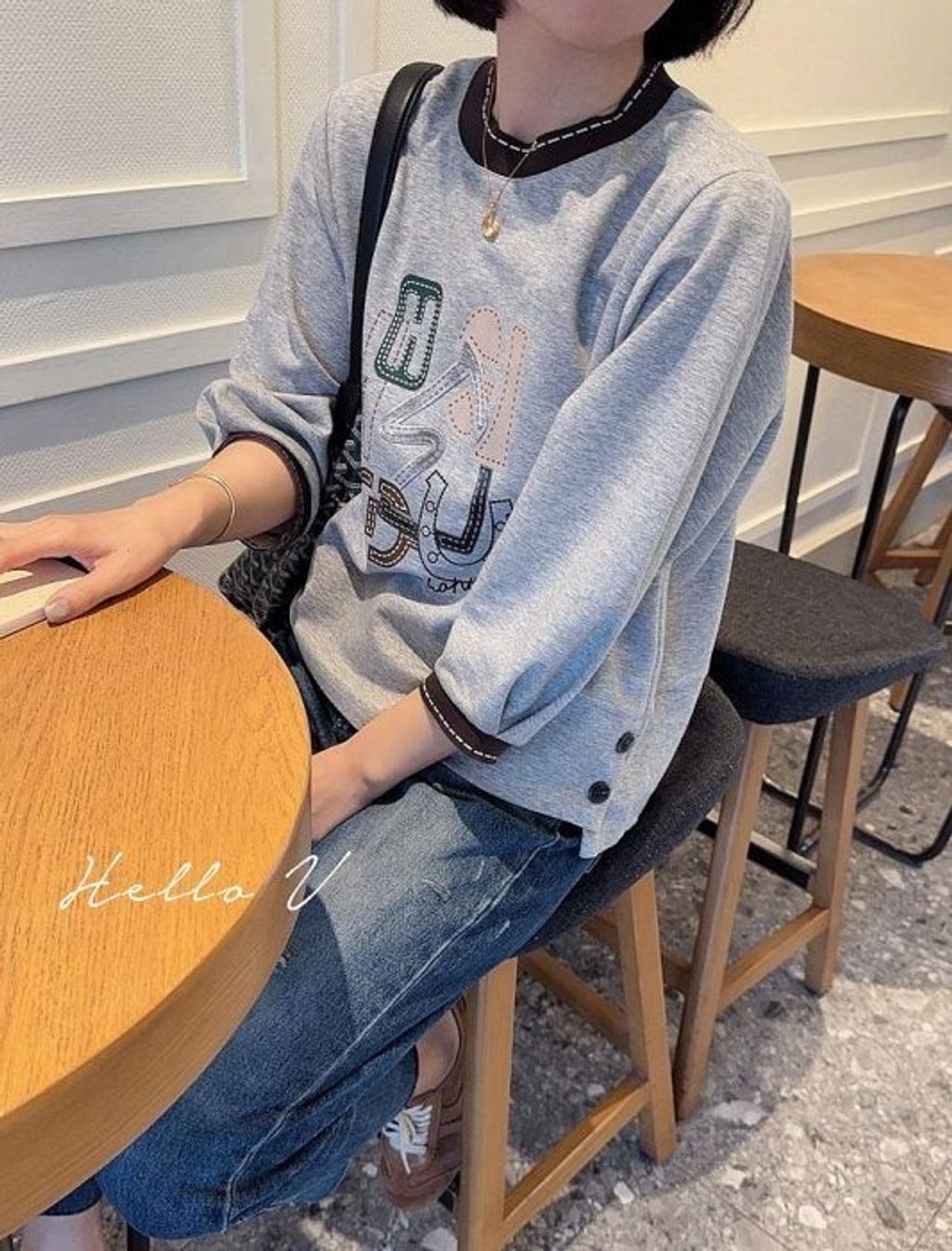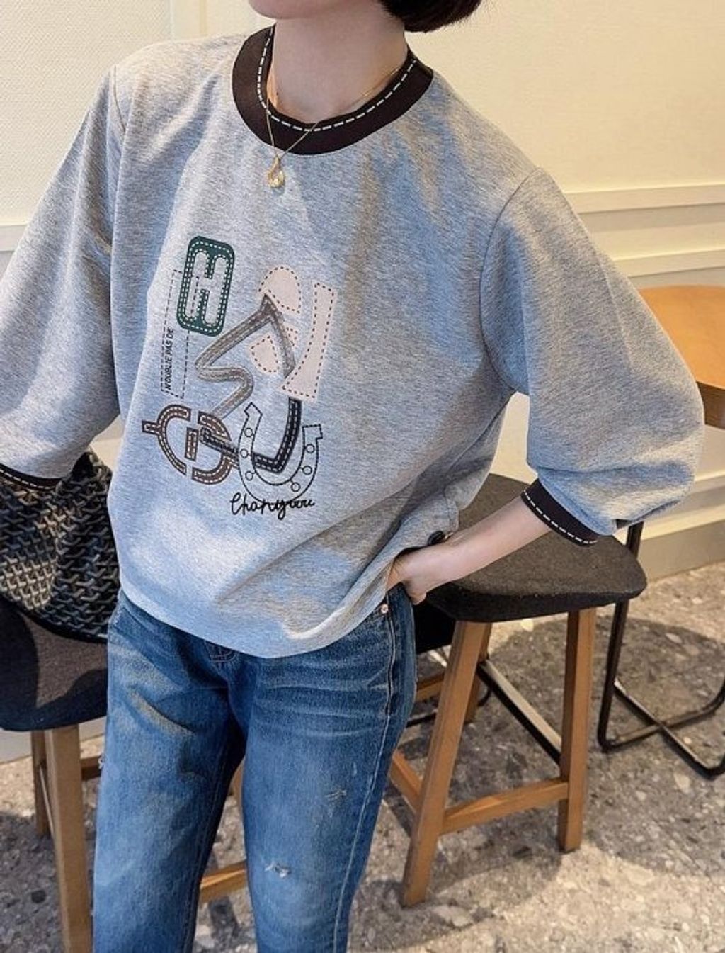 正韓 亮眼設計款刺繡質感上衣*灰*【X0905-109】