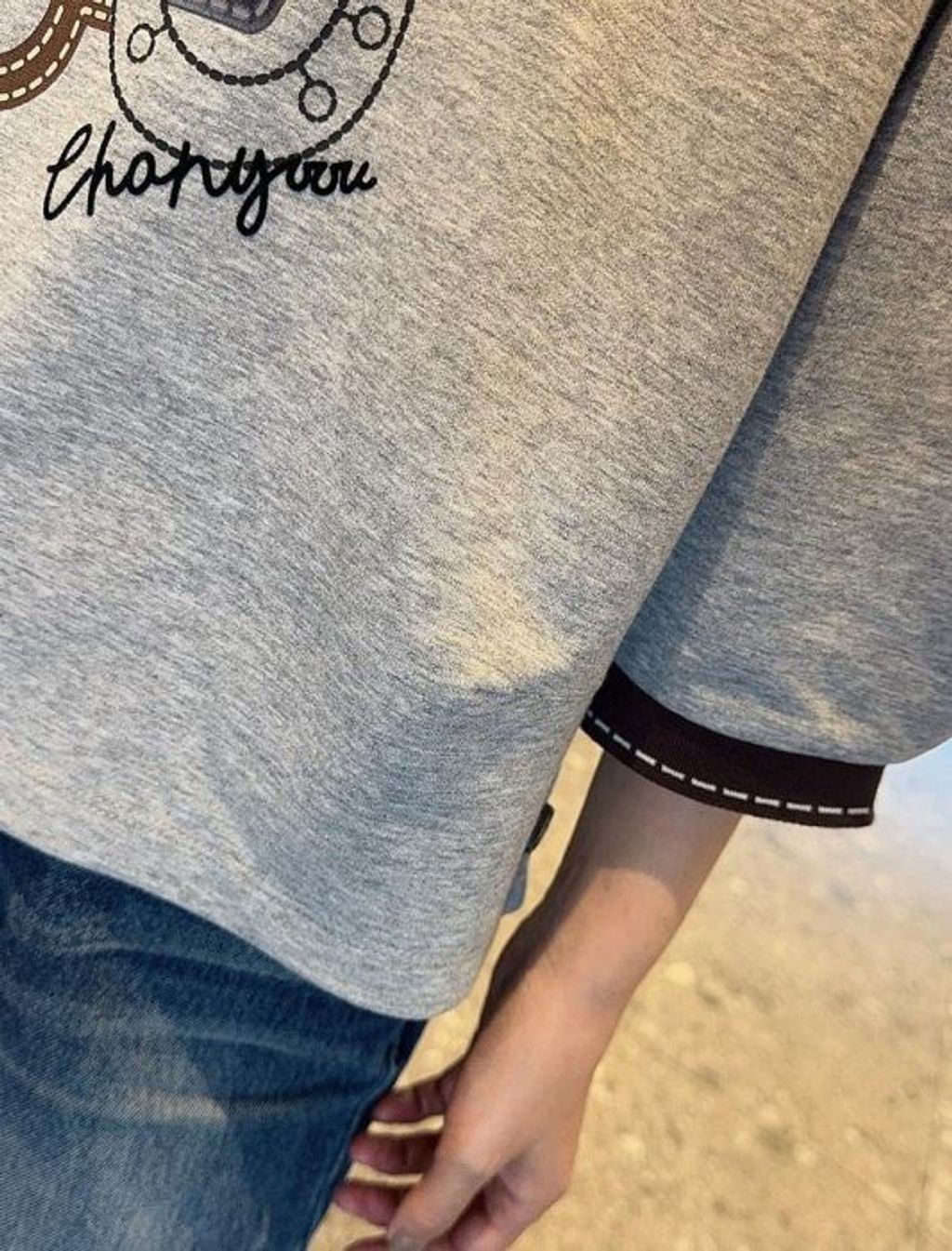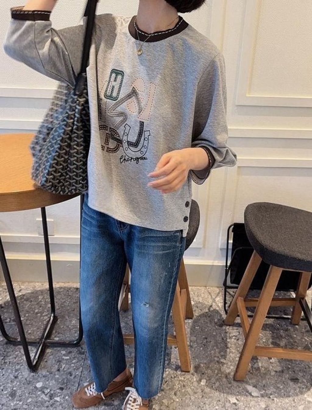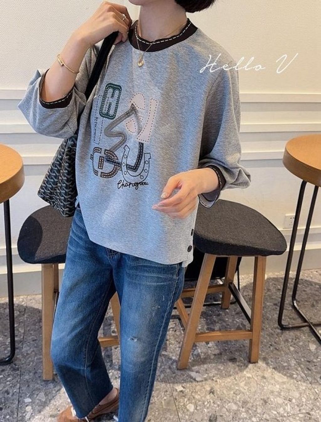 正韓 亮眼設計款刺繡質感上衣*灰*【X0905-109】