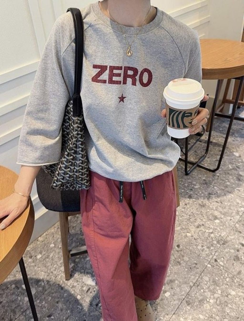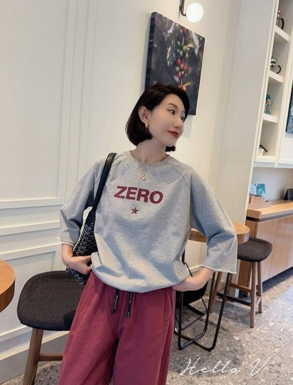 正韓 復古簡約風格zero英文字大學T*灰*【X0905-102】