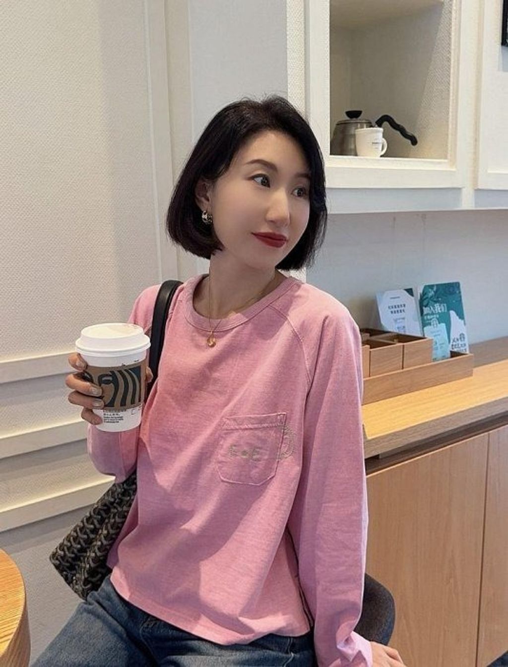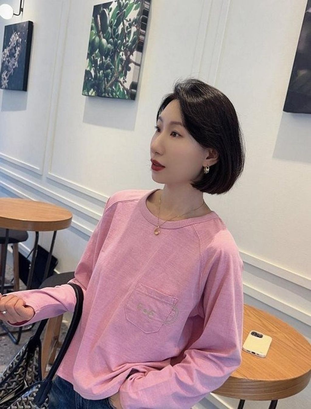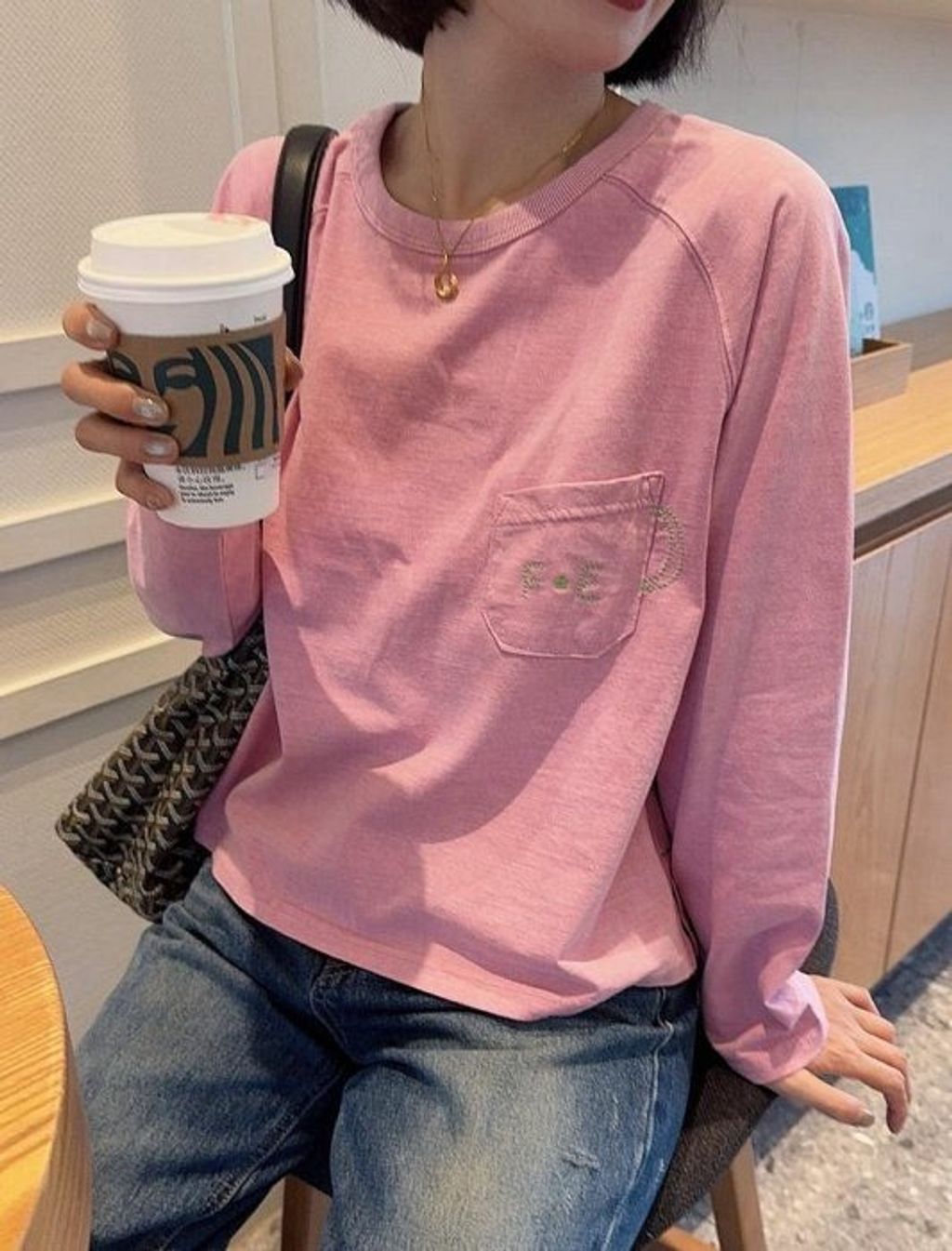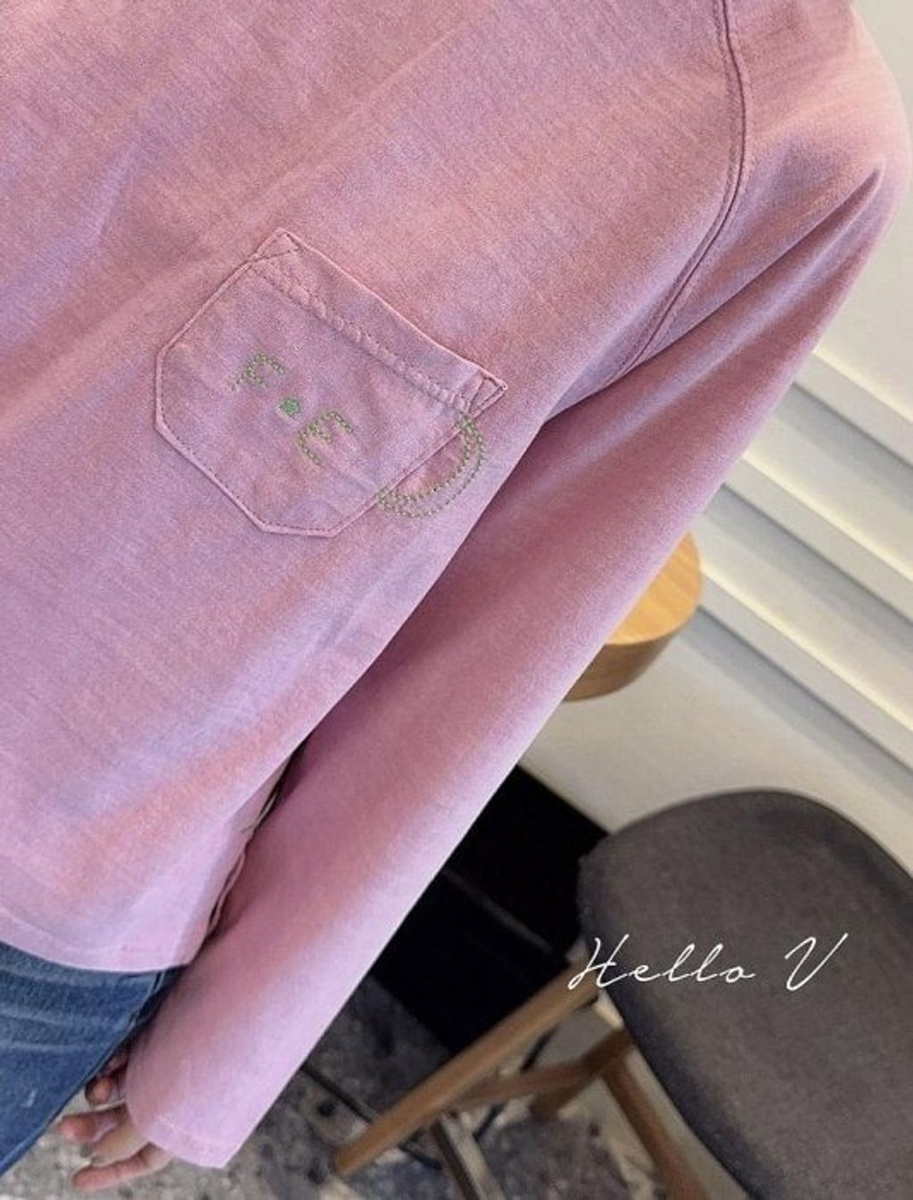 正韓 沉穩氣質亮色刺繡長T*粉*【X0905-108】