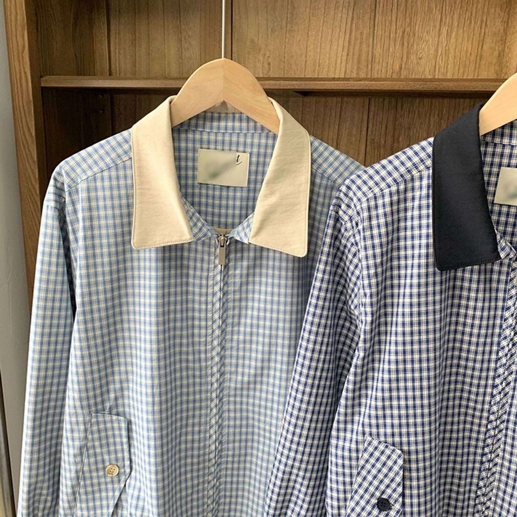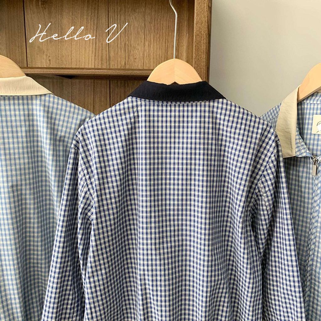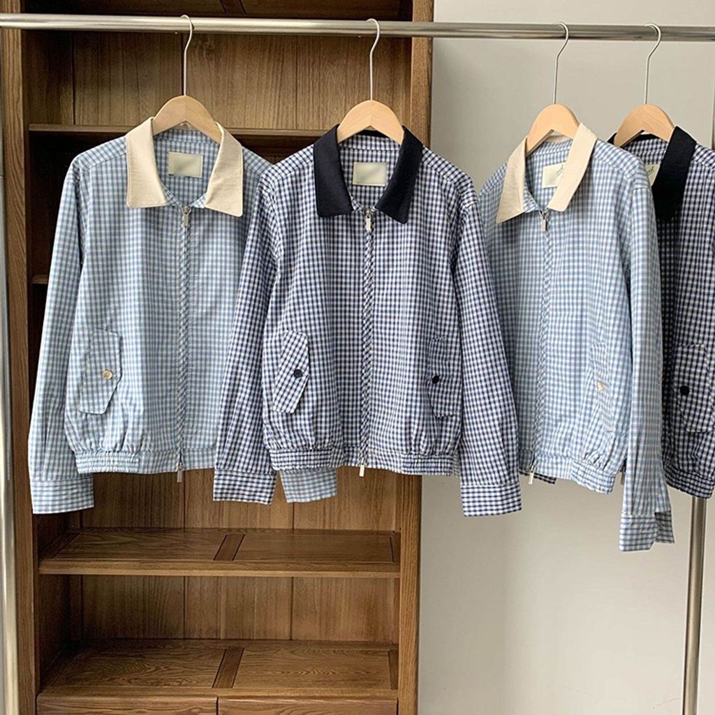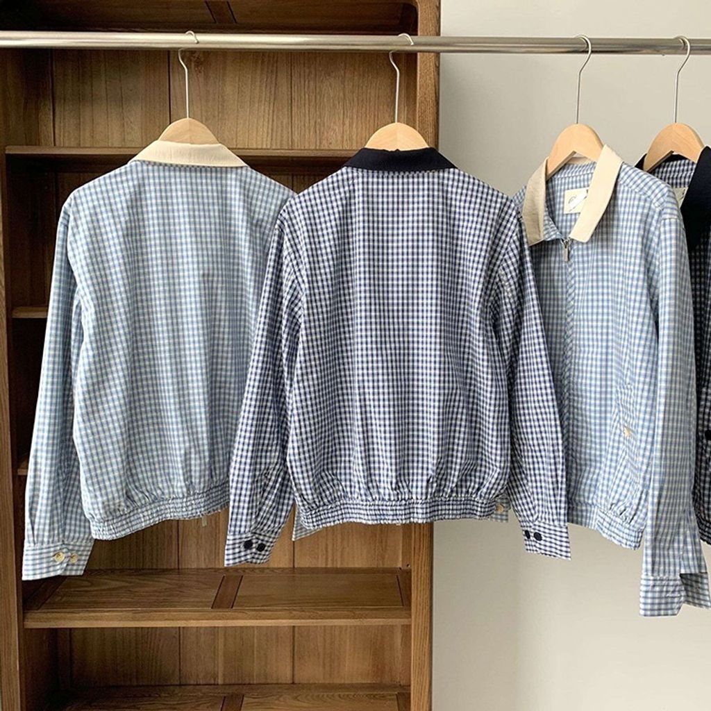 正韓 甜美復古小格紋翻領質感外套*深藍淺藍*【X0905-131】
