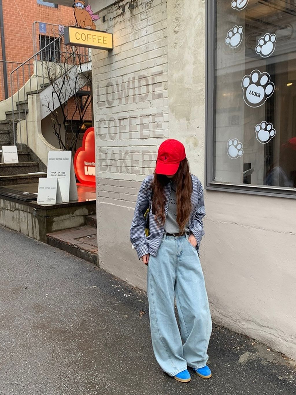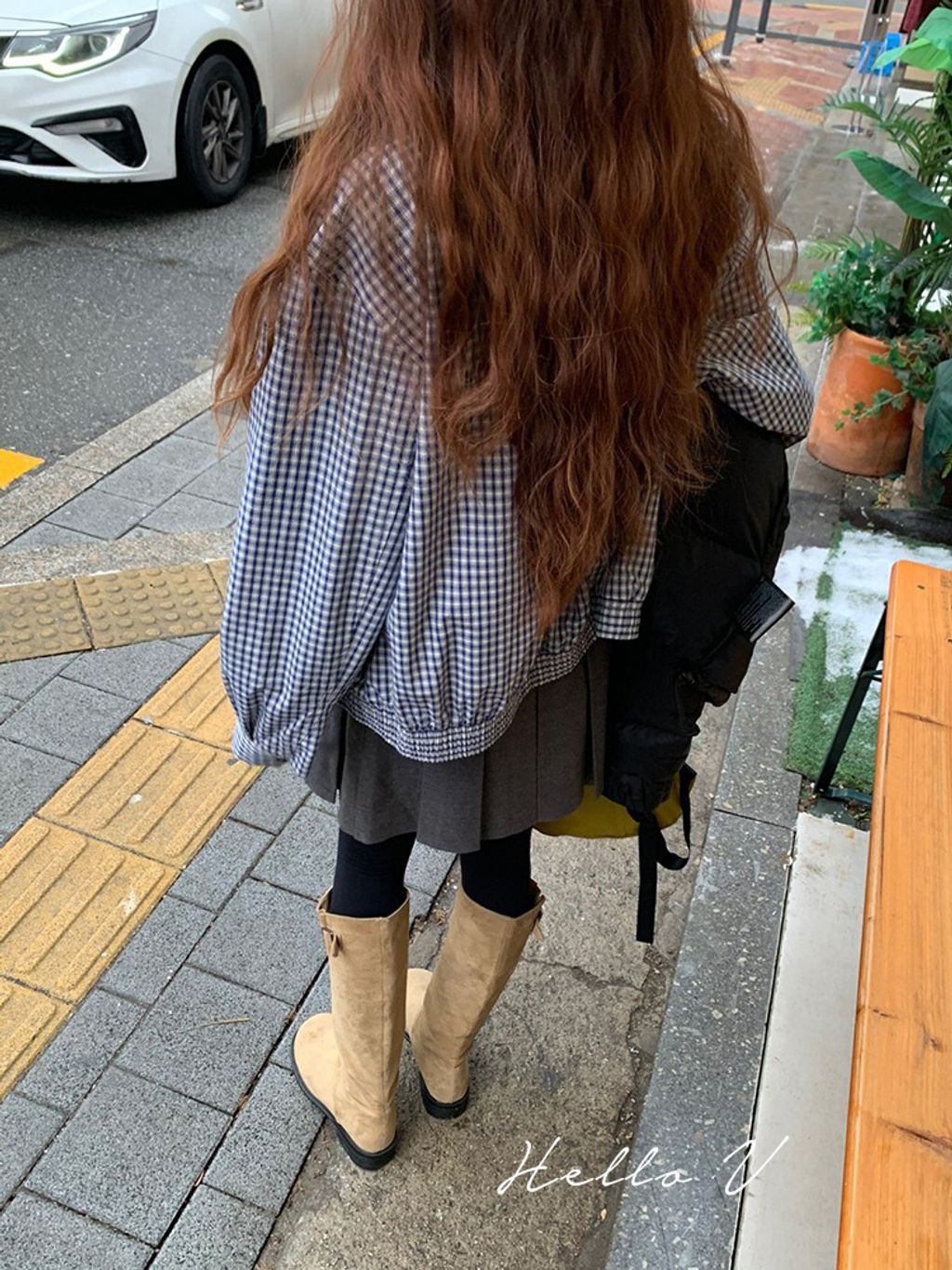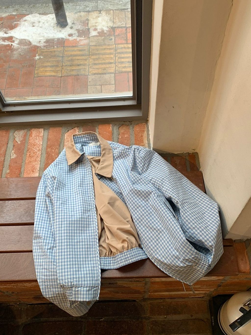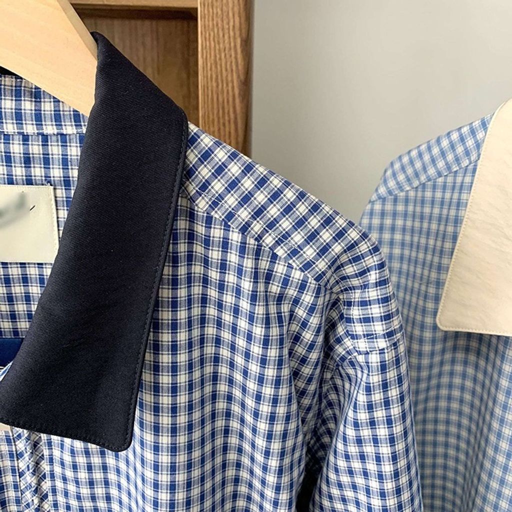 正韓 甜美復古小格紋翻領質感外套*深藍淺藍*【X0905-131】