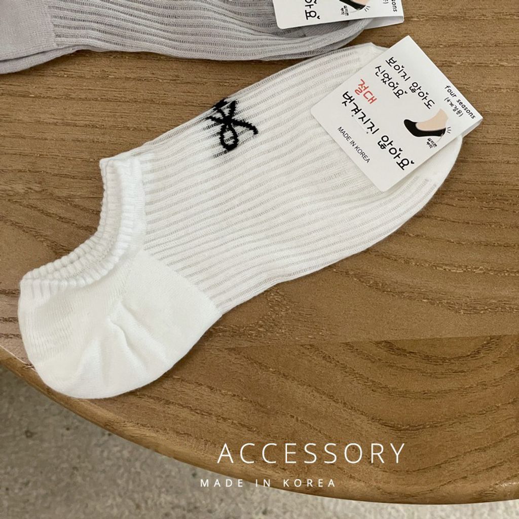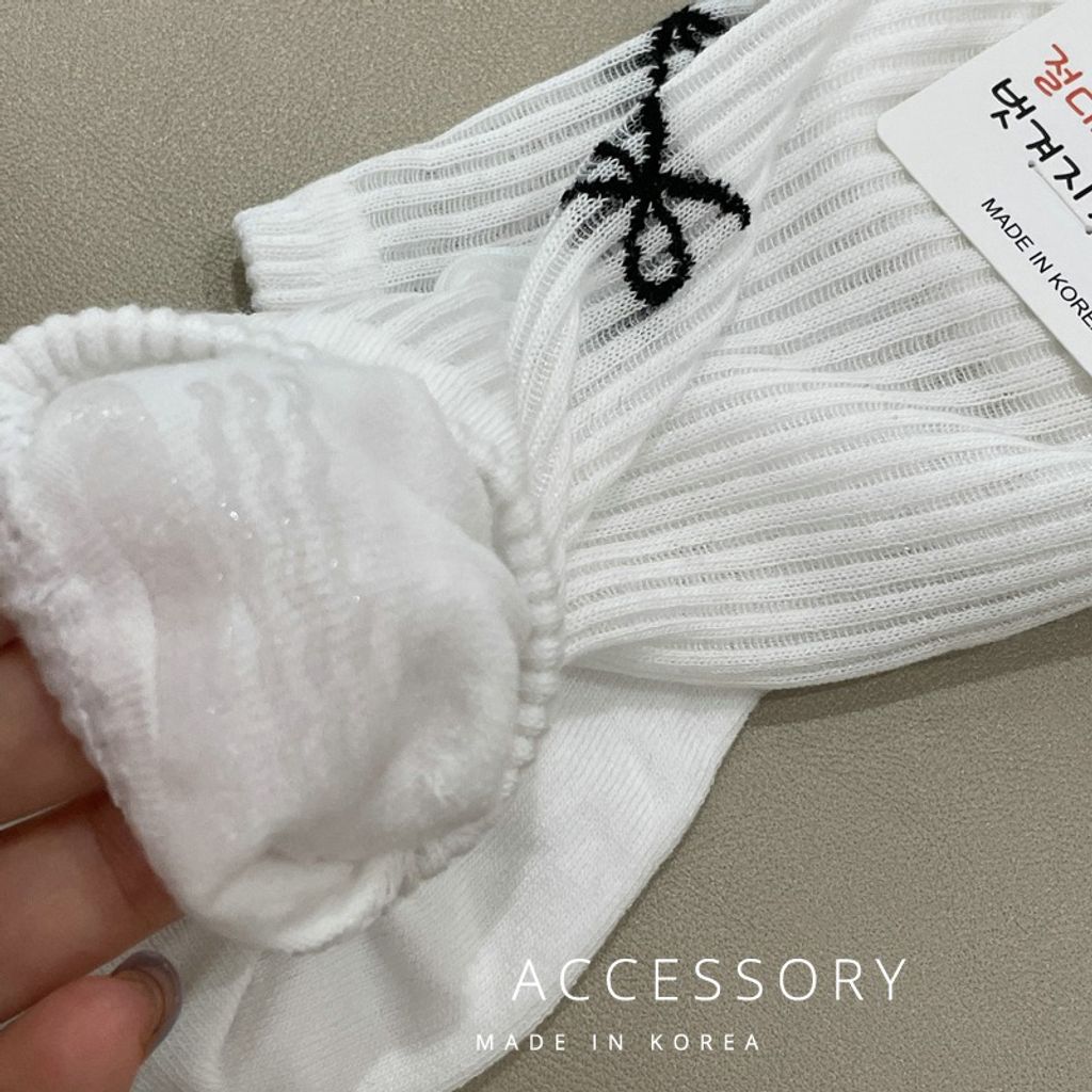 正韓 甜美蝴蝶結刺繡網眼透氣短襪船襪*黑白灰*【X0905-36】