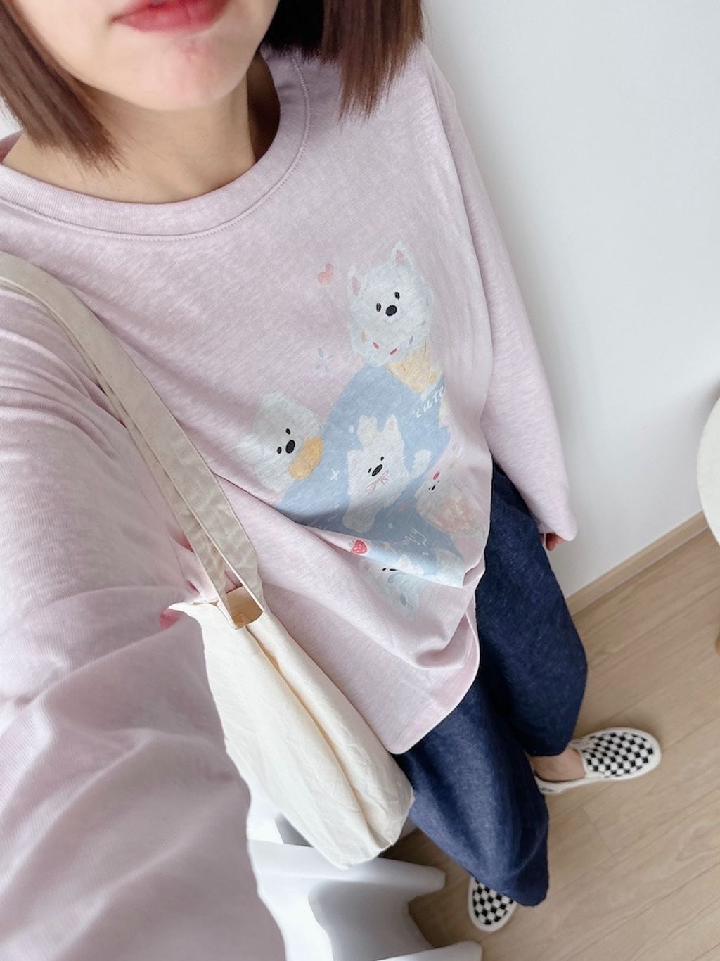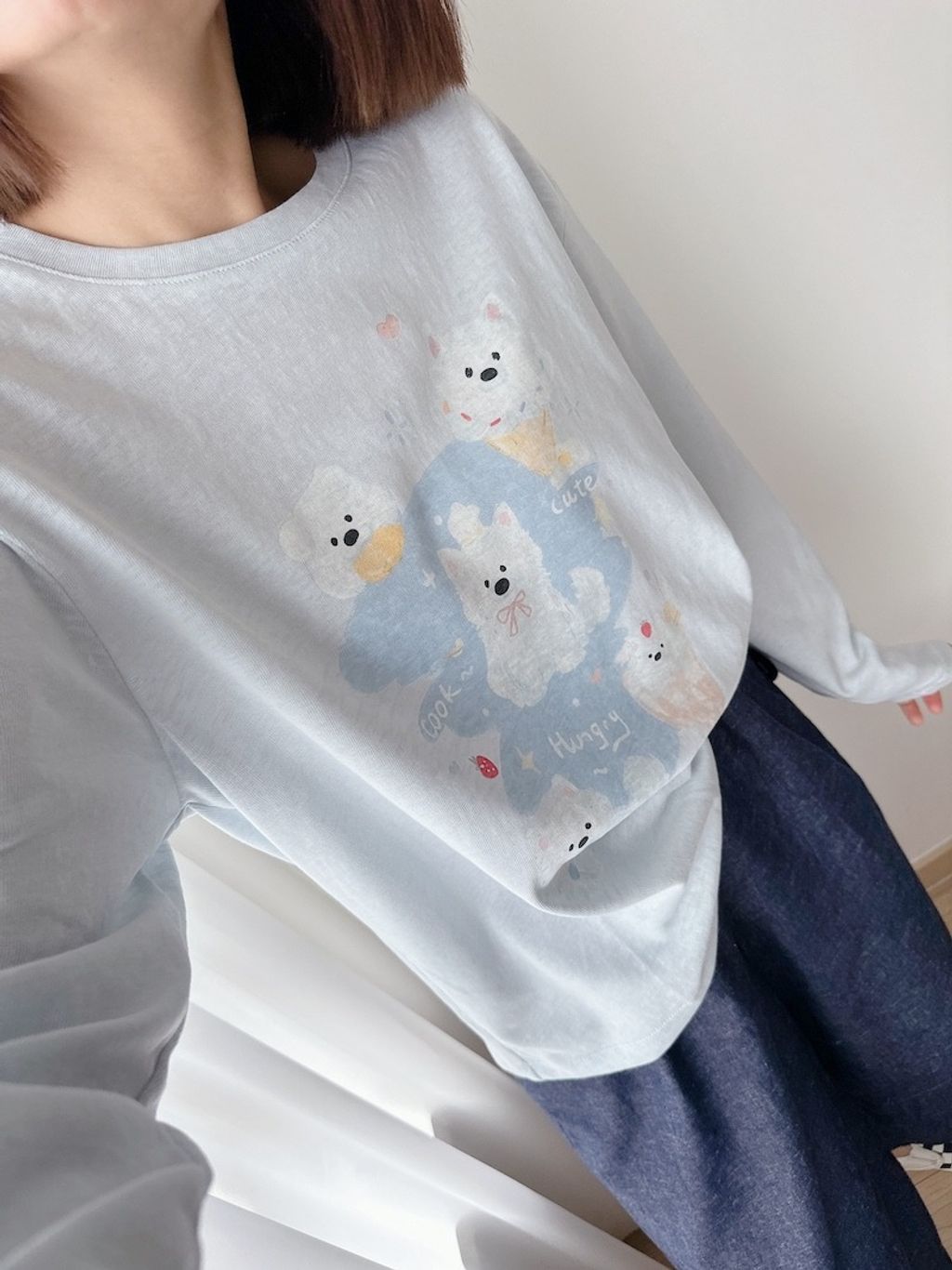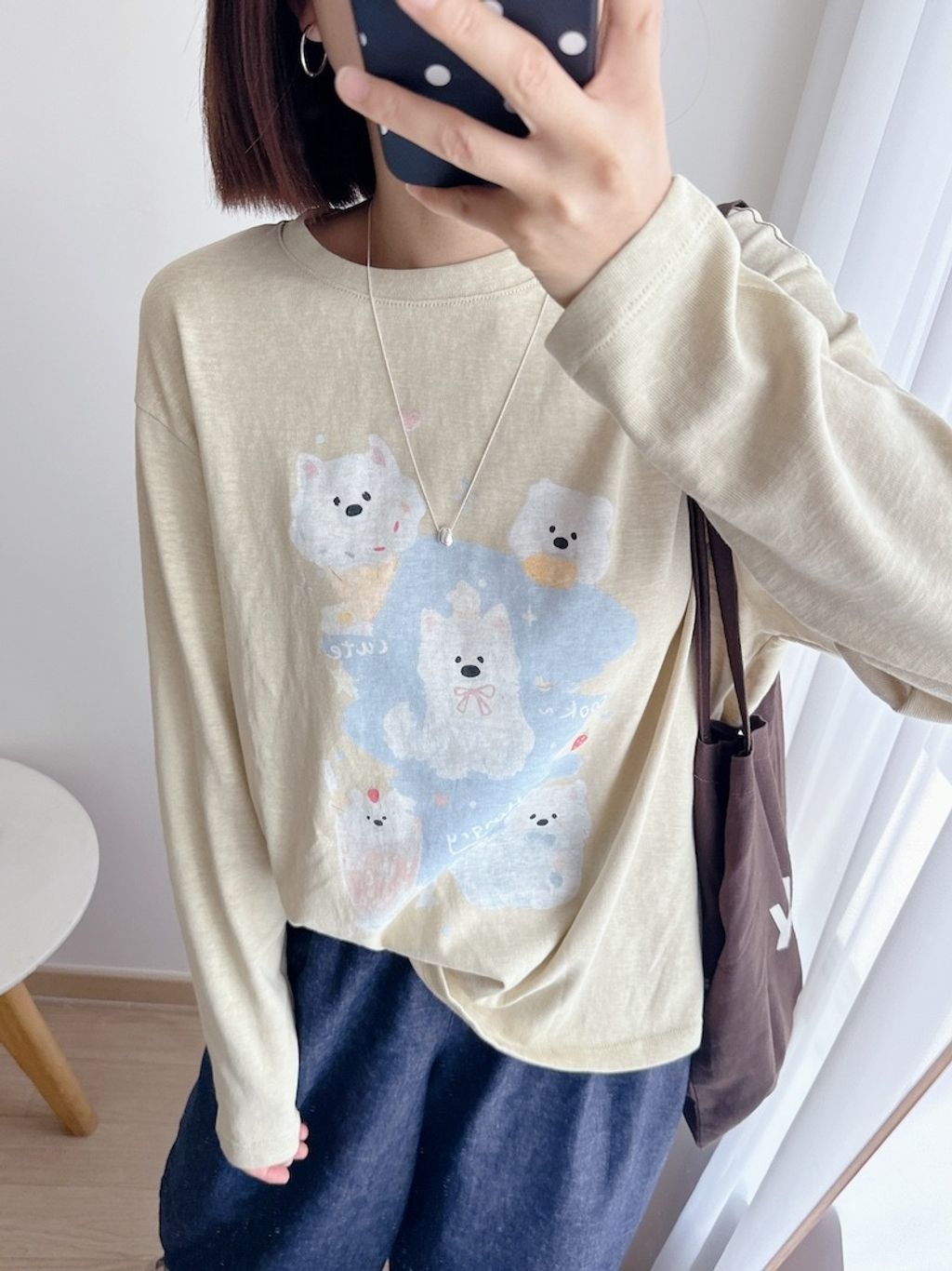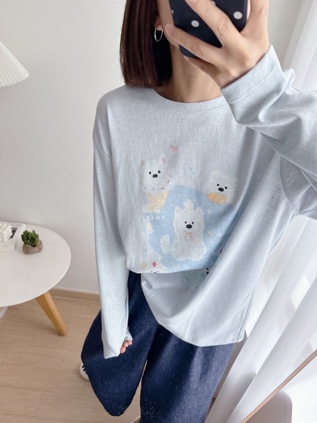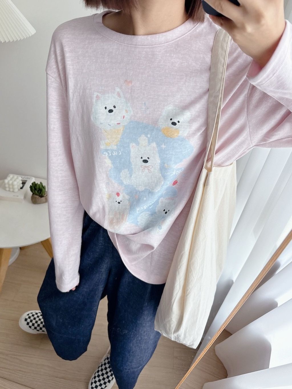 溫柔可愛手繪小狗長T*黃粉藍*【X0905-27】