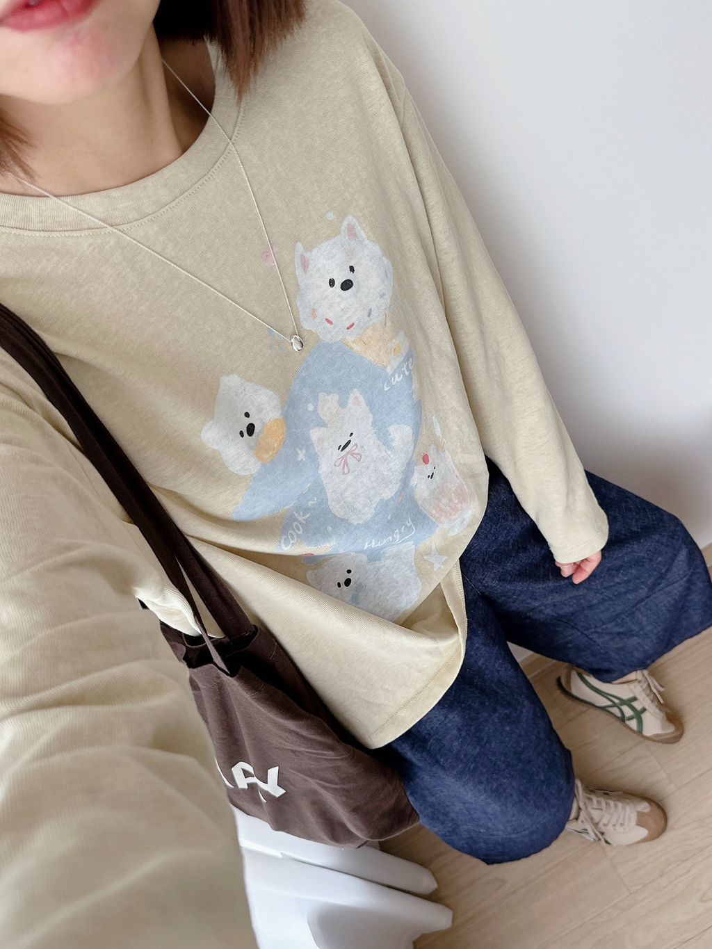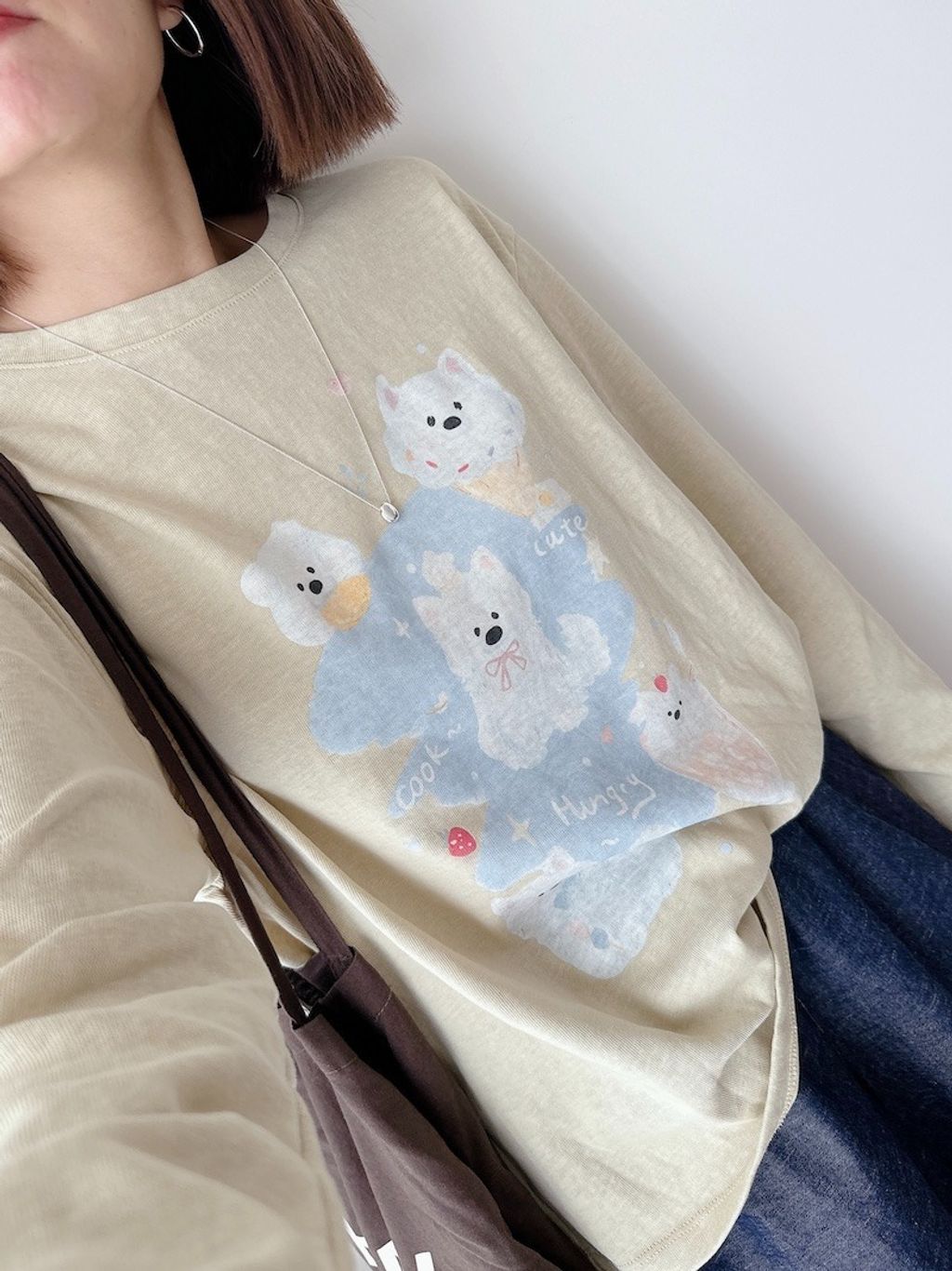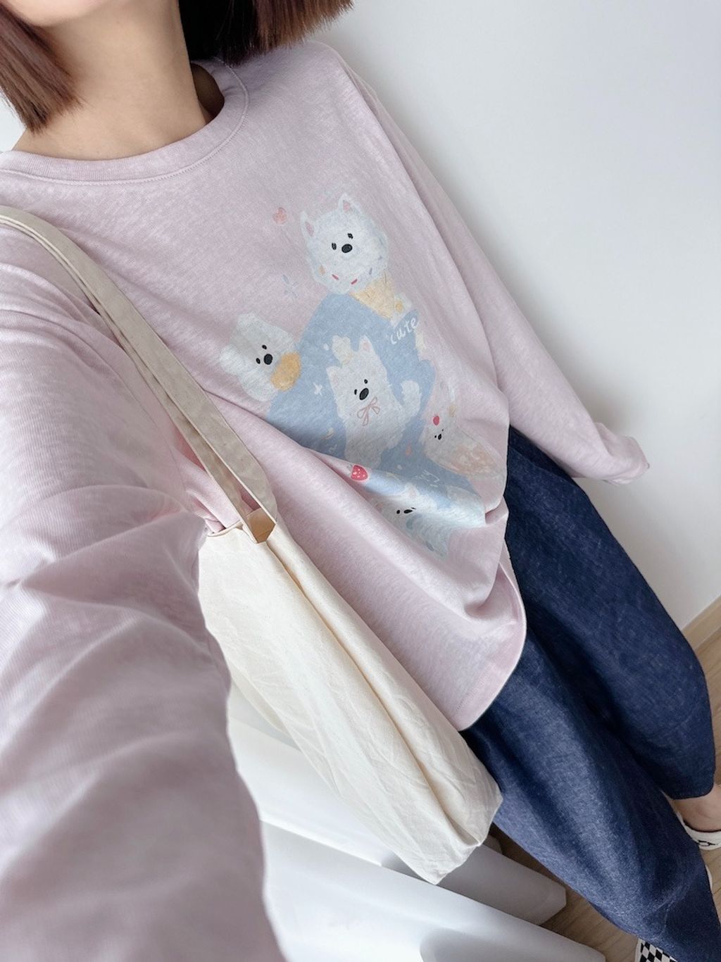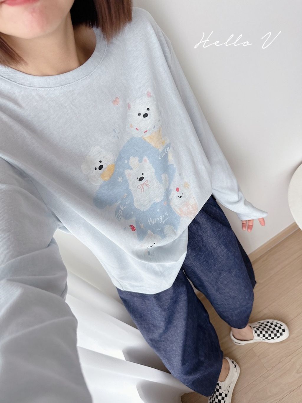 溫柔可愛手繪小狗長T*黃粉藍*【X0905-27】