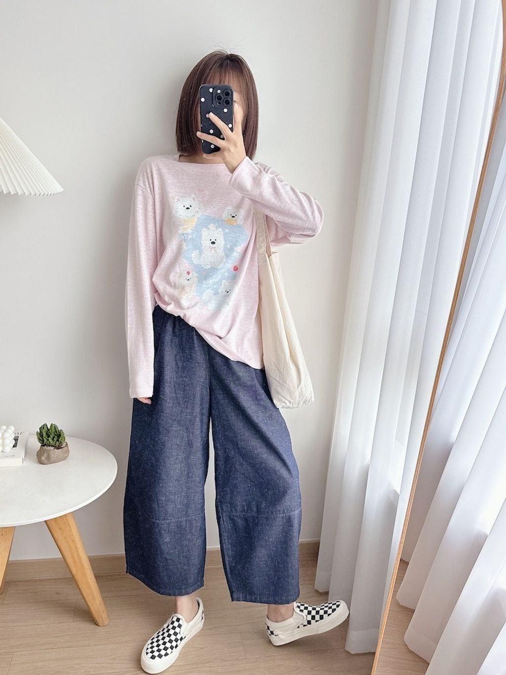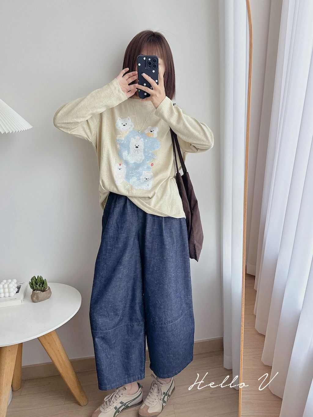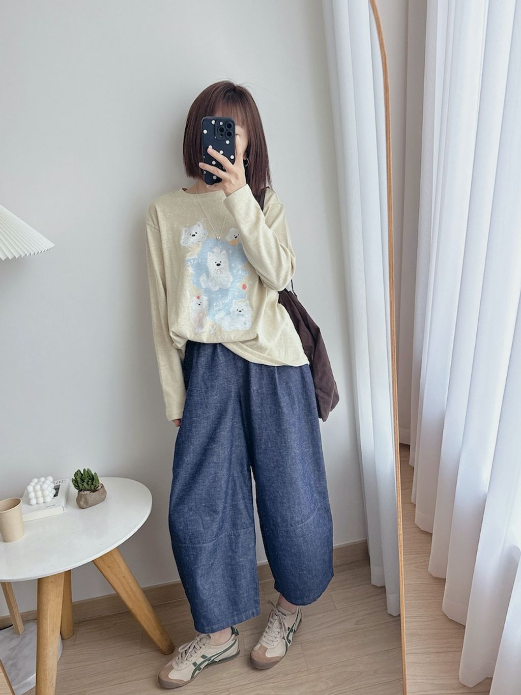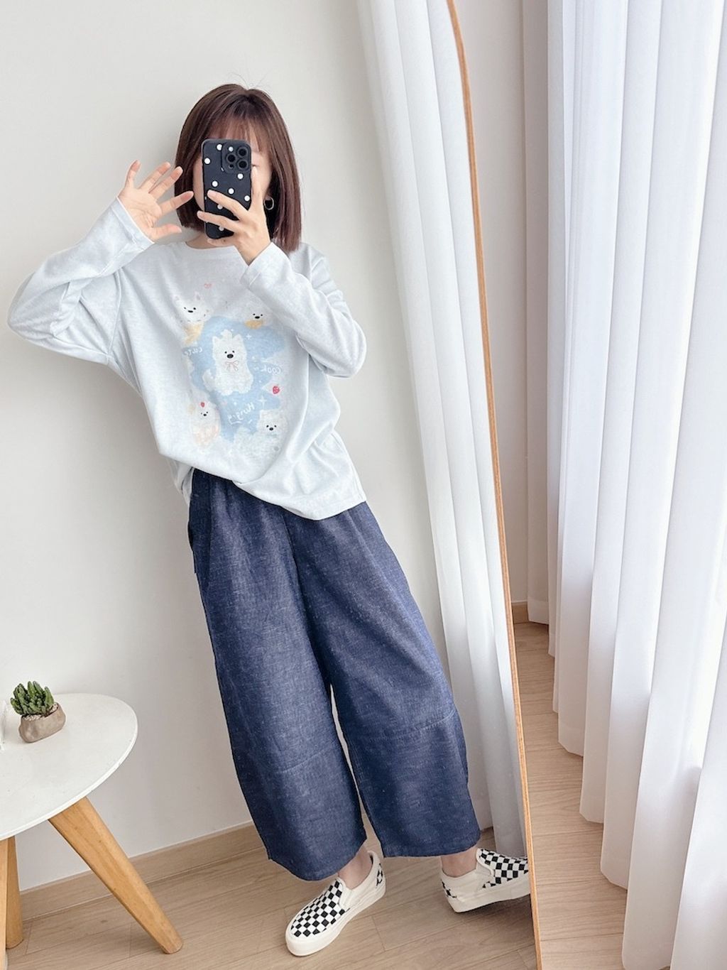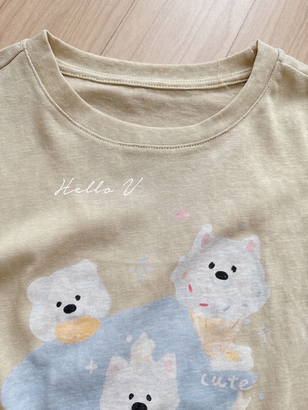 溫柔可愛手繪小狗長T*黃粉藍*【X0905-27】