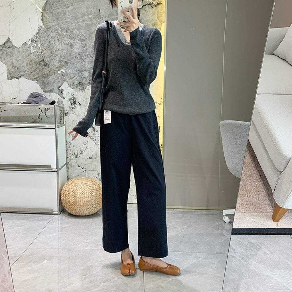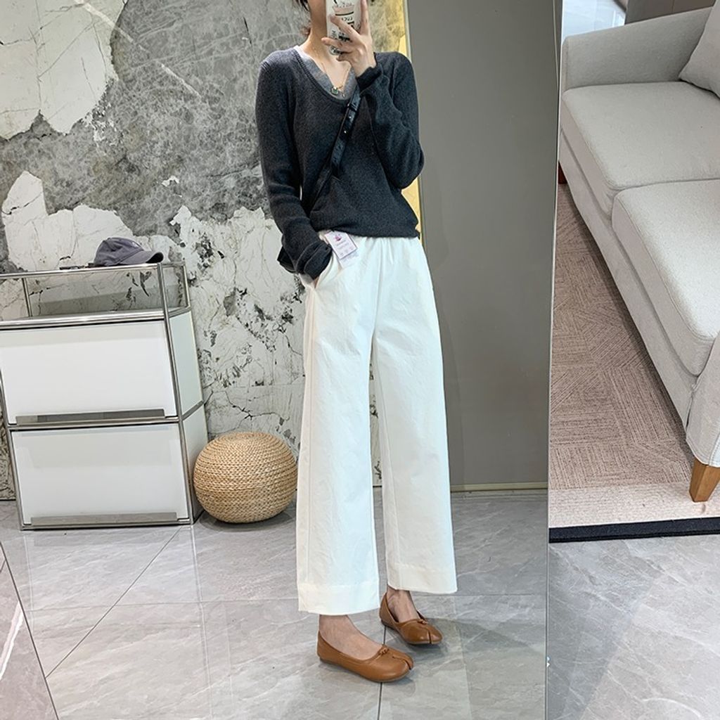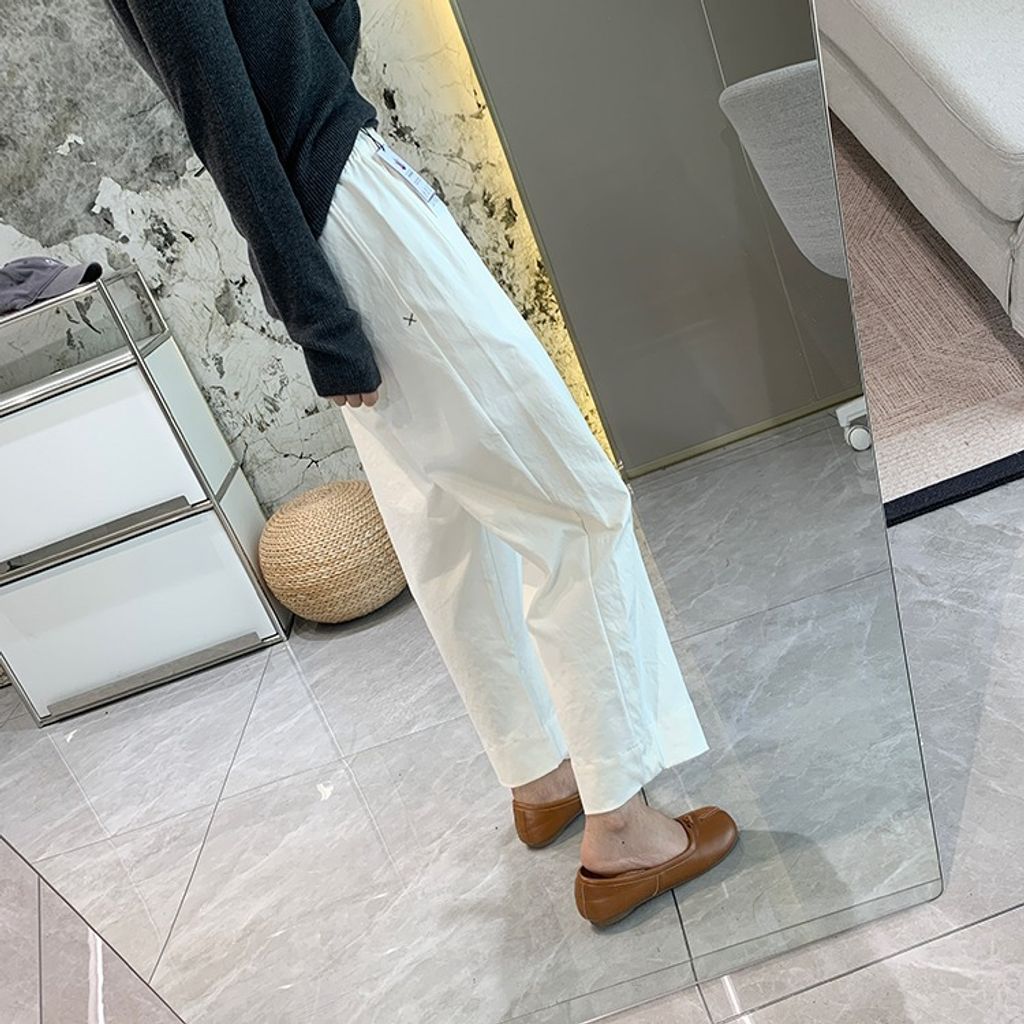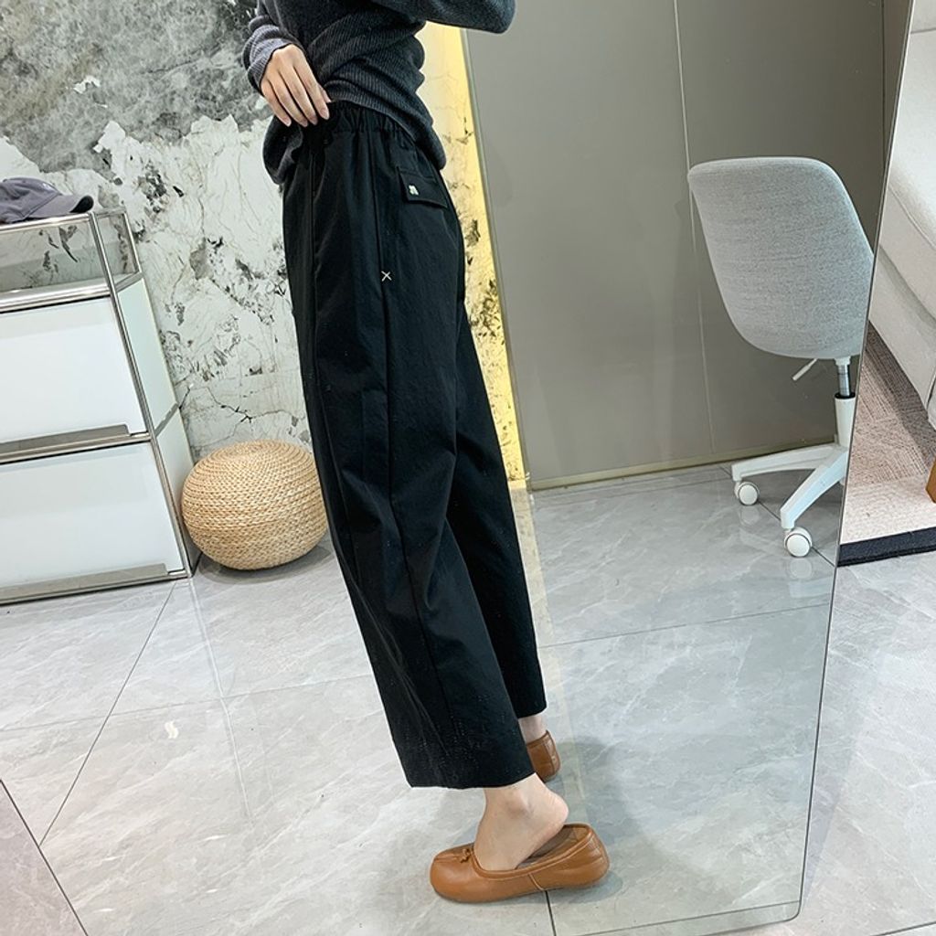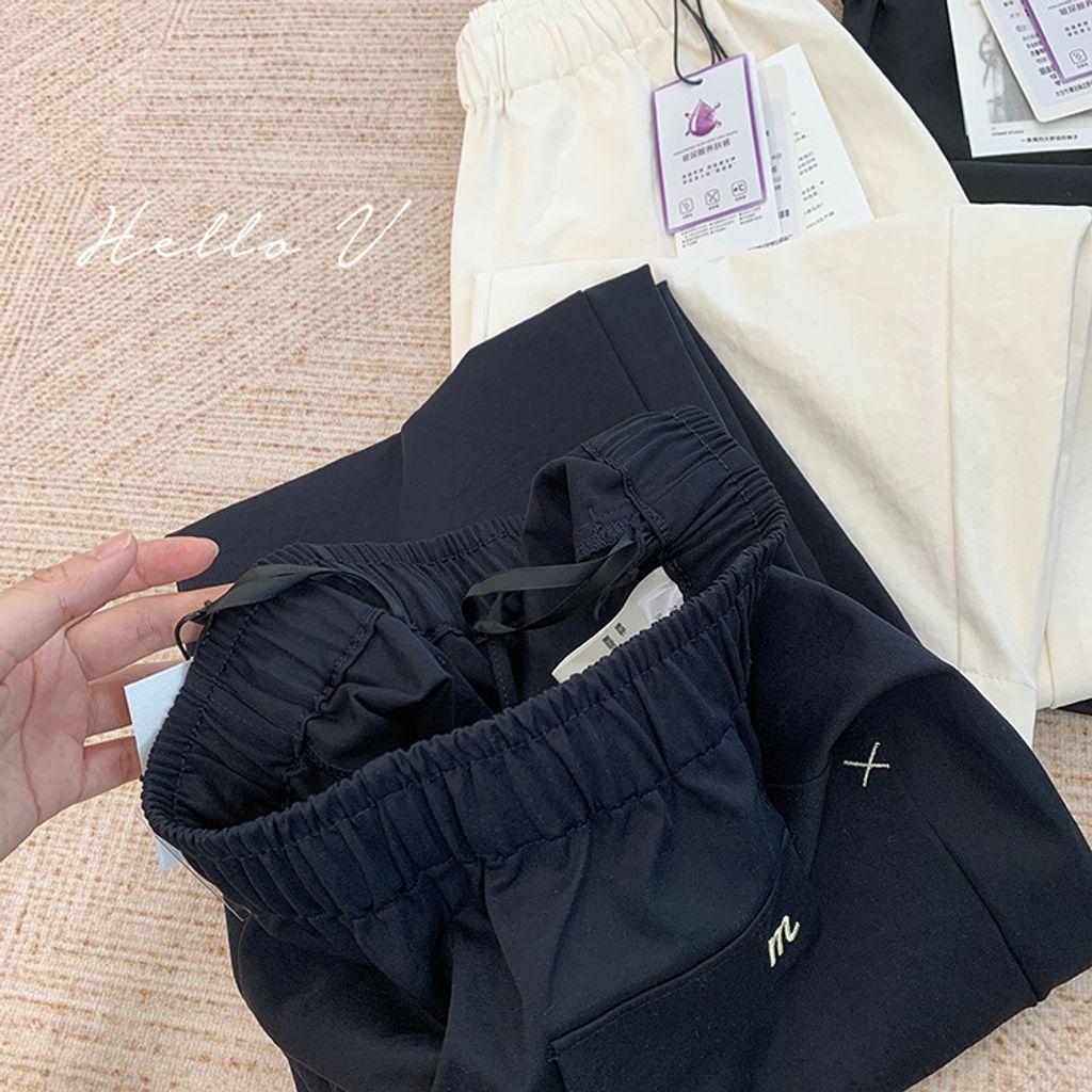 簡約顯瘦寬鬆感細節休閒褲*深藍白黑*S-XL【X0905-66】