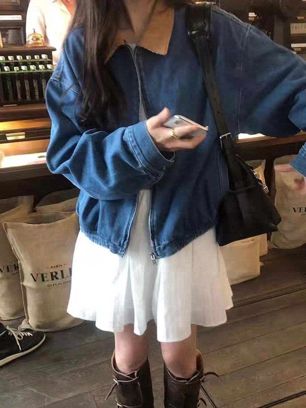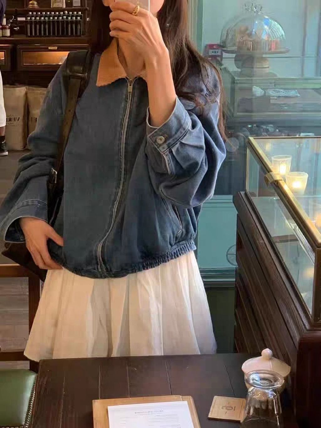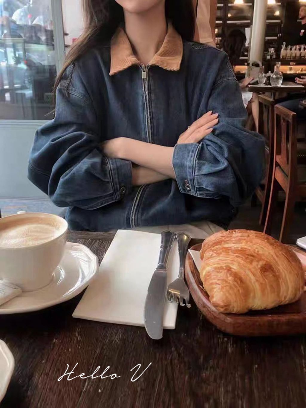 正韓 俏皮女孩撞色領復古休閒外套*藍奶白*【R0920-152】