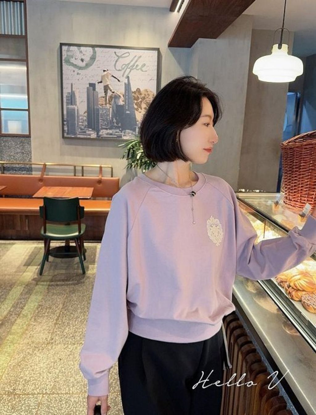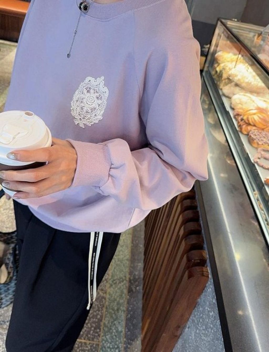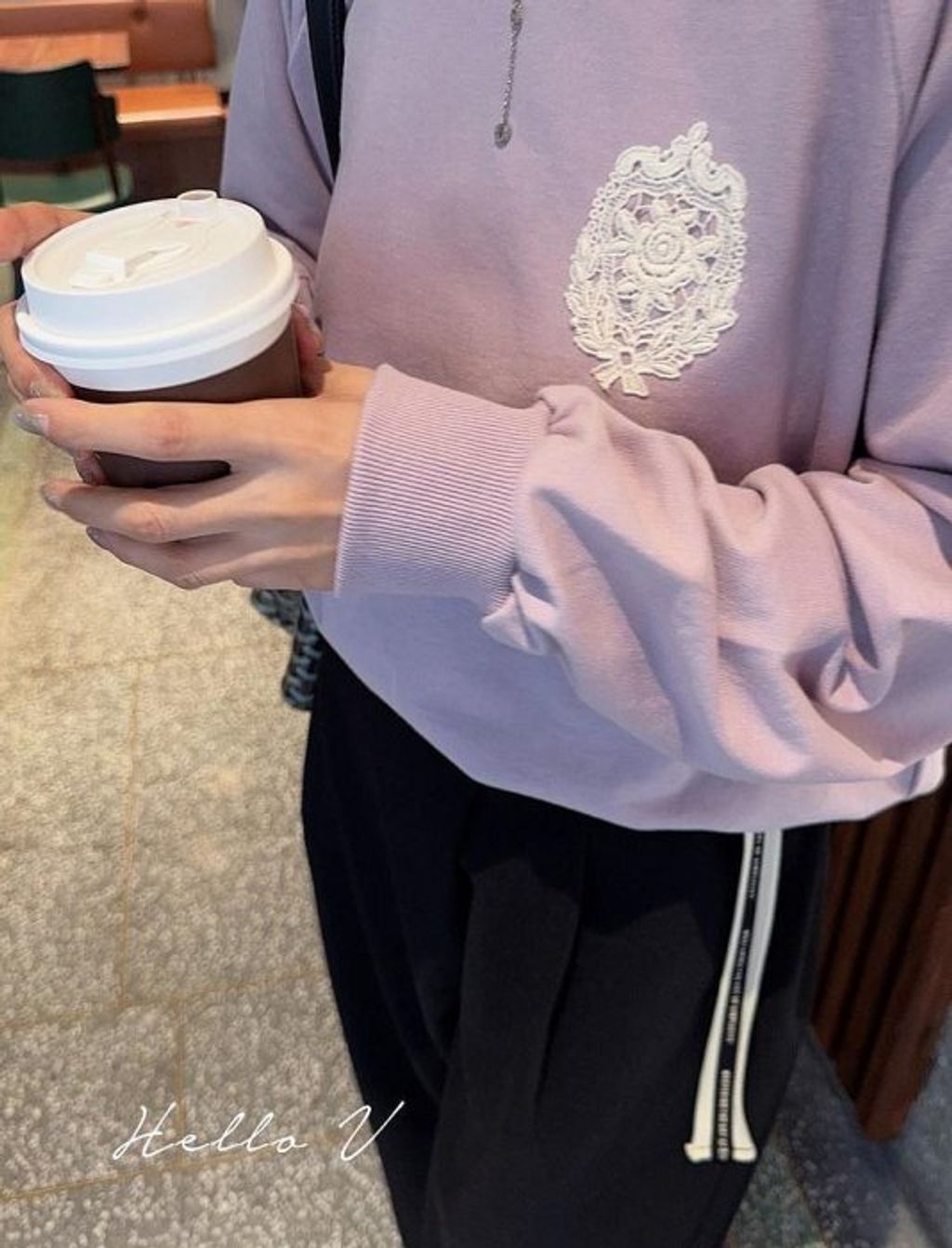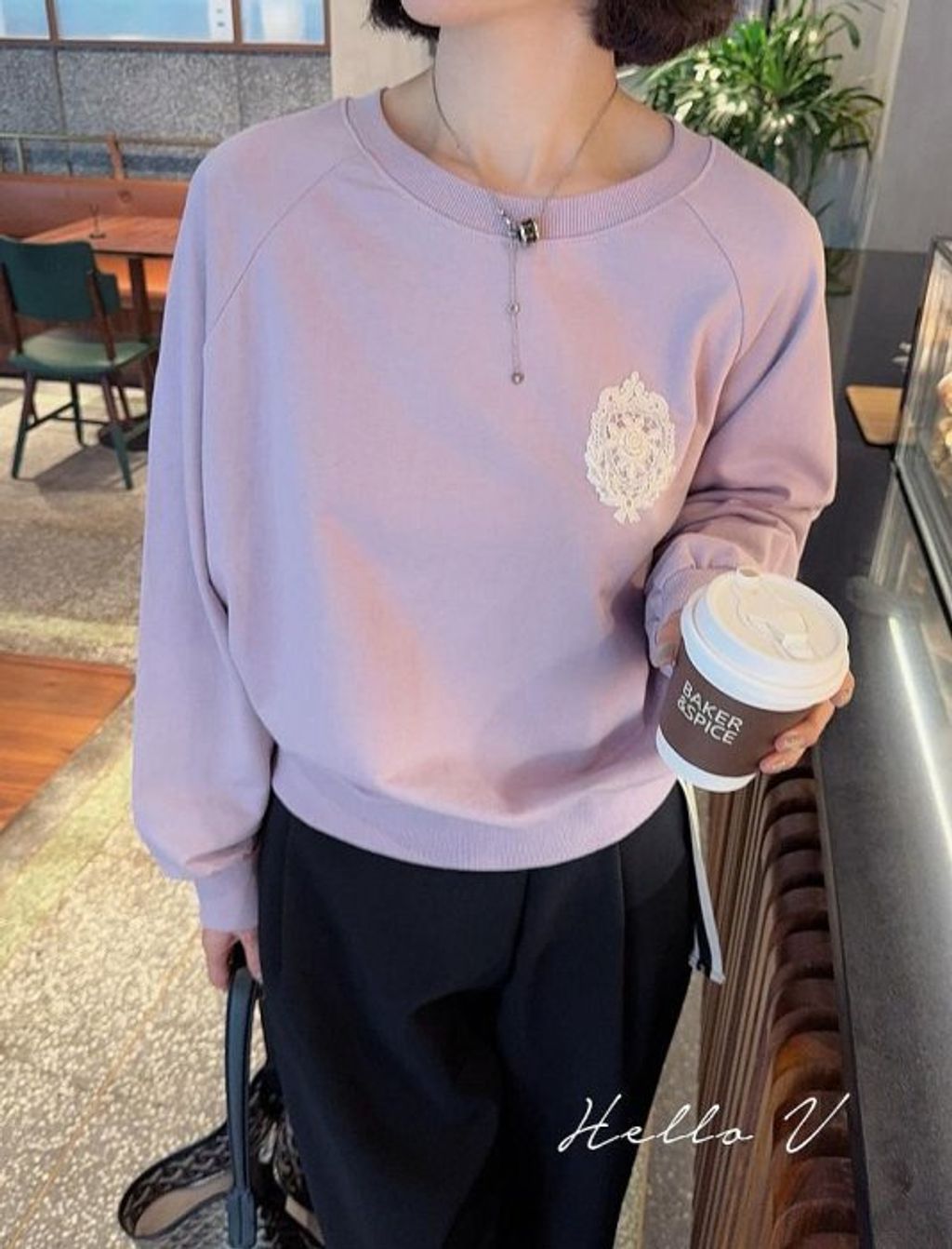 正韓 優雅氣質雕花玫瑰蕾絲上衣大學T*紫*【R0920-104】