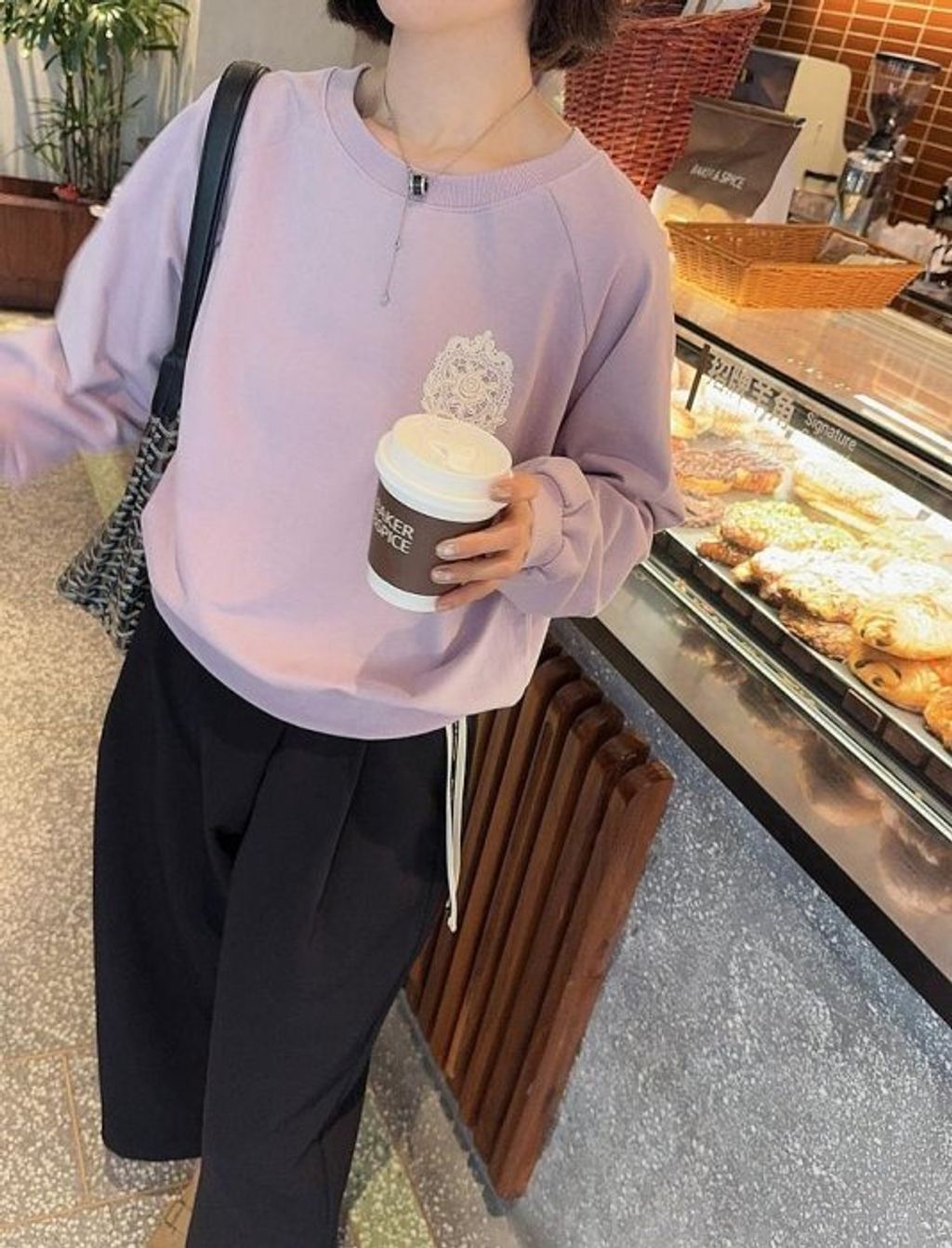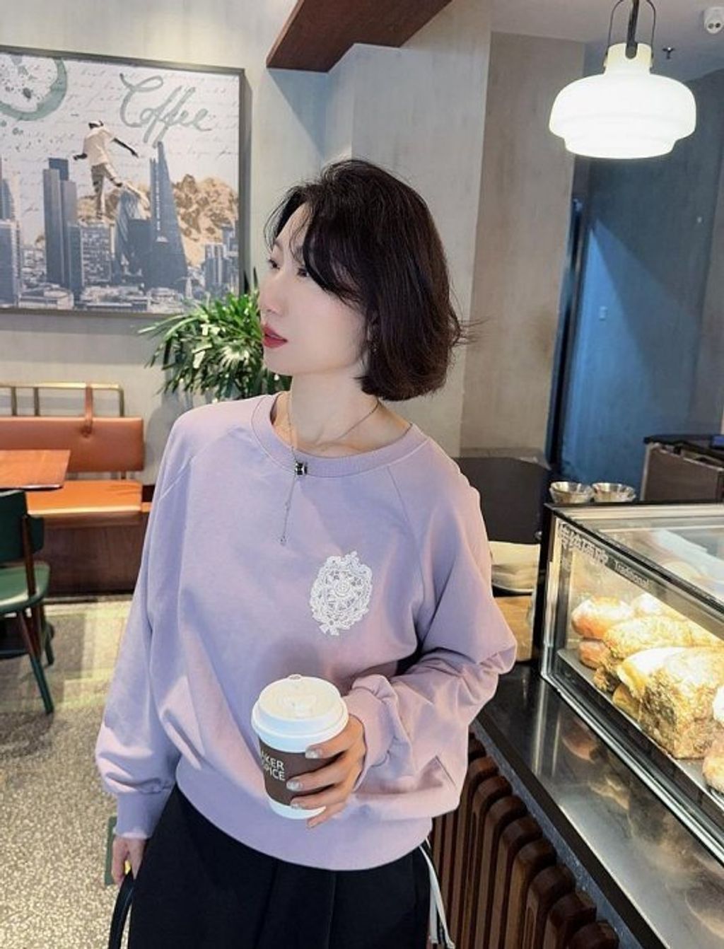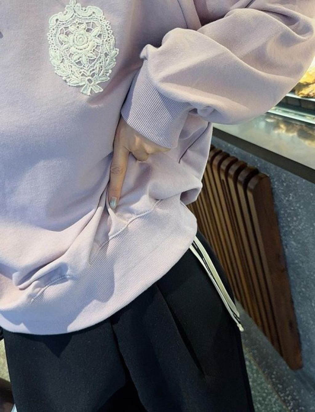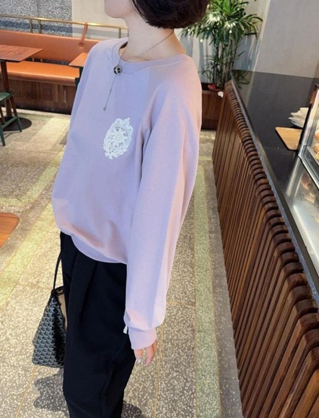 正韓 優雅氣質雕花玫瑰蕾絲上衣大學T*紫*【R0920-104】