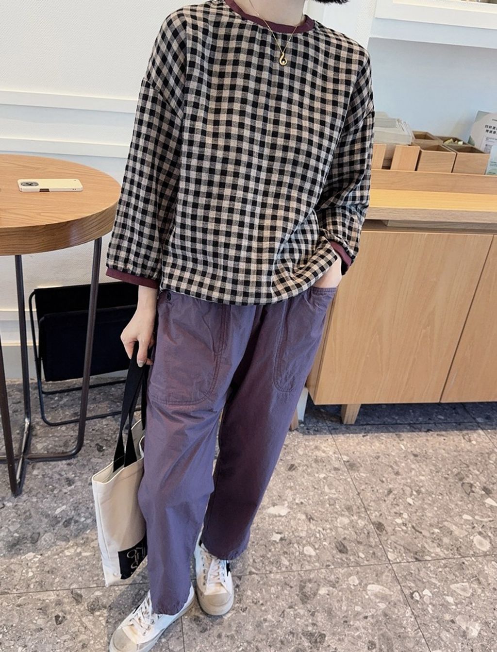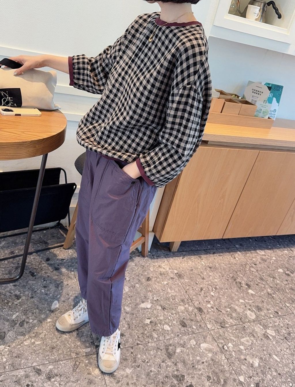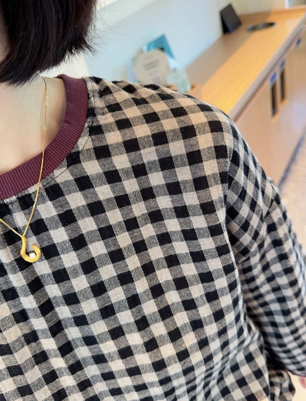 正韓 古典氣質棕黑格紋質感上衣*棕黑格*【R0920-96】