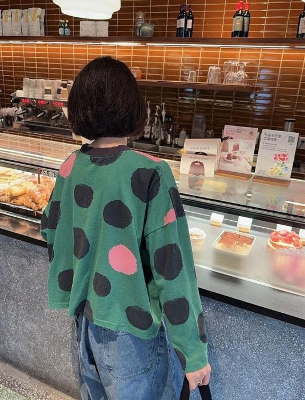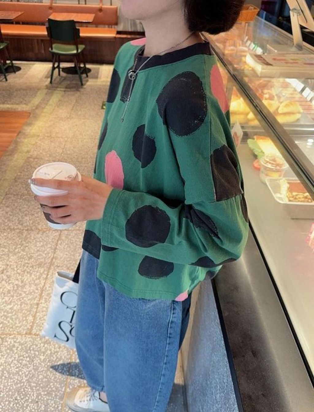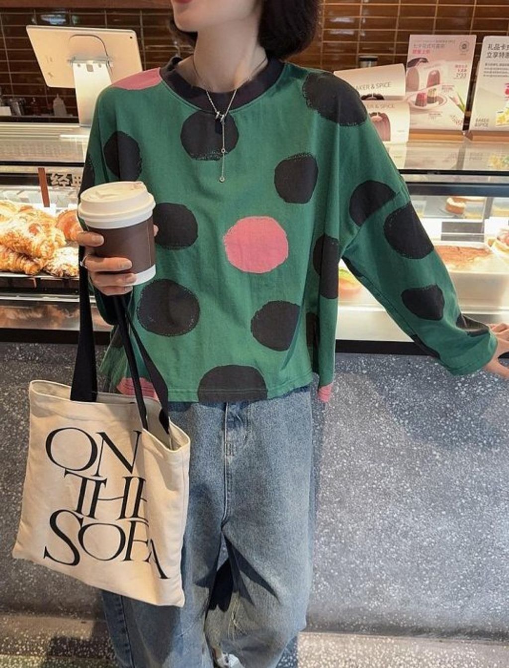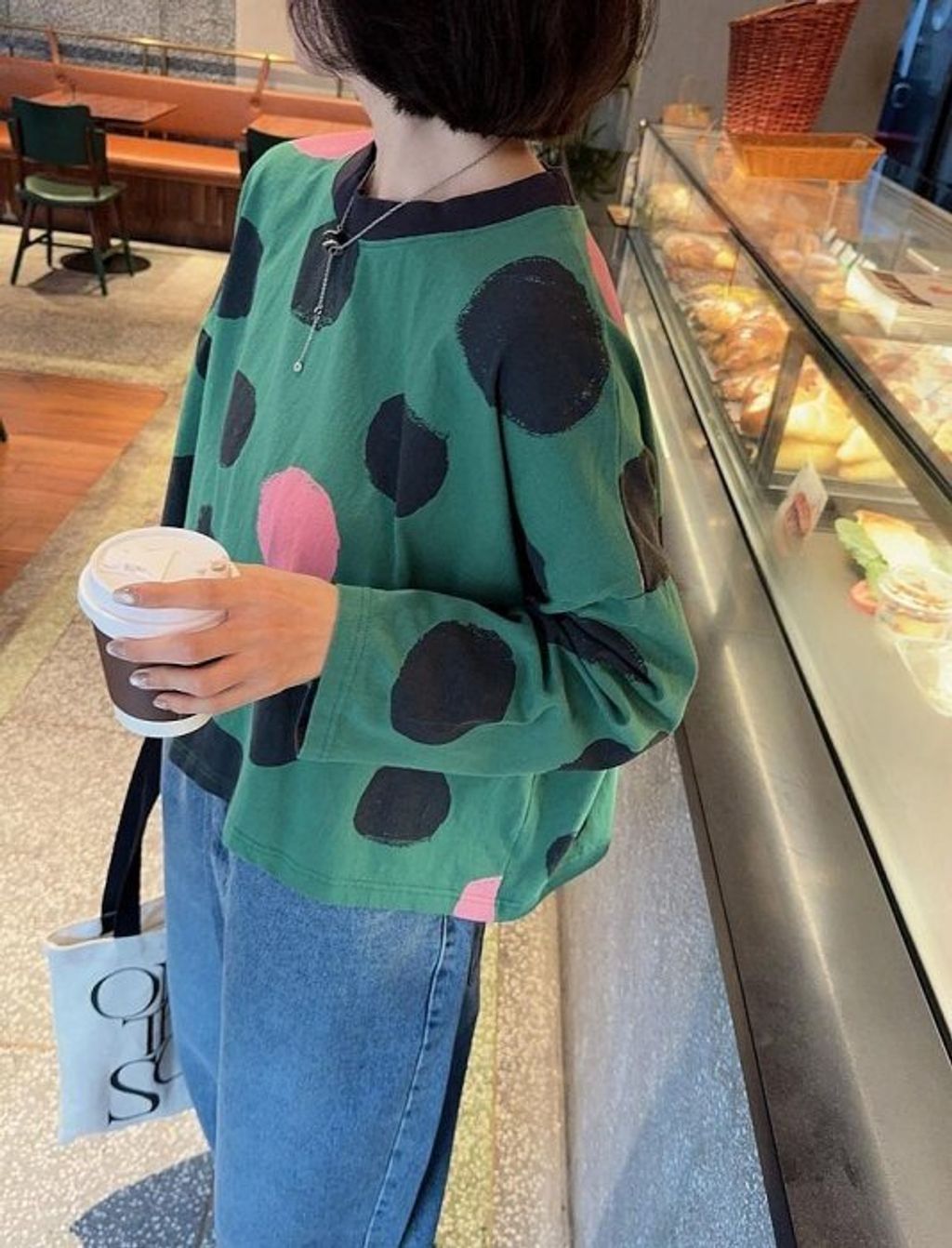 正韓 可愛俏皮撞色圓點質感上衣*綠*【R0920-105】