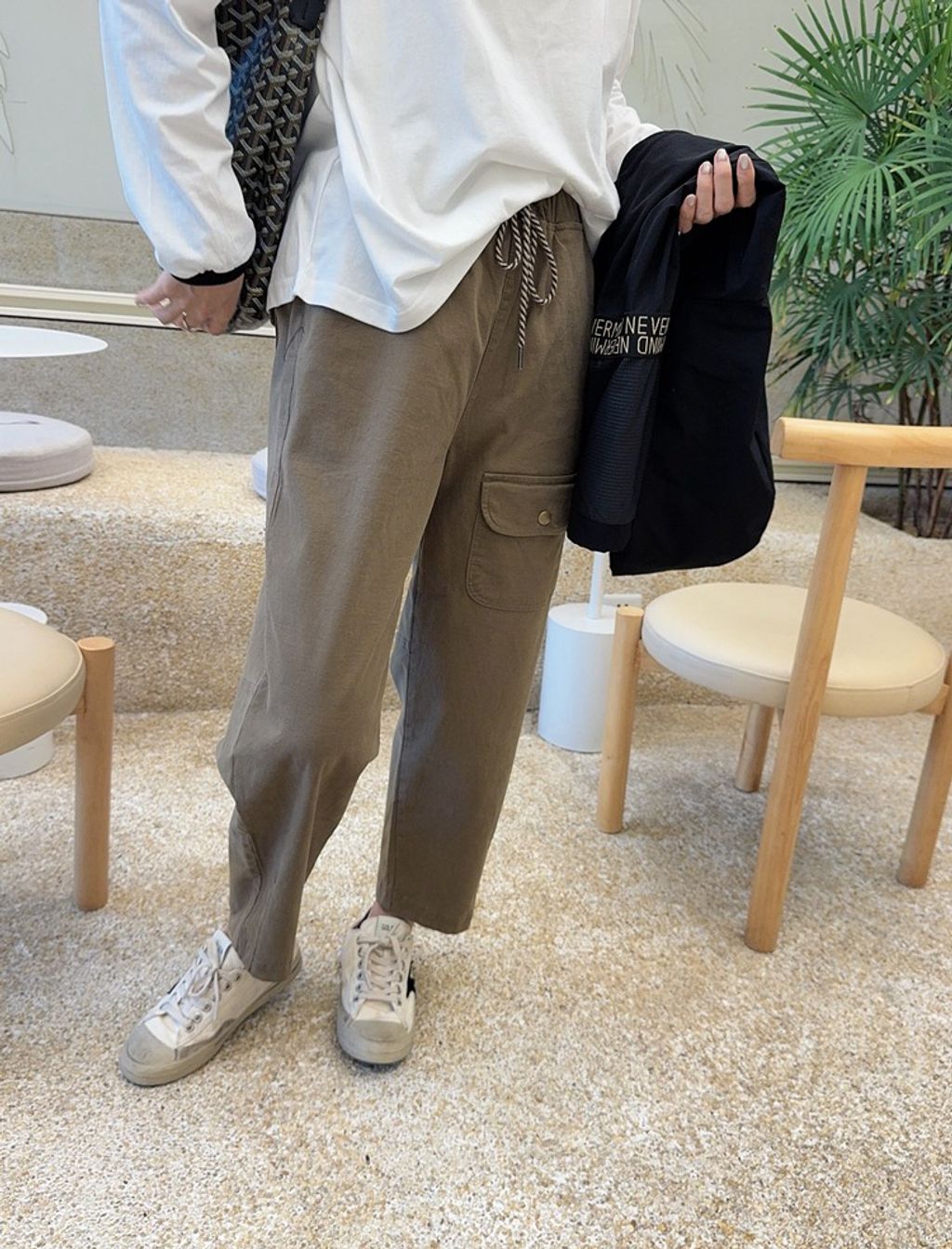 正韓 可愛小口袋設計抽繩質感休閒褲*卡其*【R0920-114】