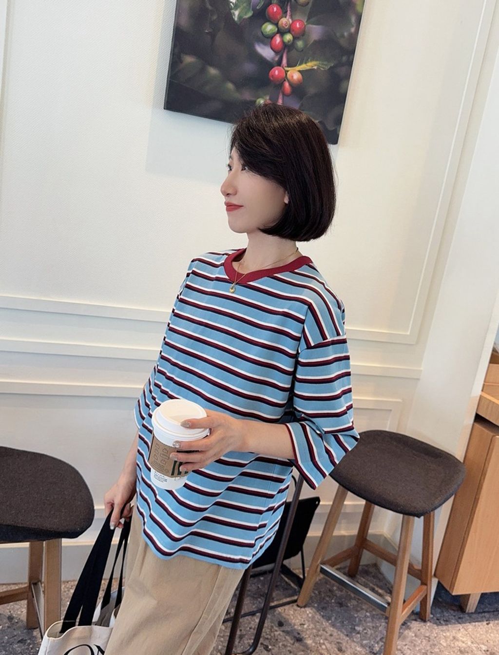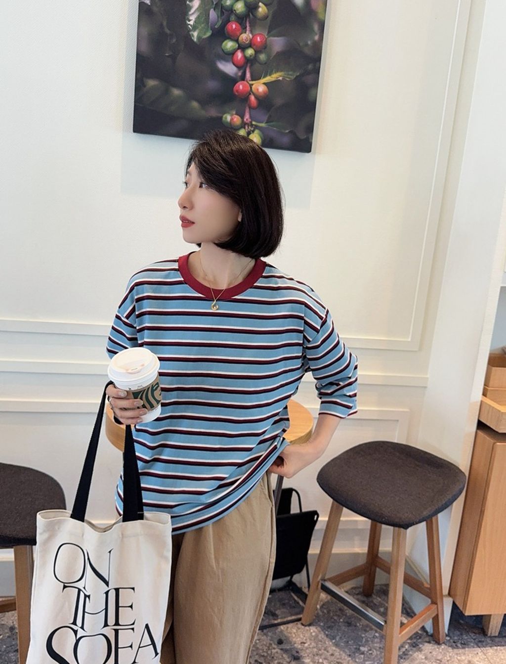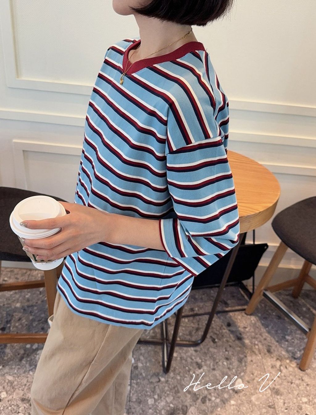 正韓 復古亮眼撞色好質感長T*藍*【R0920-97】