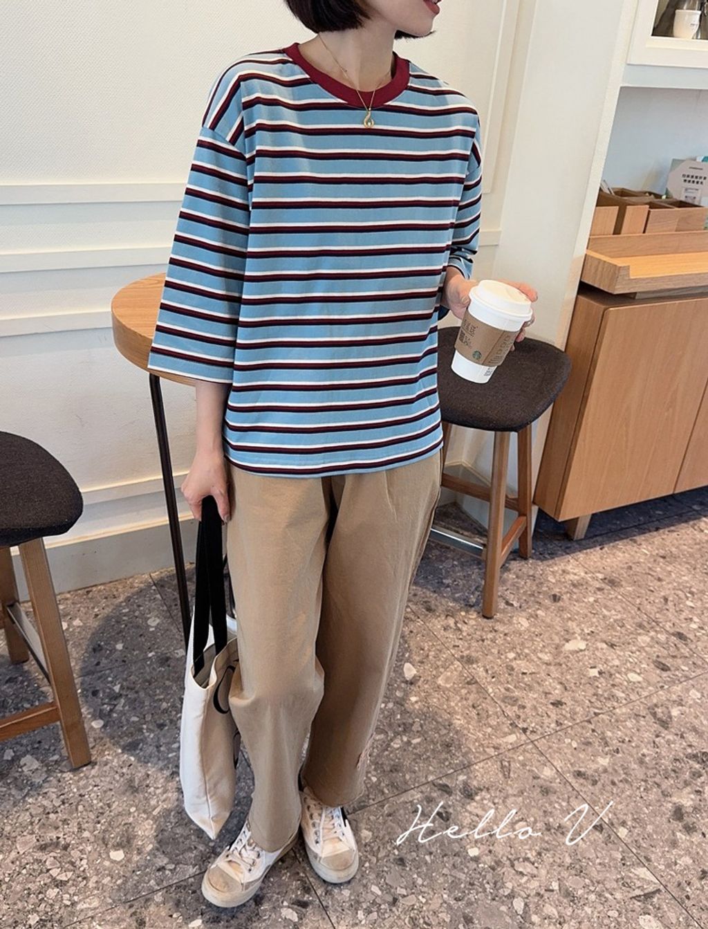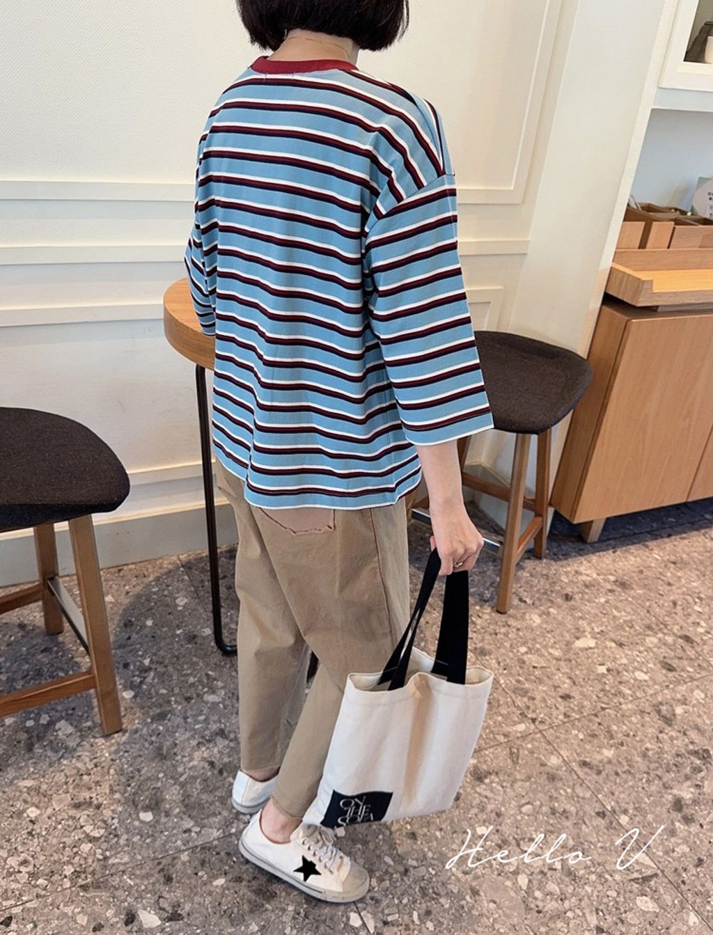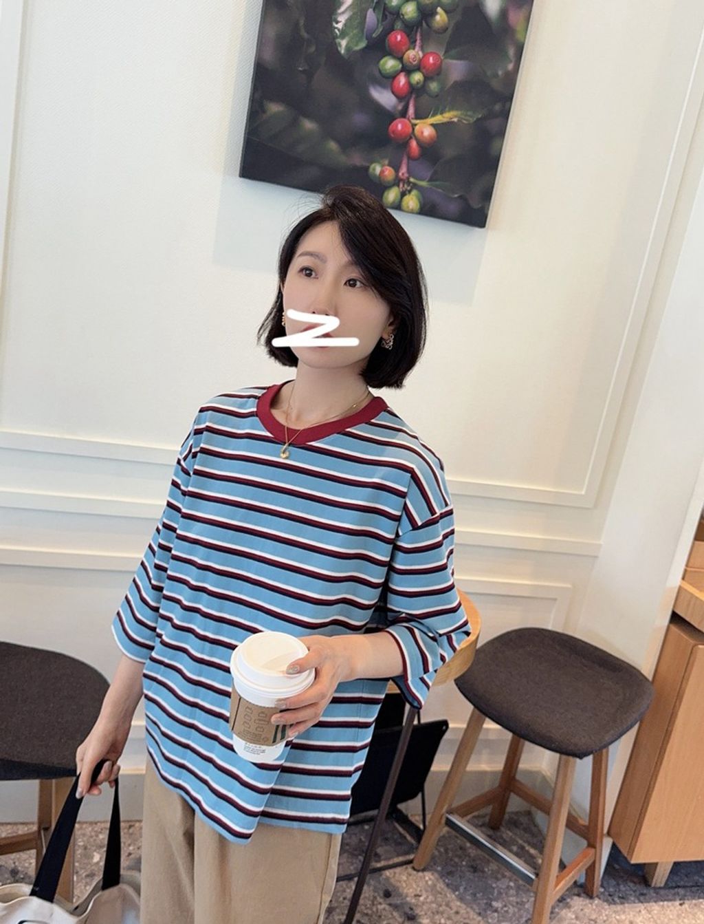 正韓 復古亮眼撞色好質感長T*藍*【R0920-97】