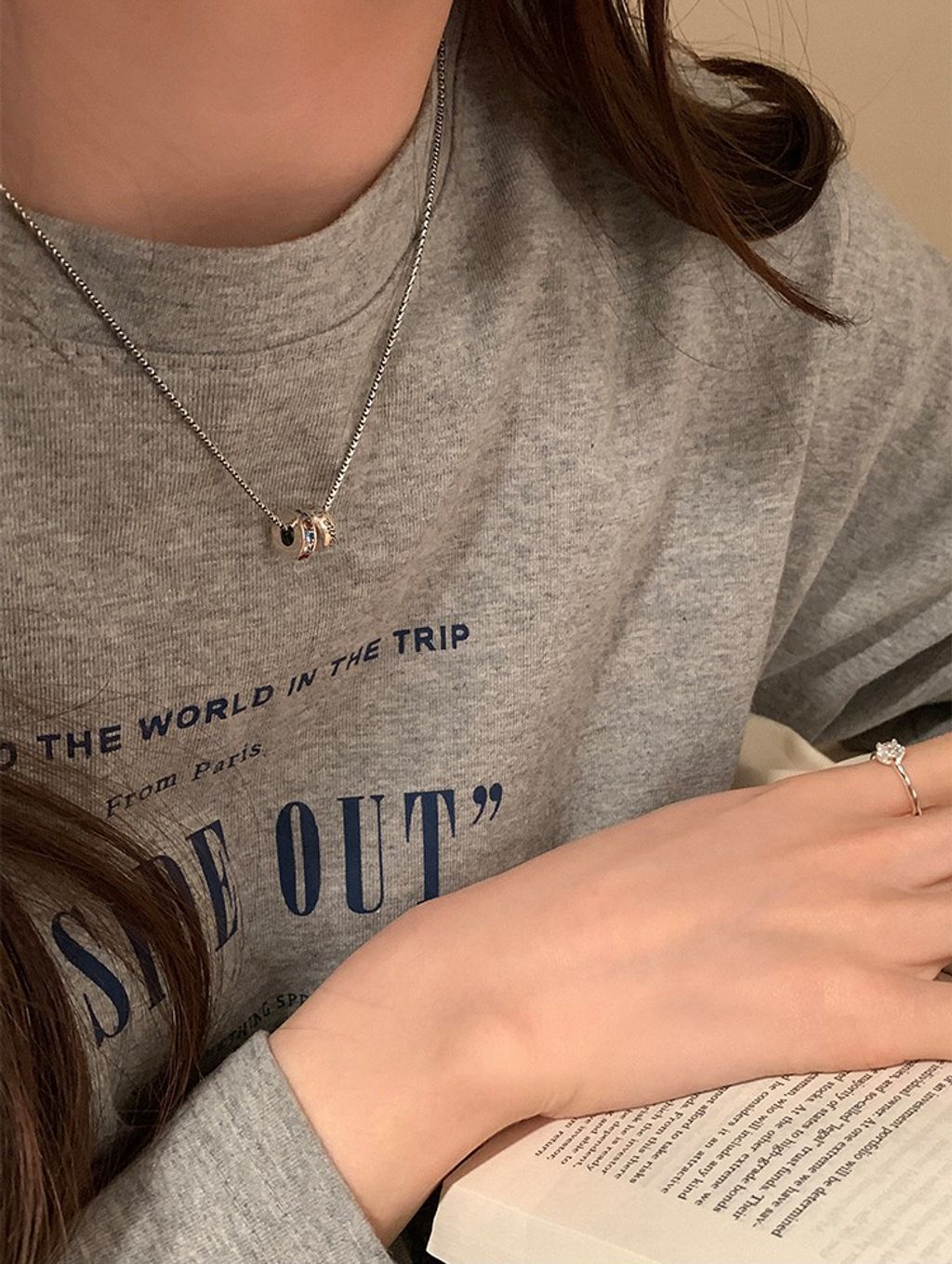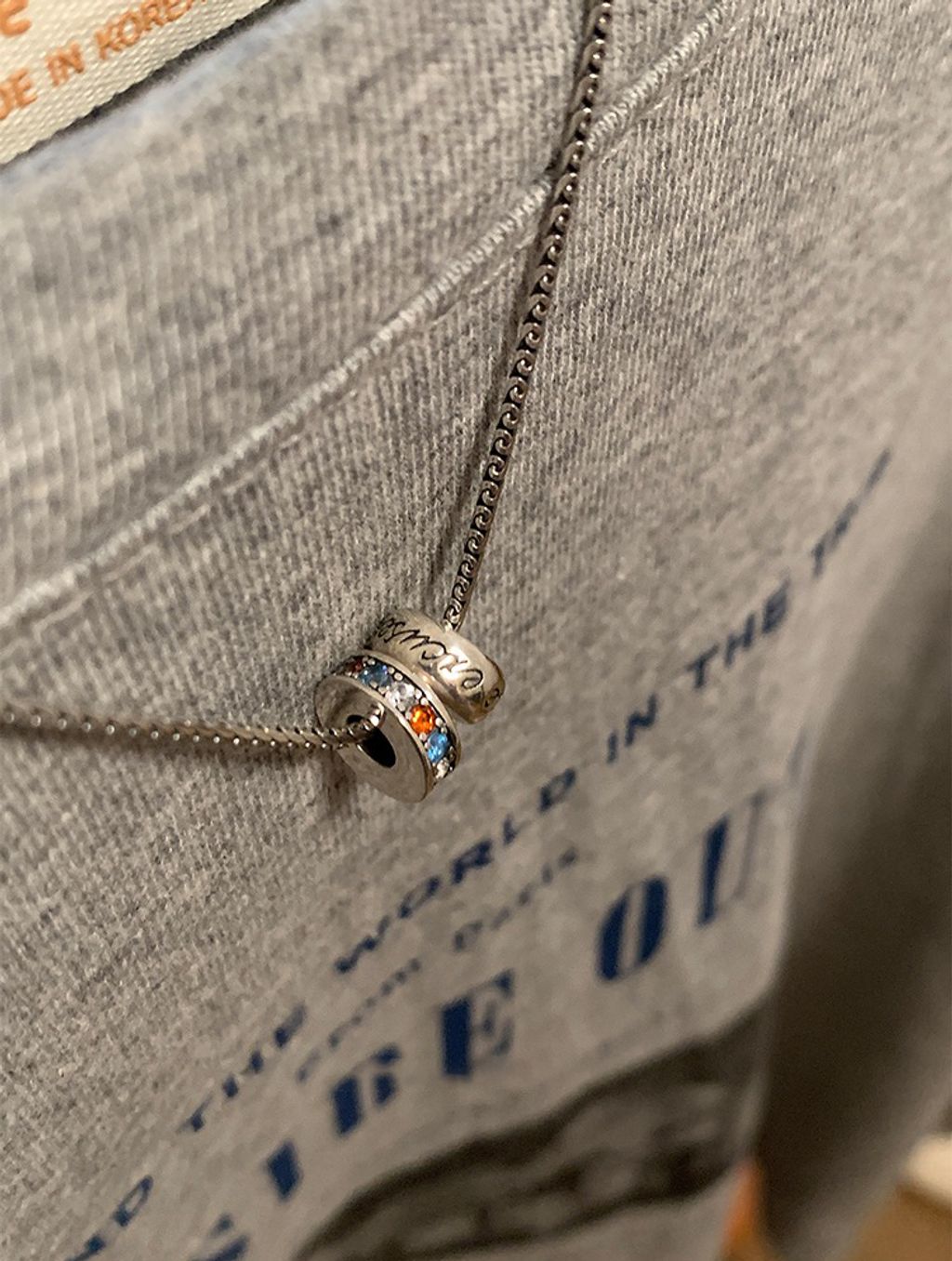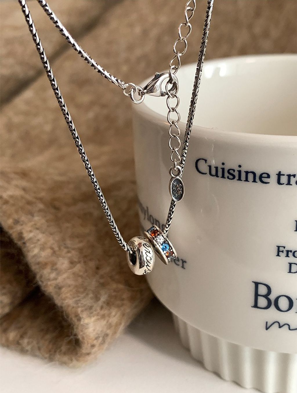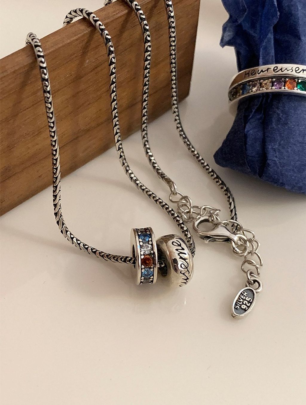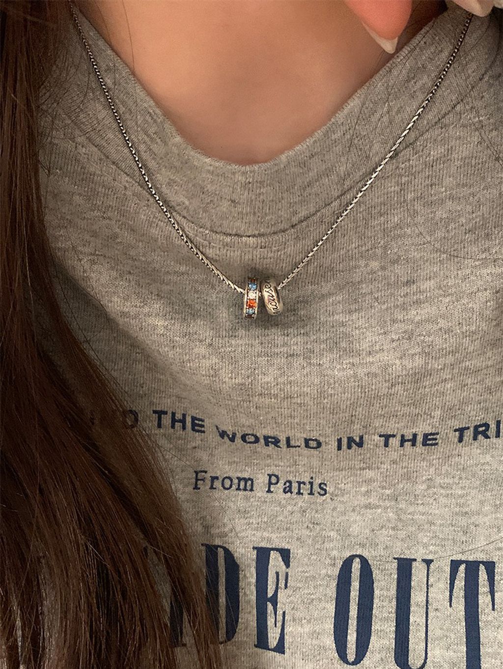 正韓 復古時尚亮眼彩鑽金屬環純銀項鍊*彩鑽*【R0920-160】