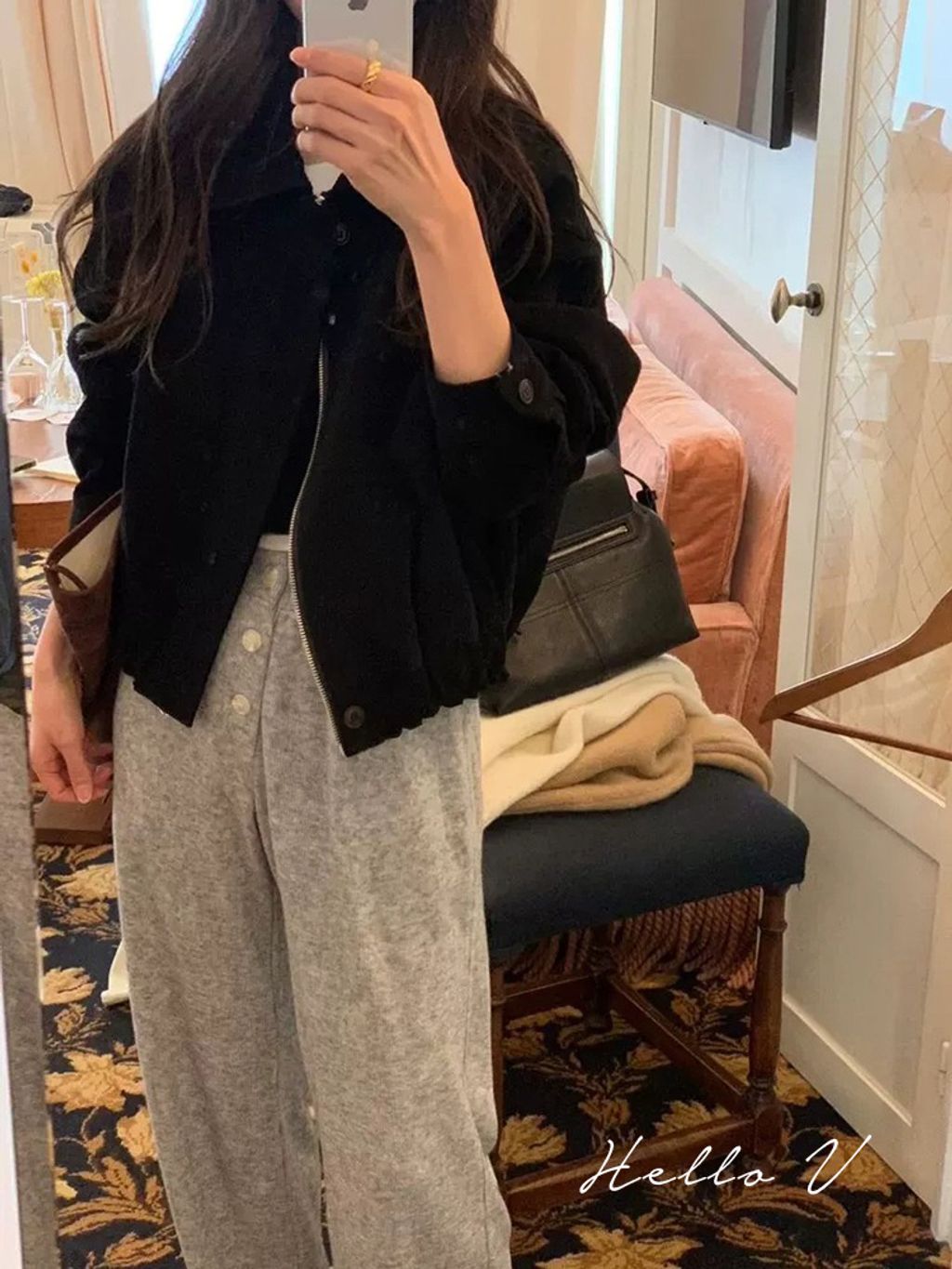 正韓 復古率性風格燈芯絨質感外套*棕黑*【R0920-124】