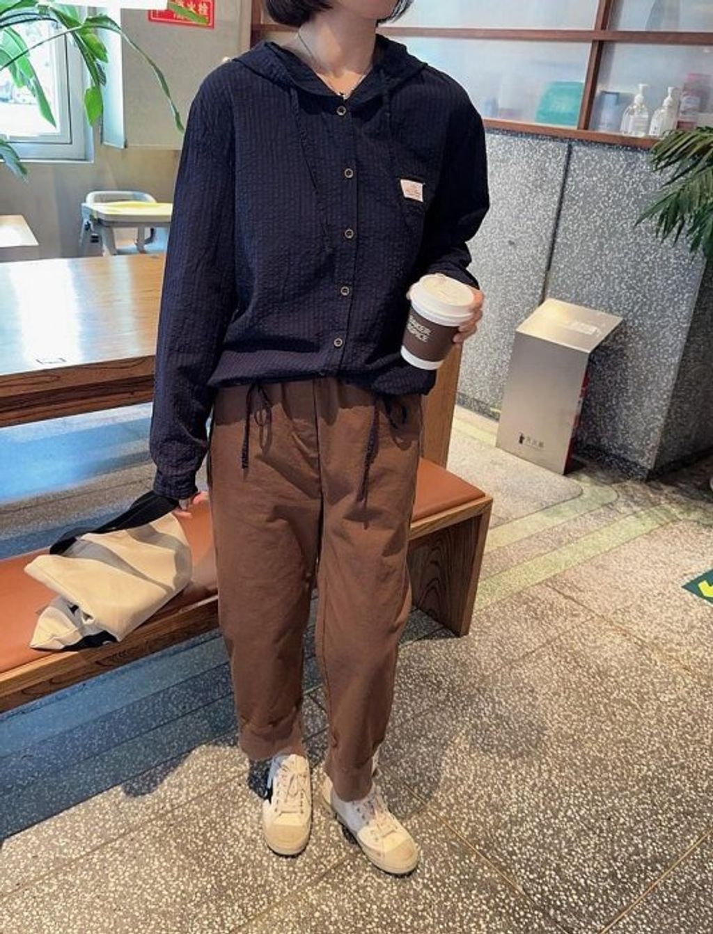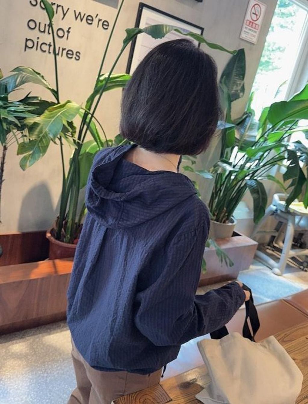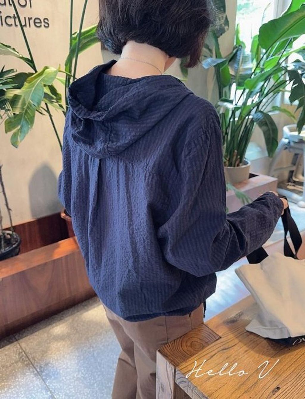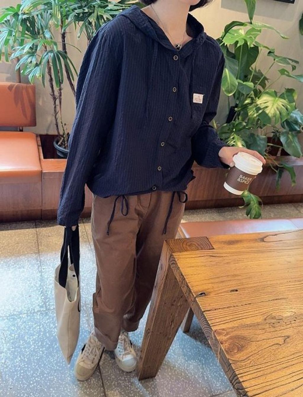 正韓 沉穩氣質直條紋連帽兩穿襯衫小外套*深藍*【R0920-101】