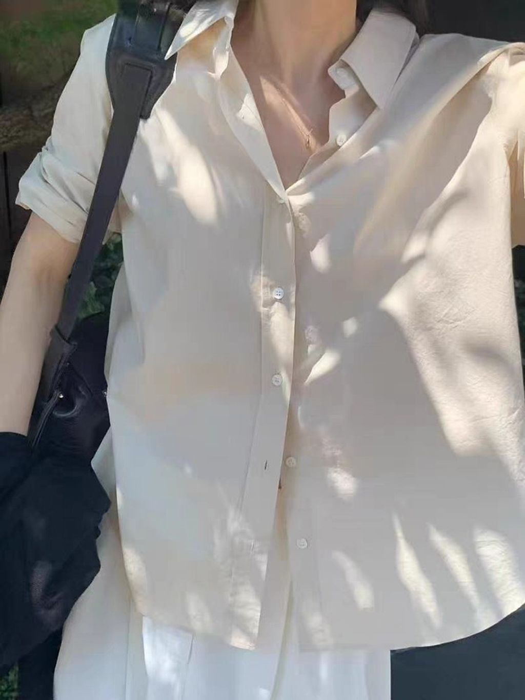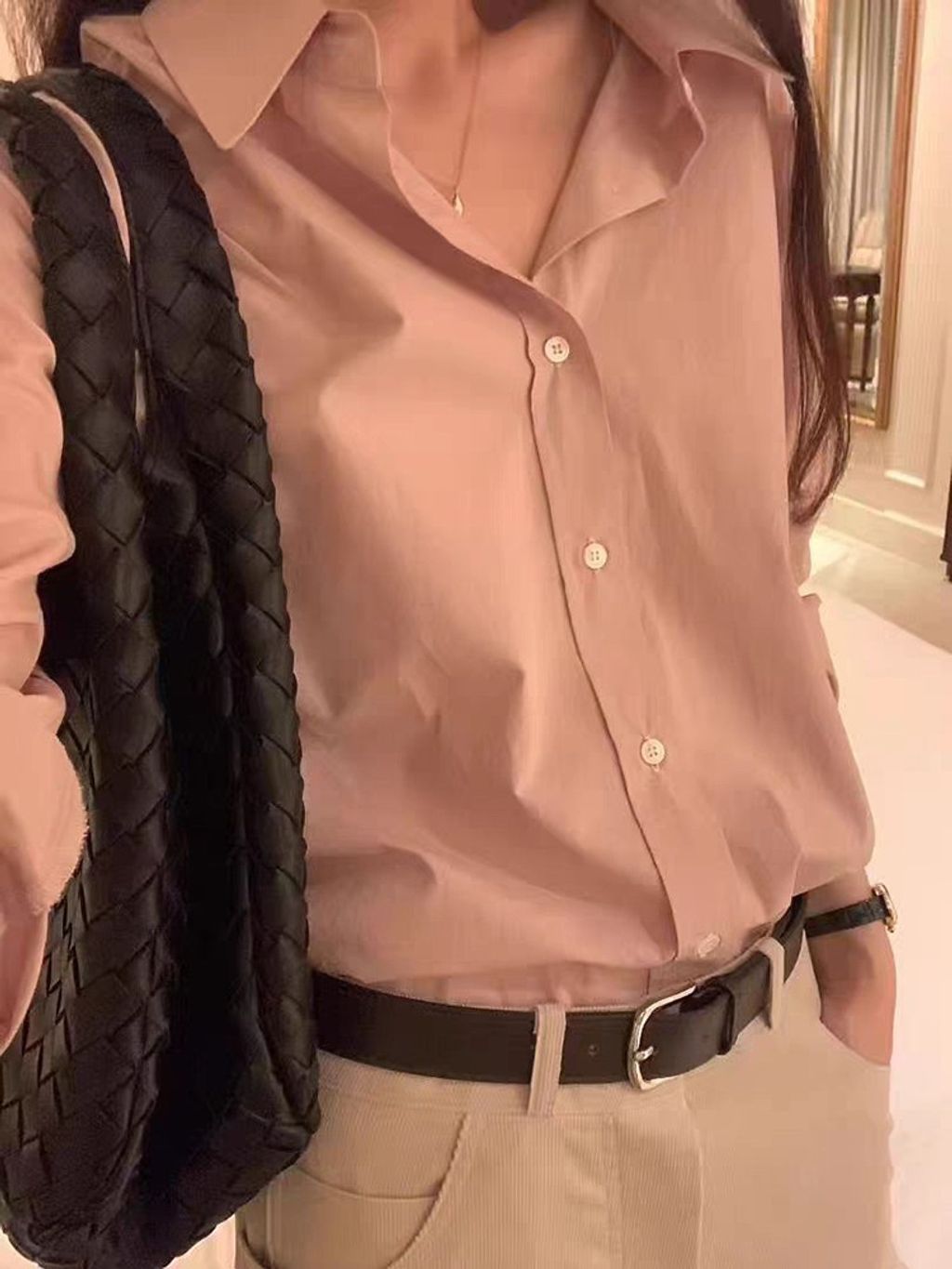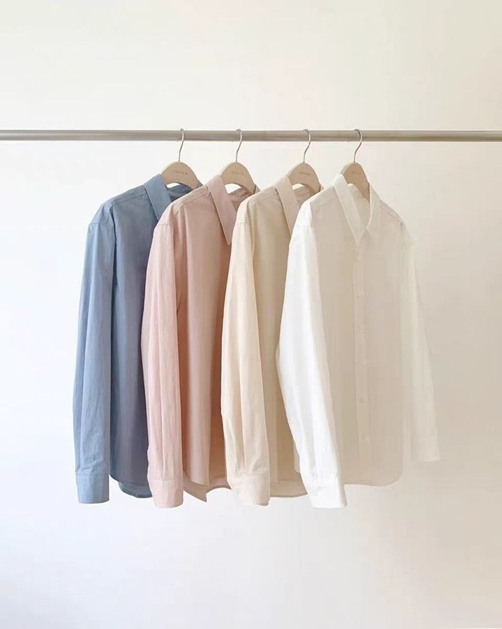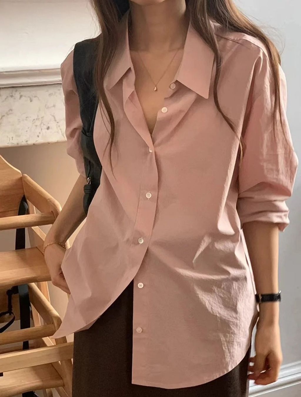 正韓 溫柔純色系好搭質感襯衫*藍白杏粉*【R0920-126】