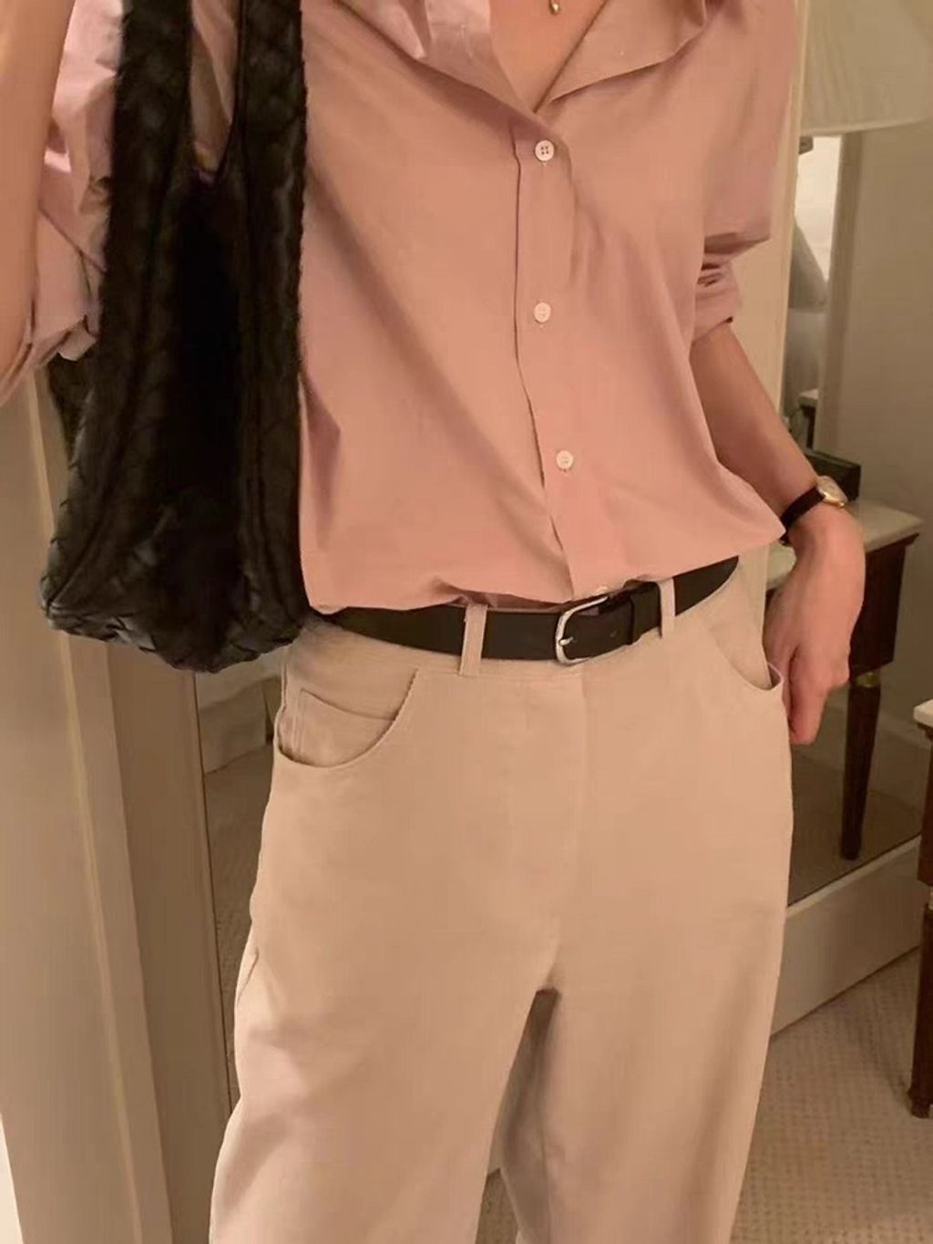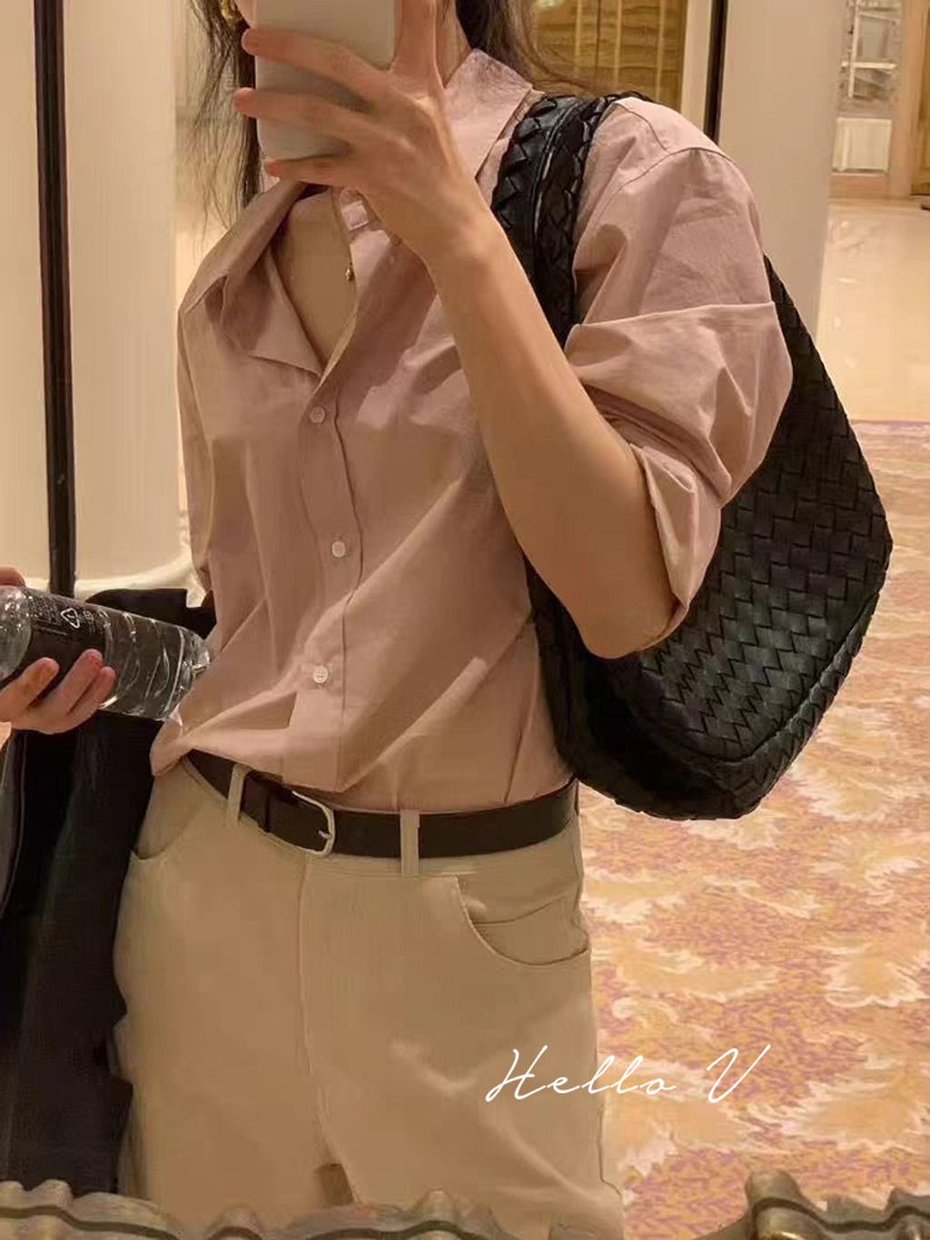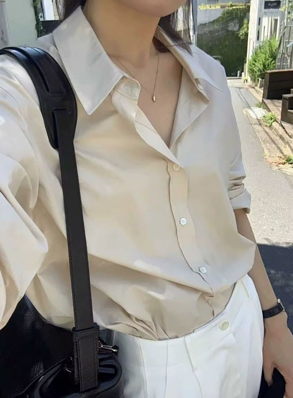 正韓 溫柔純色系好搭質感襯衫*藍白杏粉*【R0920-126】