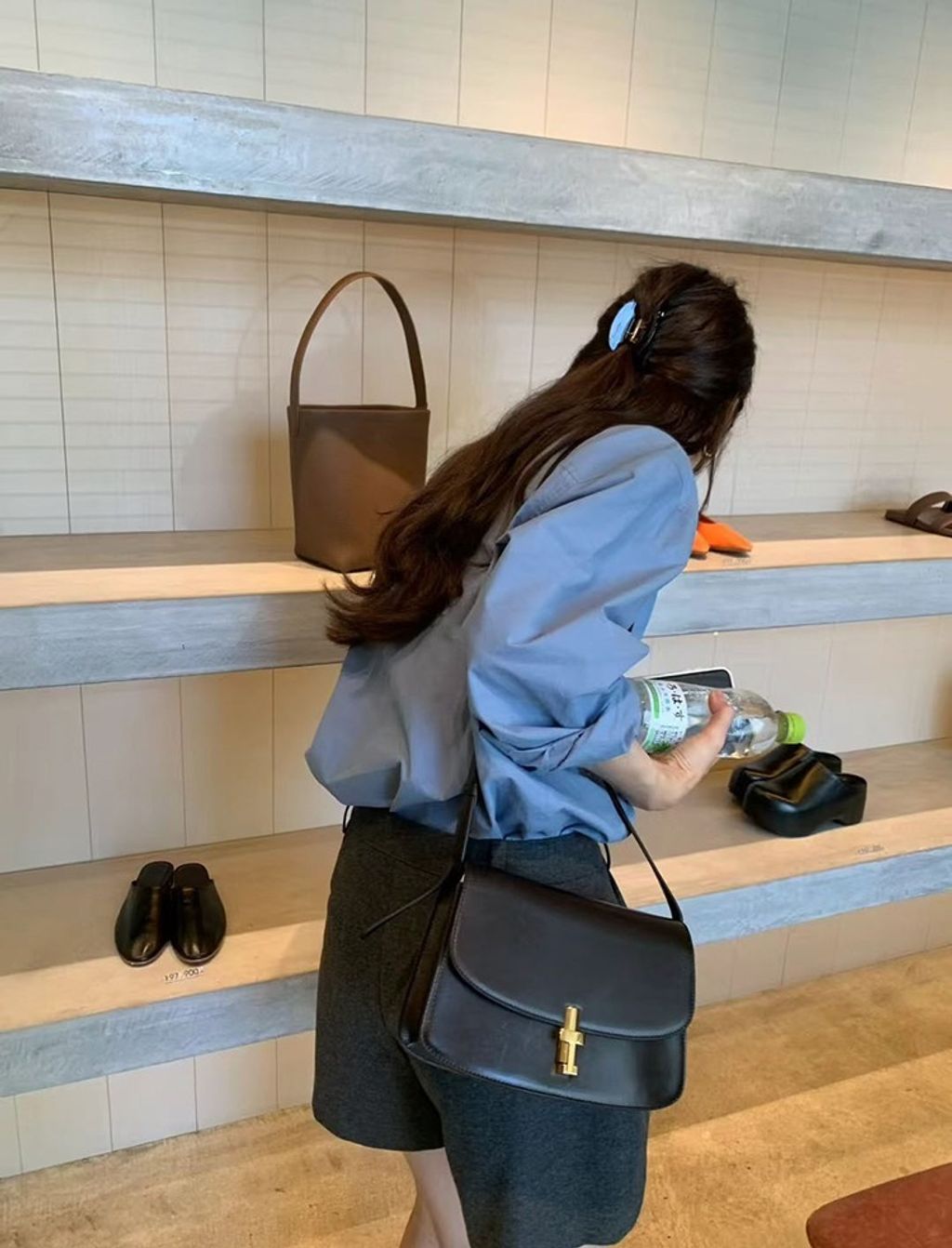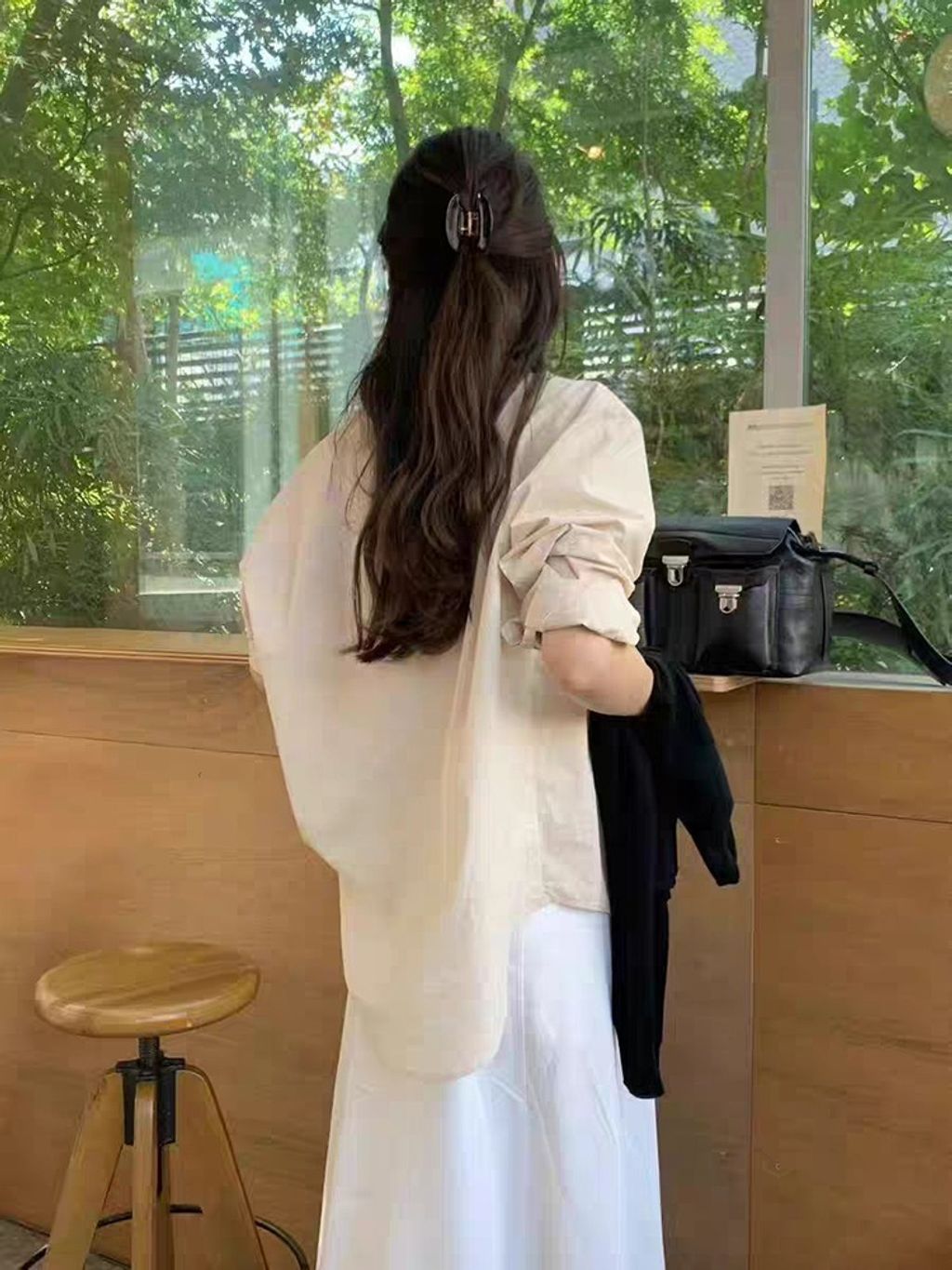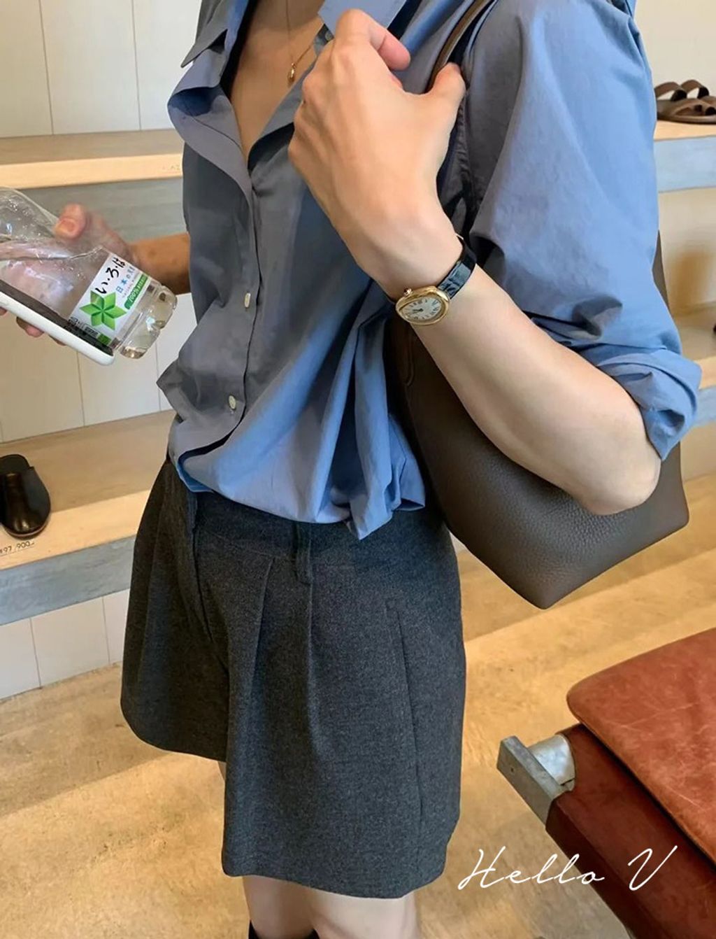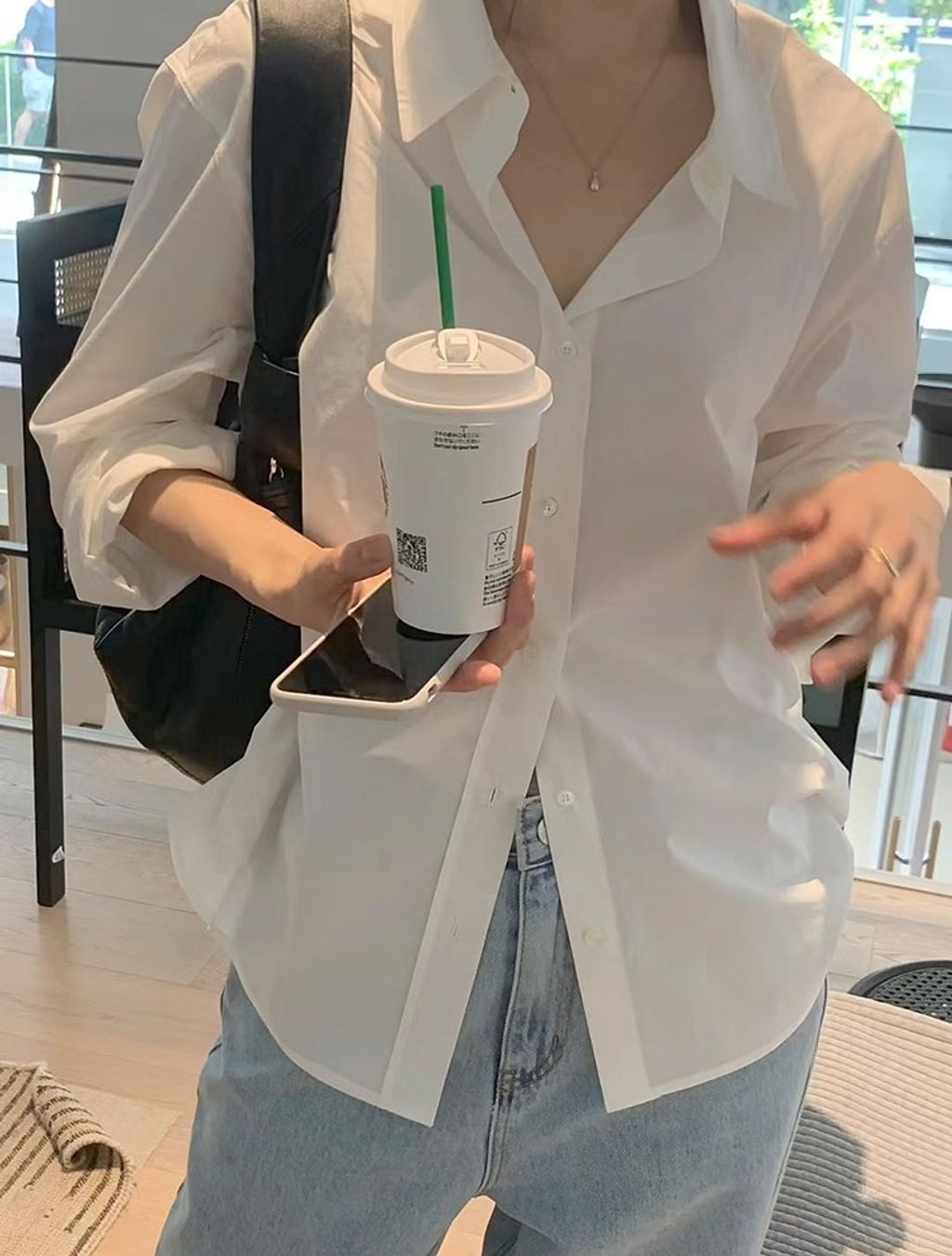 正韓 溫柔純色系好搭質感襯衫*藍白杏粉*【R0920-126】