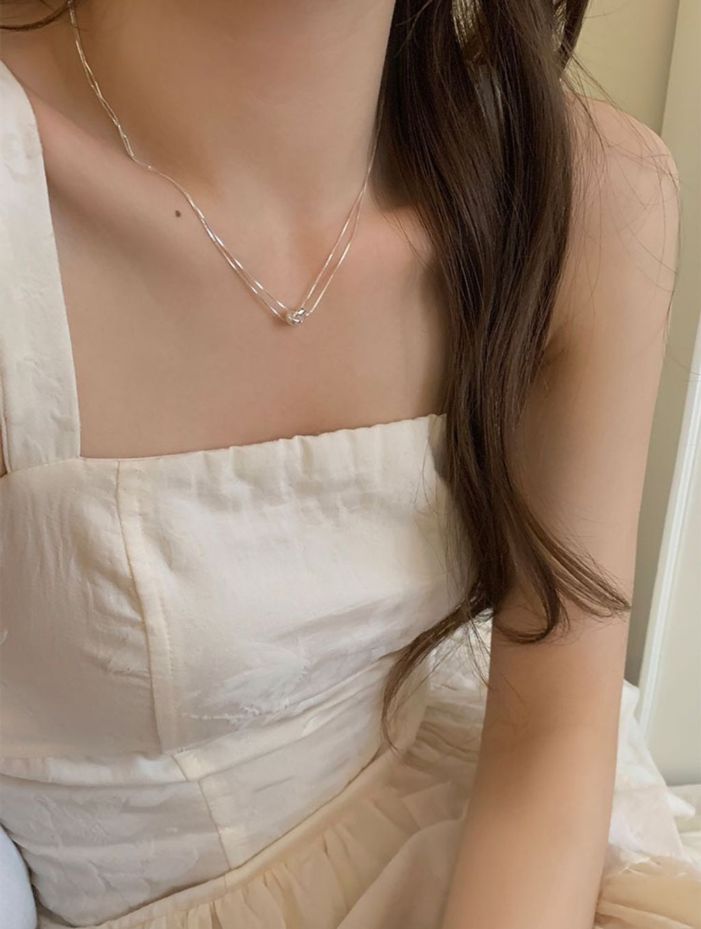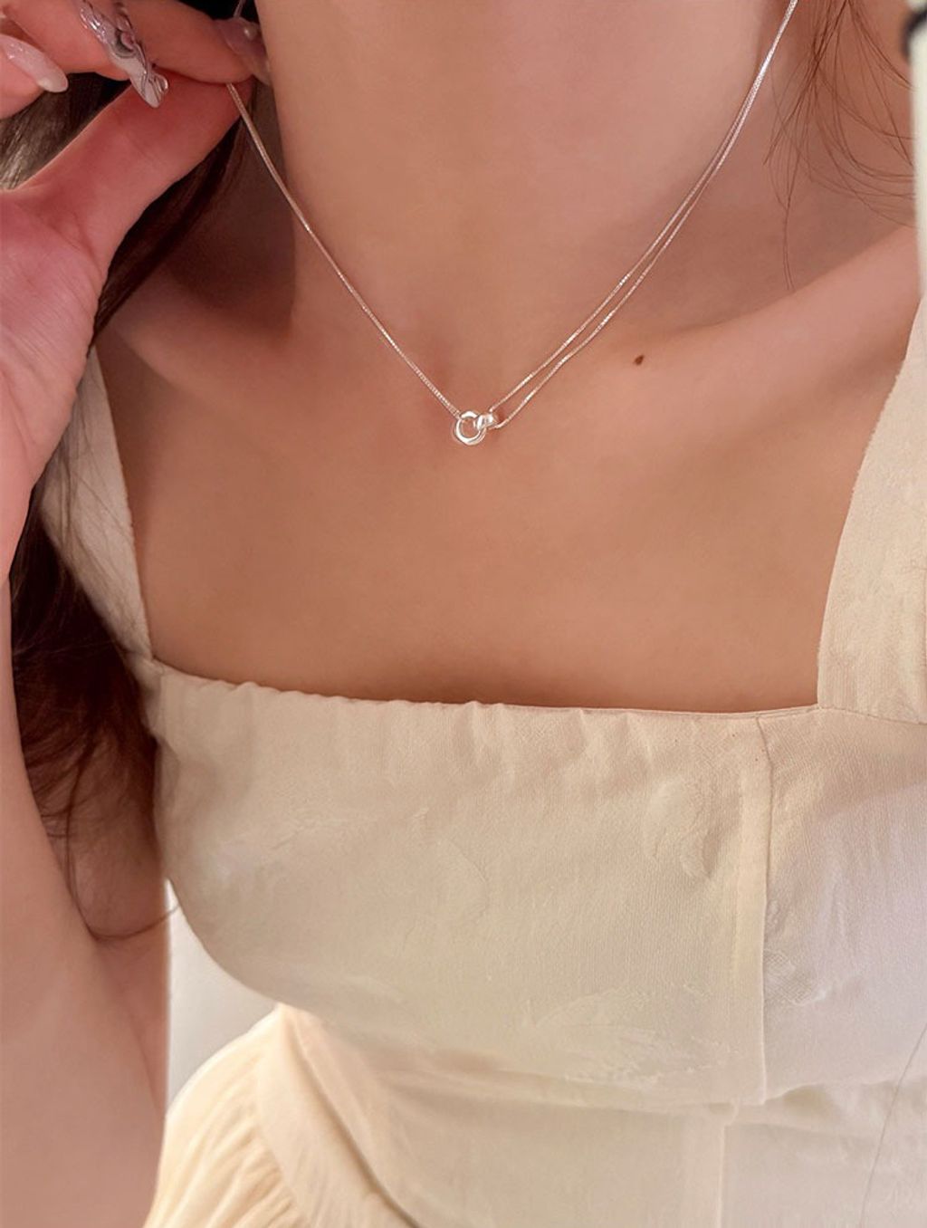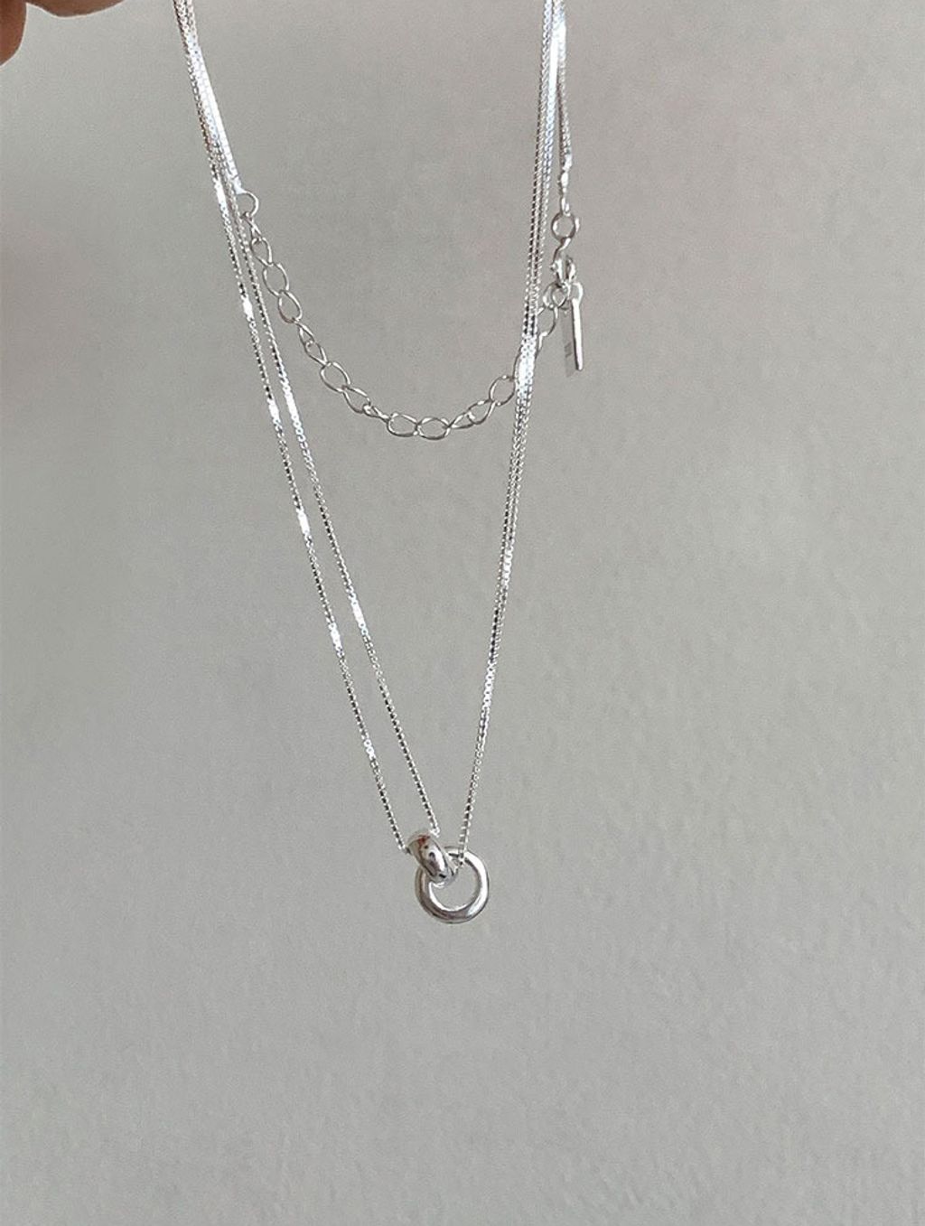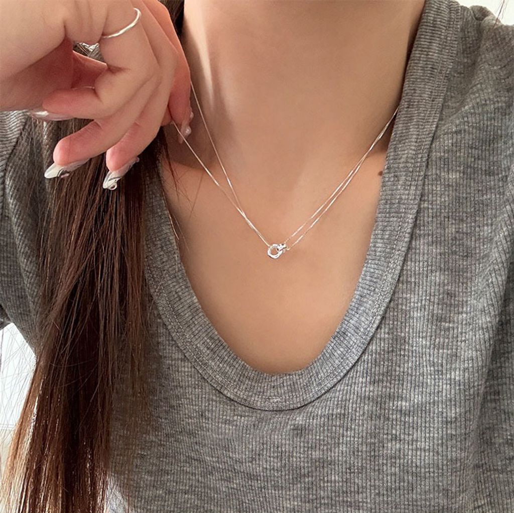 正韓 簡約亮眼雙層純銀質感項鍊*銀*【R0920-159】