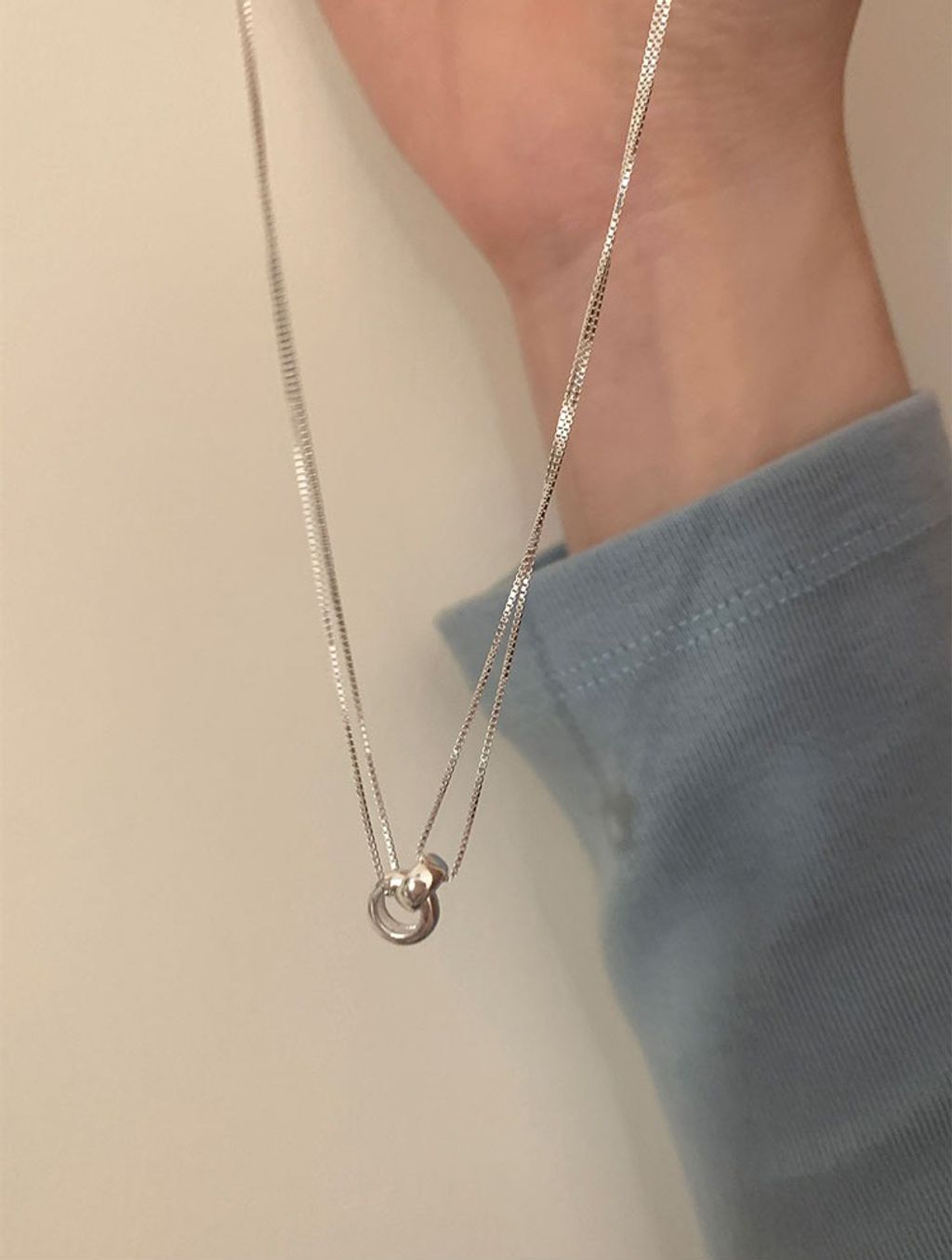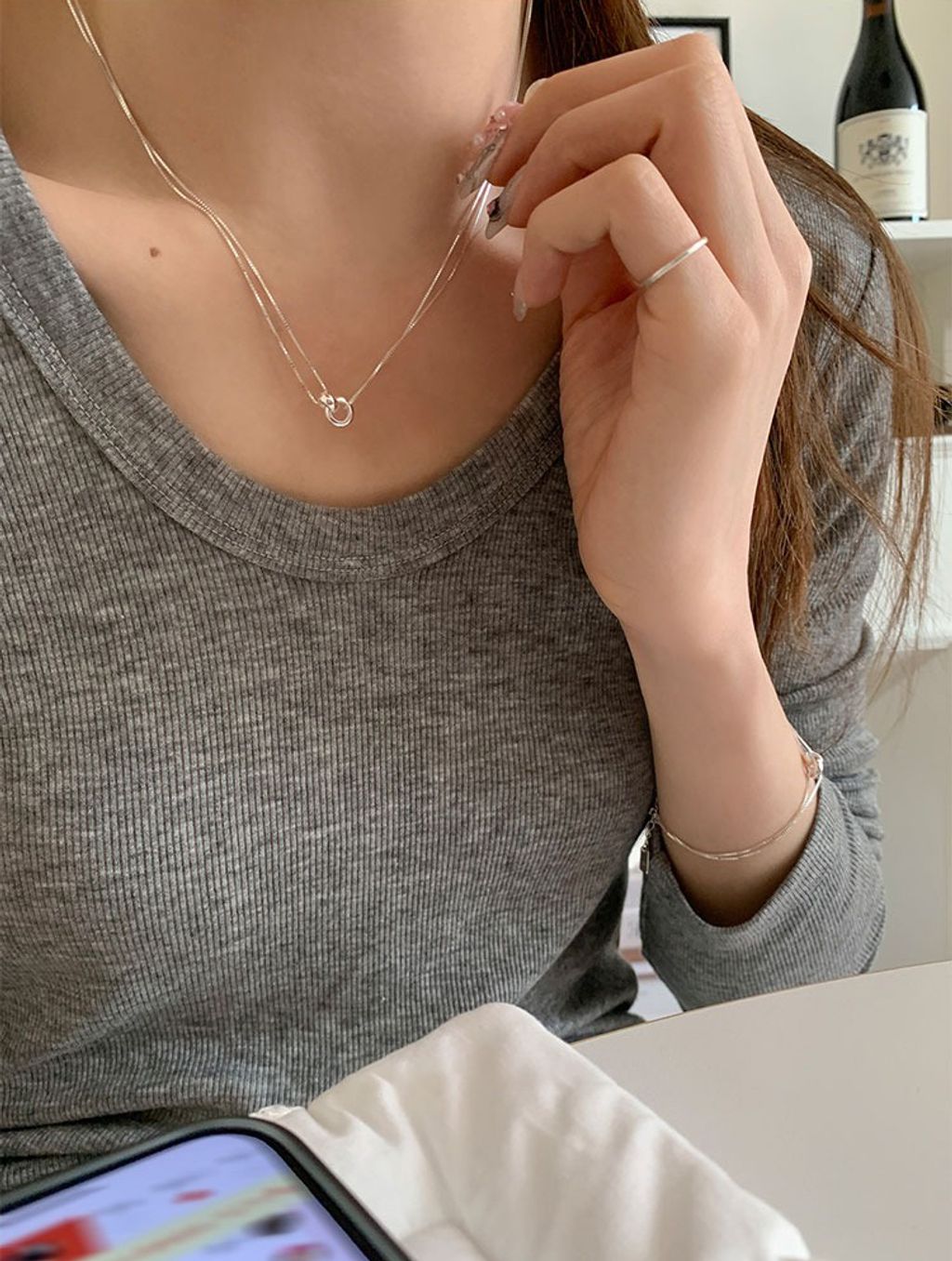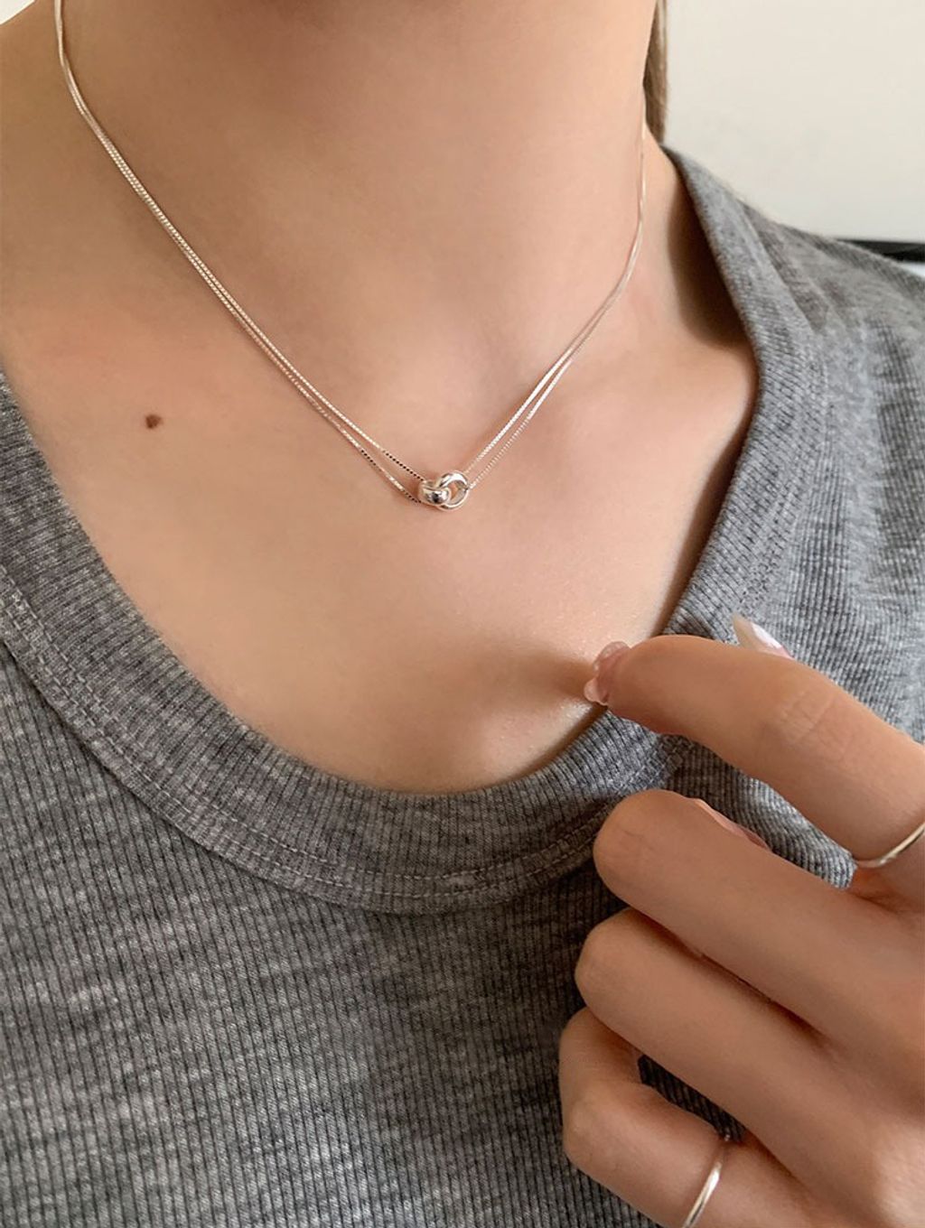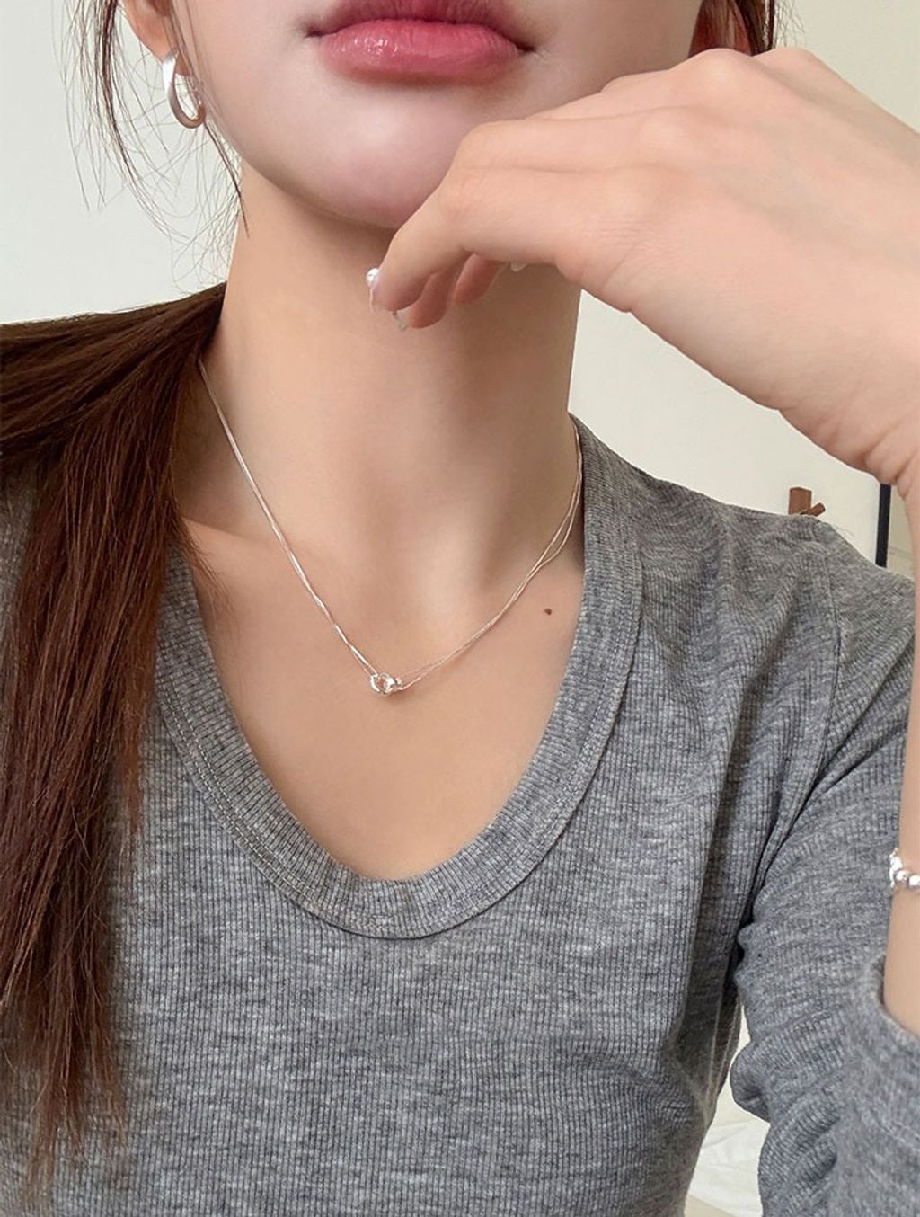 正韓 簡約亮眼雙層純銀質感項鍊*銀*【R0920-159】