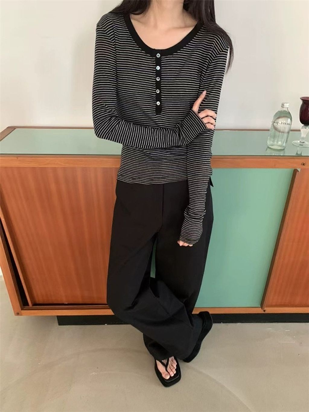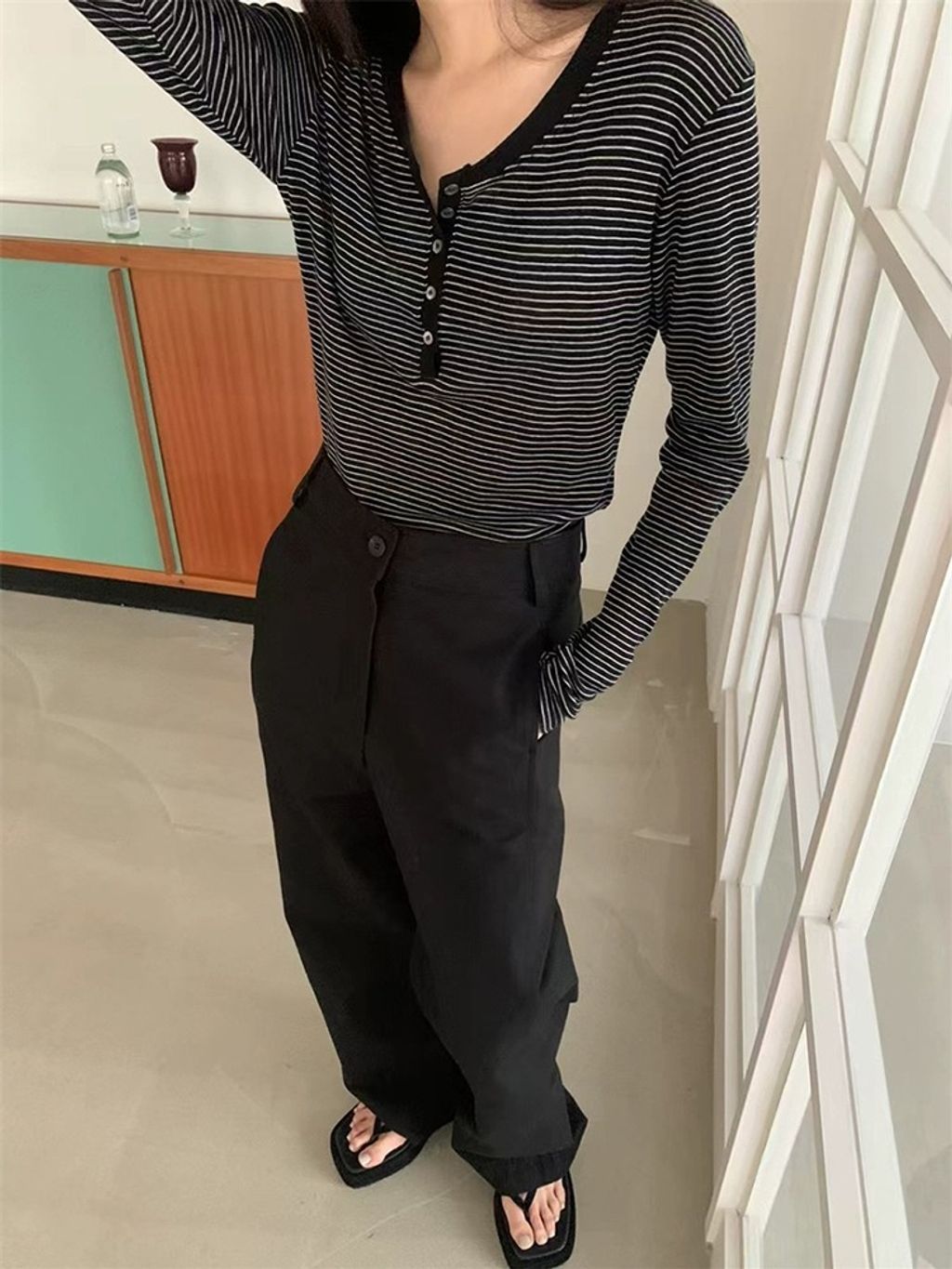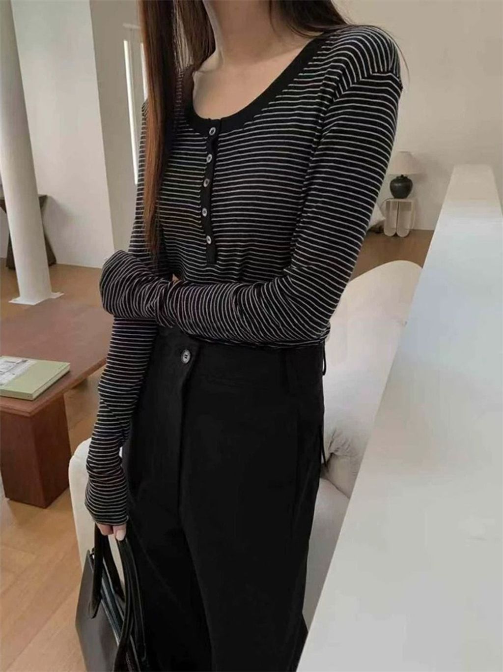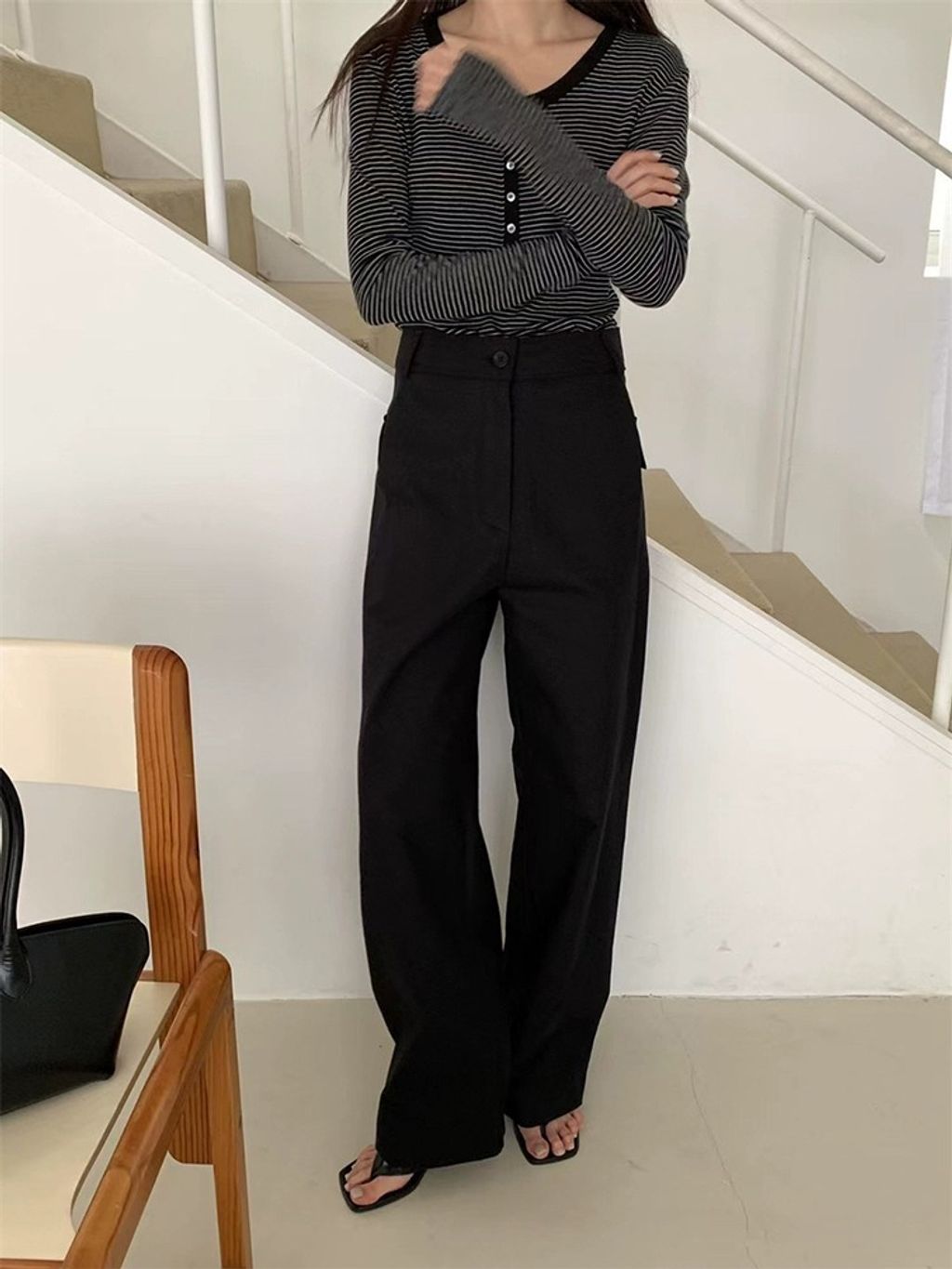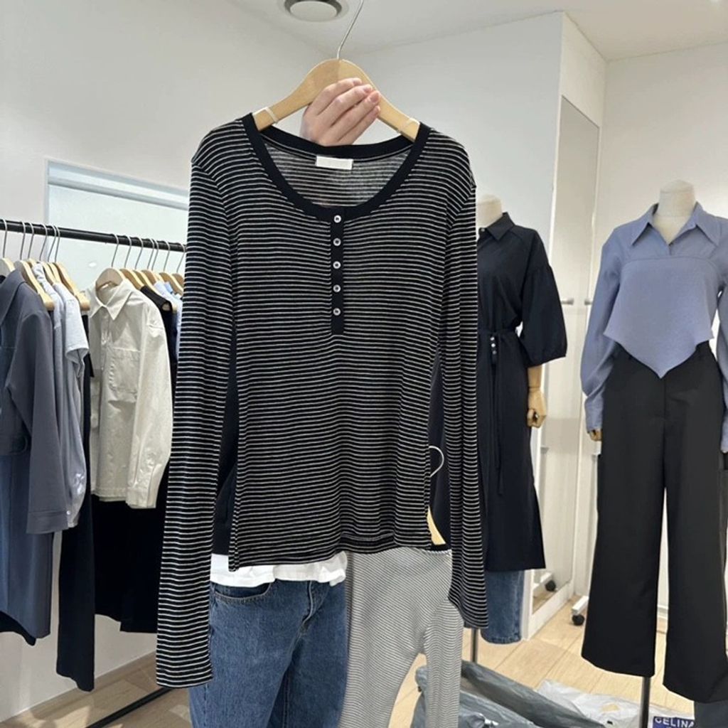 正韓 簡約時尚三扣條紋上衣*圖片色*【R0920-129】