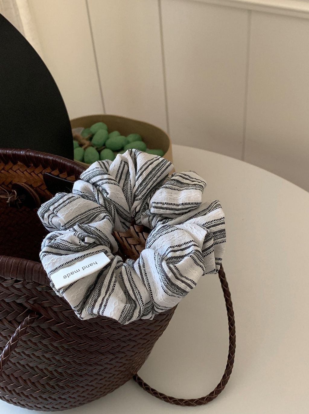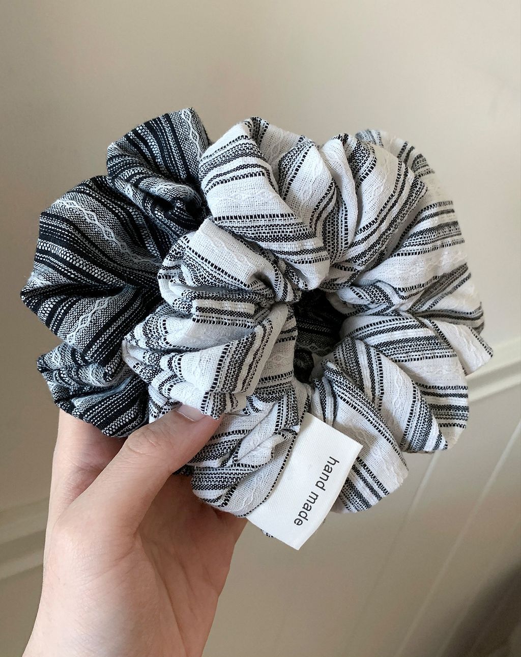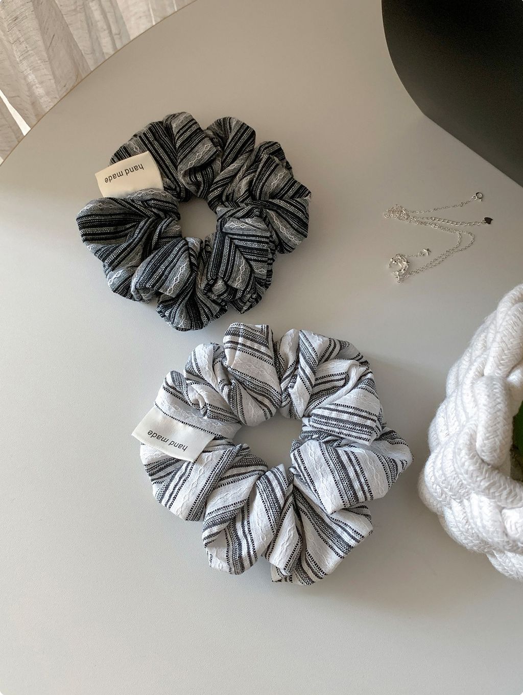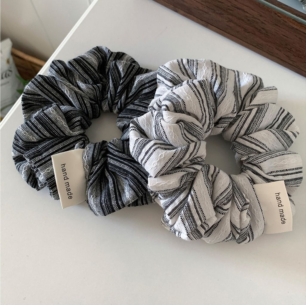 正韓 簡約線條設計感棉麻蓬蓬髮圈*黑白*【R0920-162】
