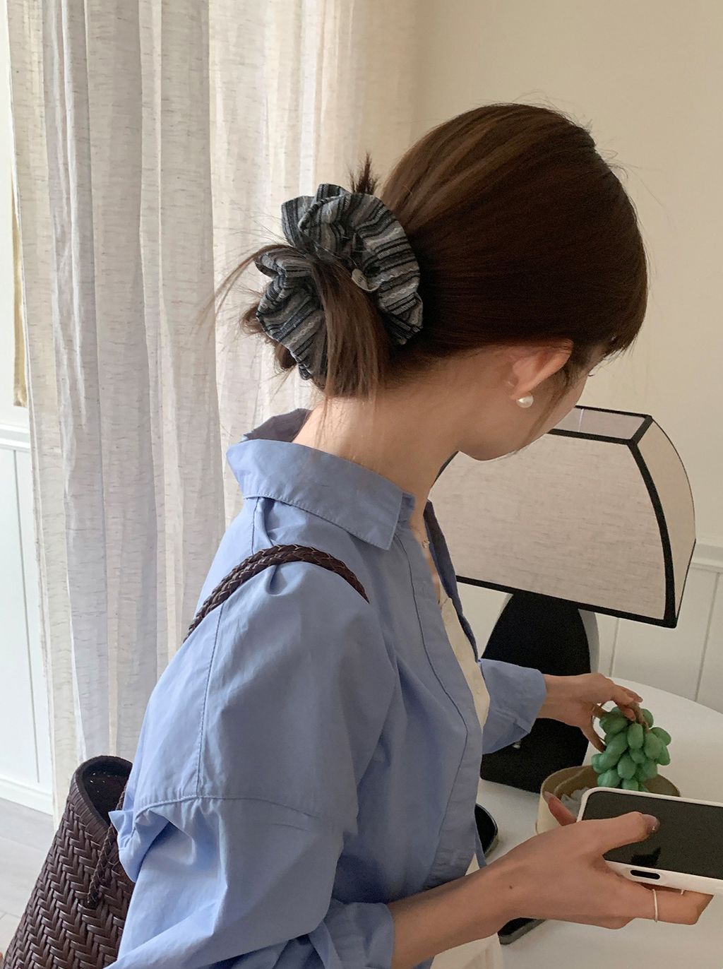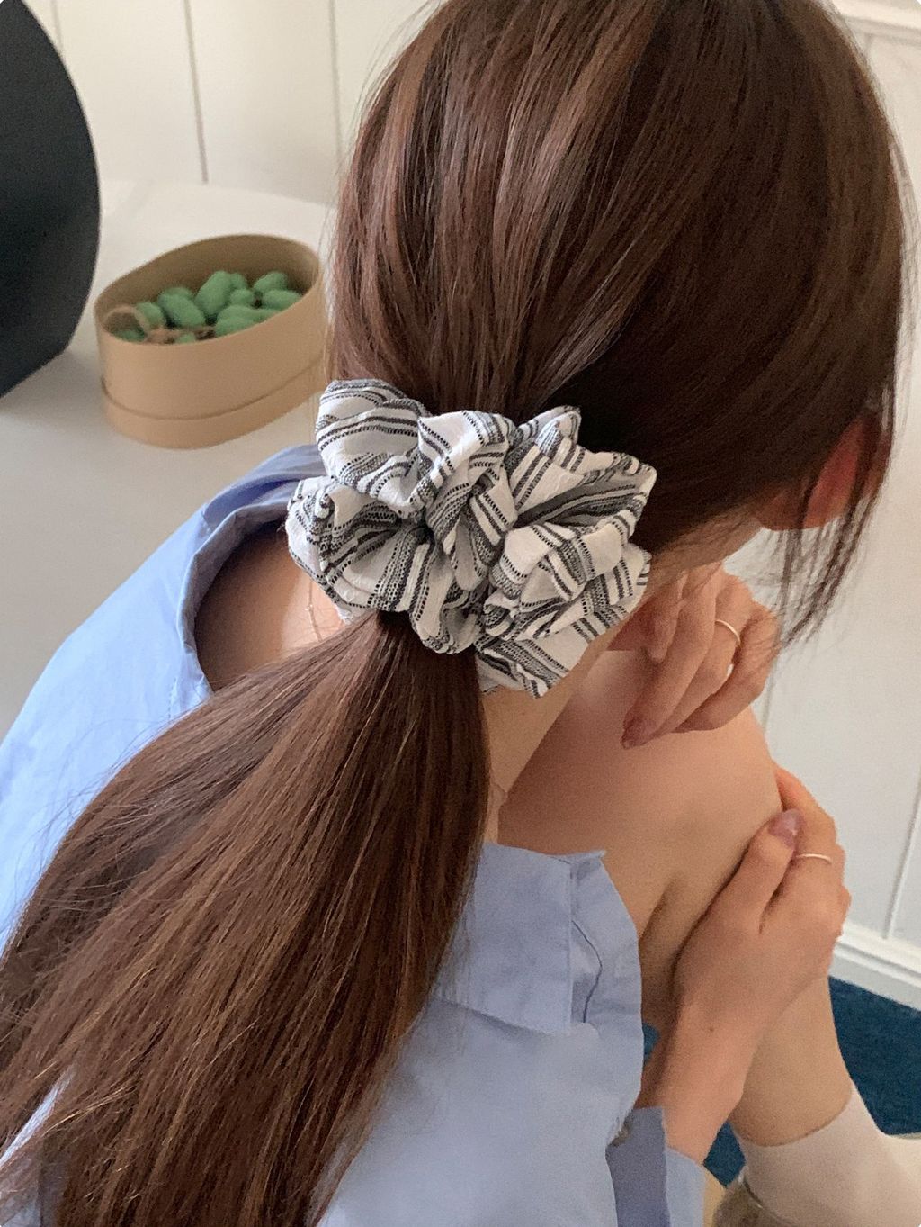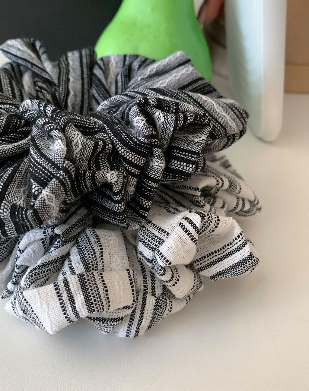 正韓 簡約線條設計感棉麻蓬蓬髮圈*黑白*【R0920-162】