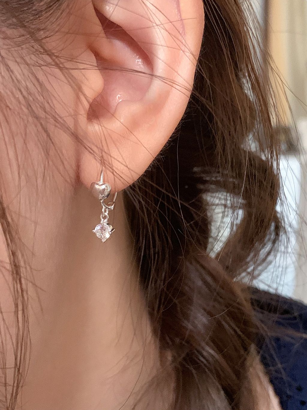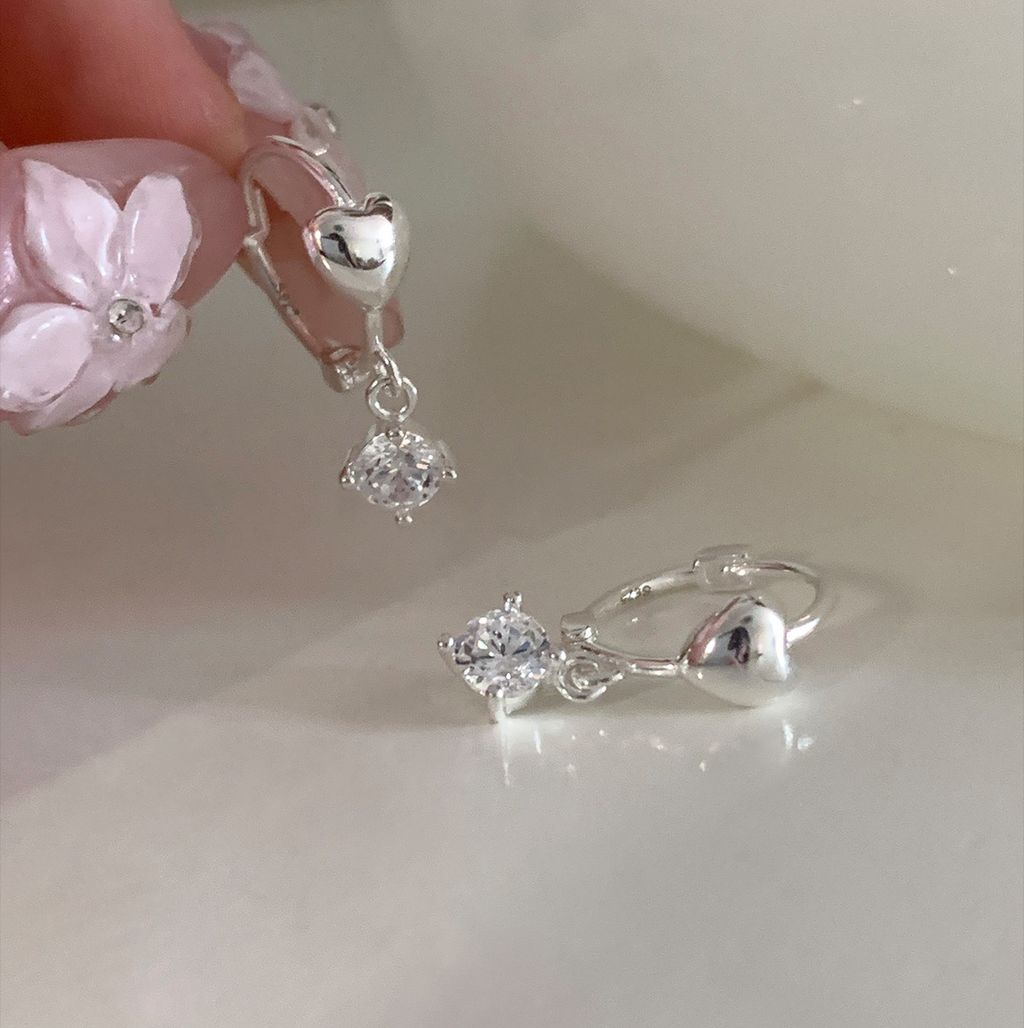 正韓 設計款垂墜愛心質感純銀耳針*銀*【R0920-158】