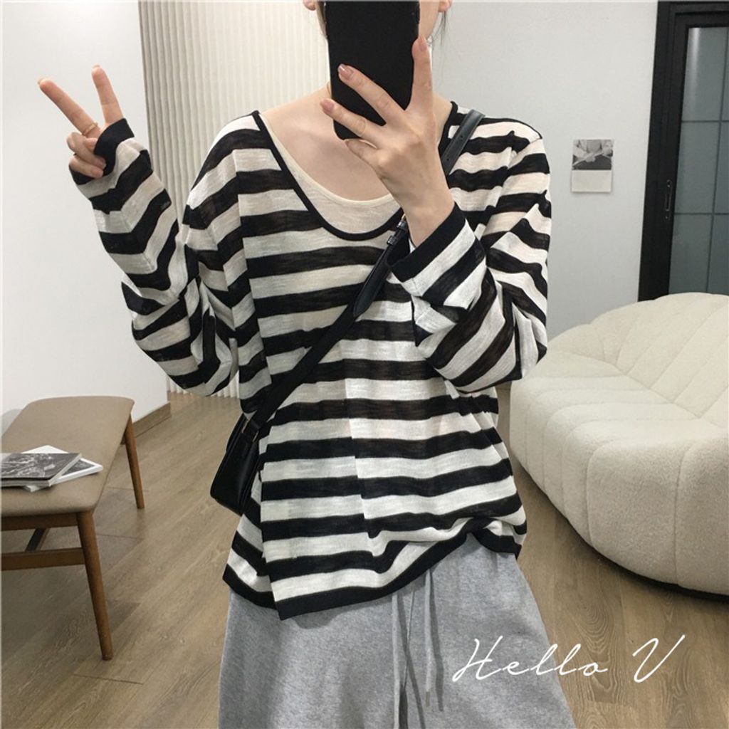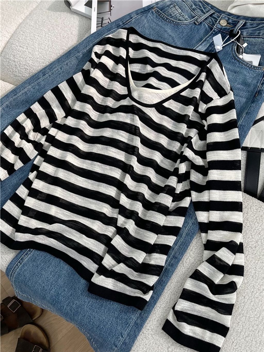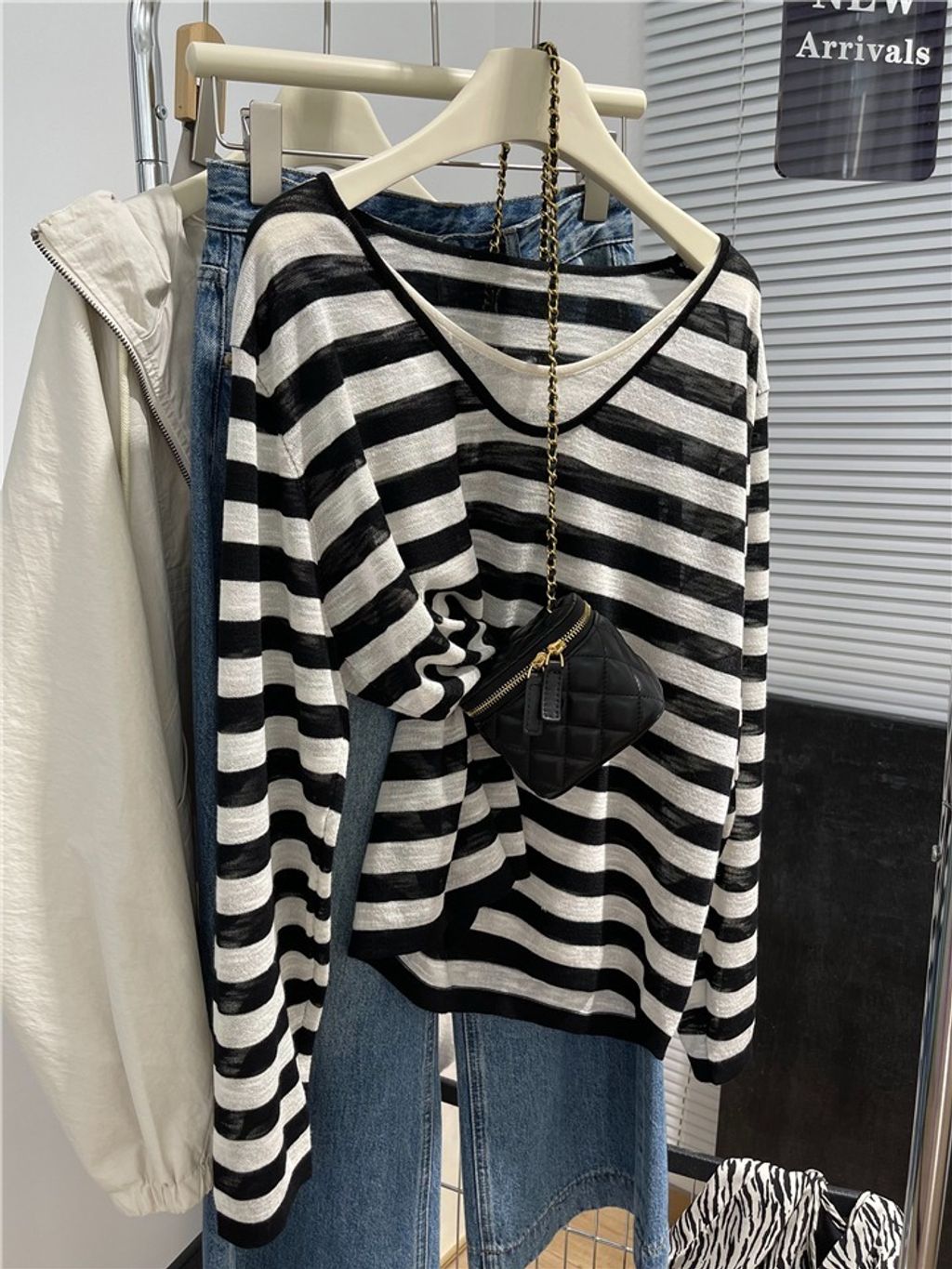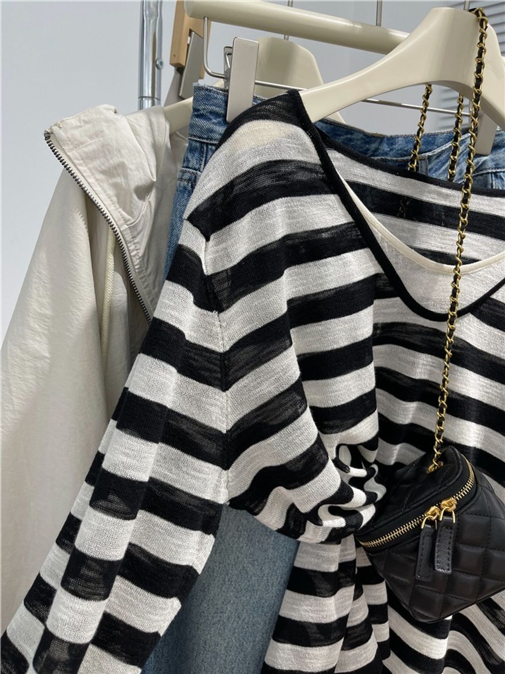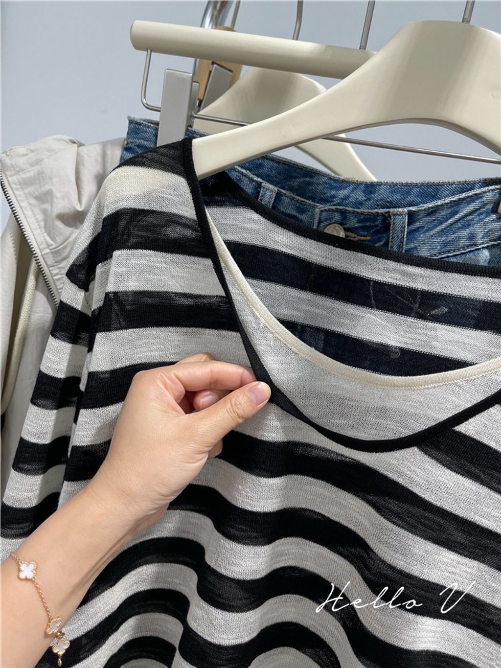 簡約慵懶風格假兩件條紋針織上衣 *黑*【R0920-60】