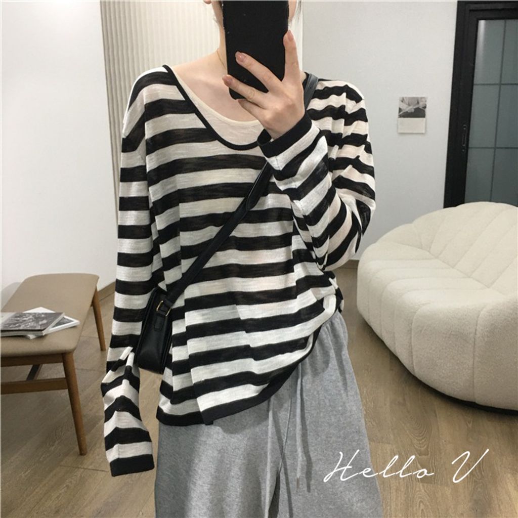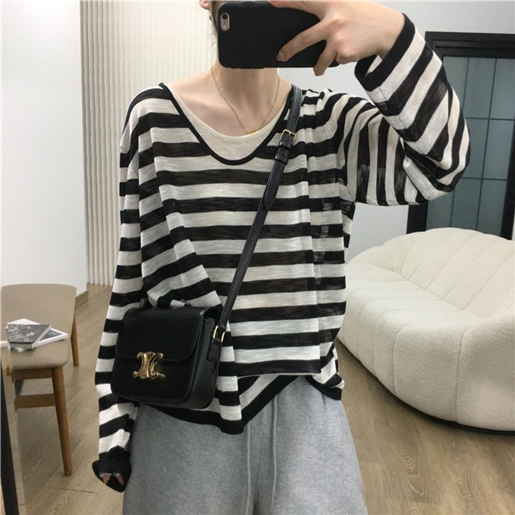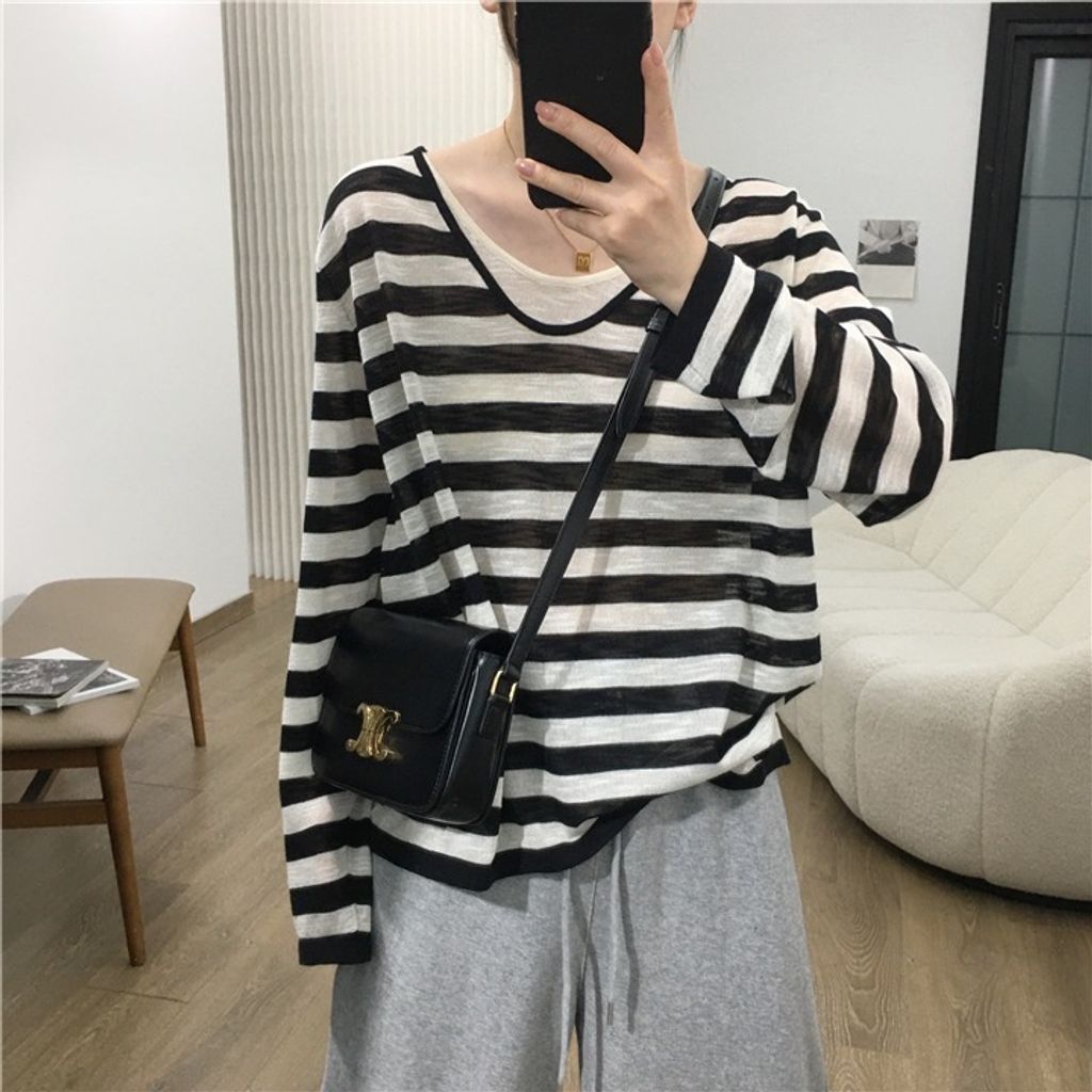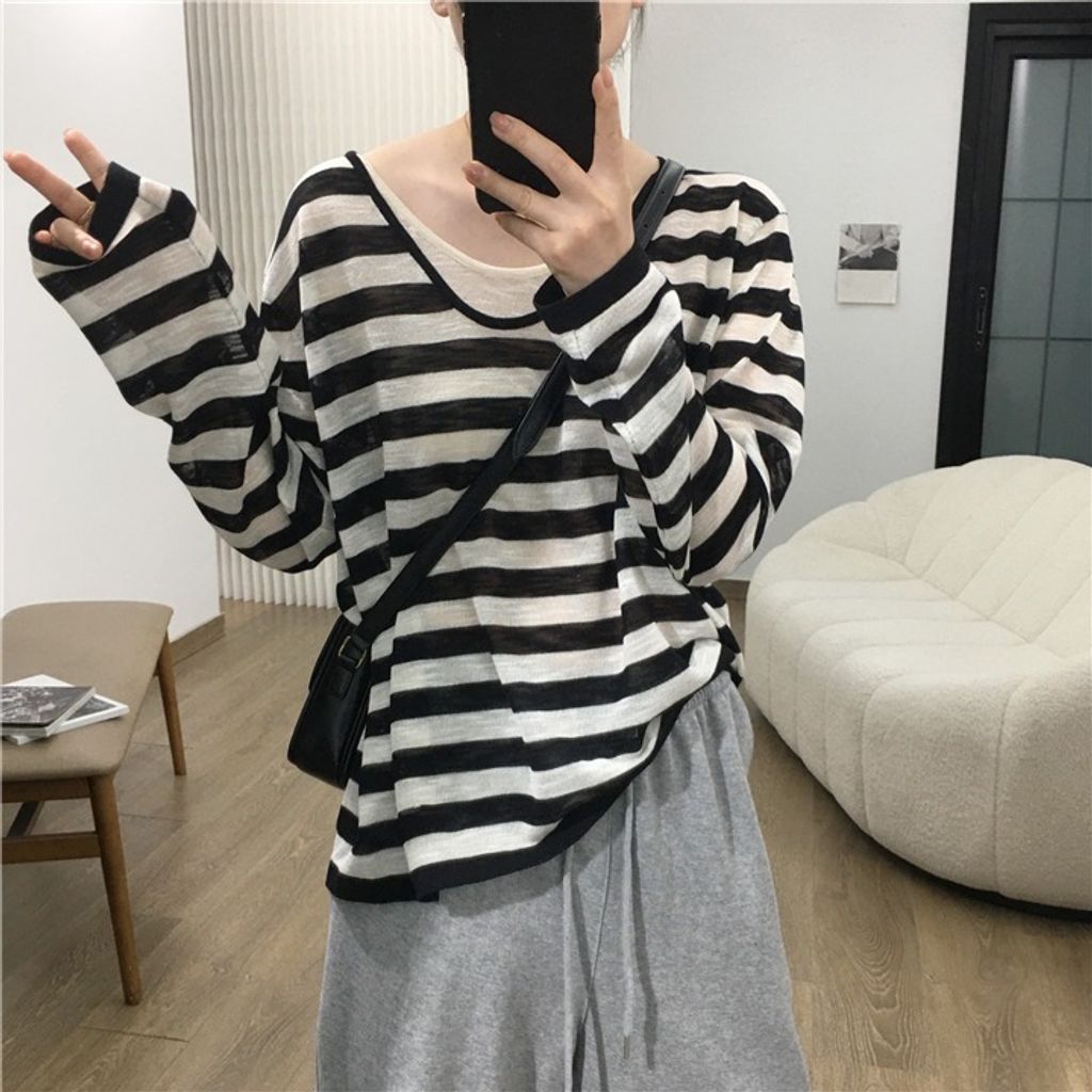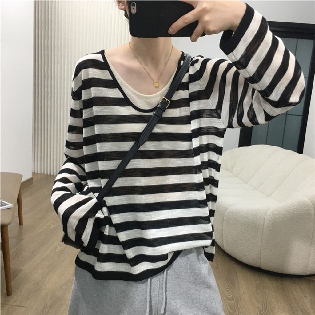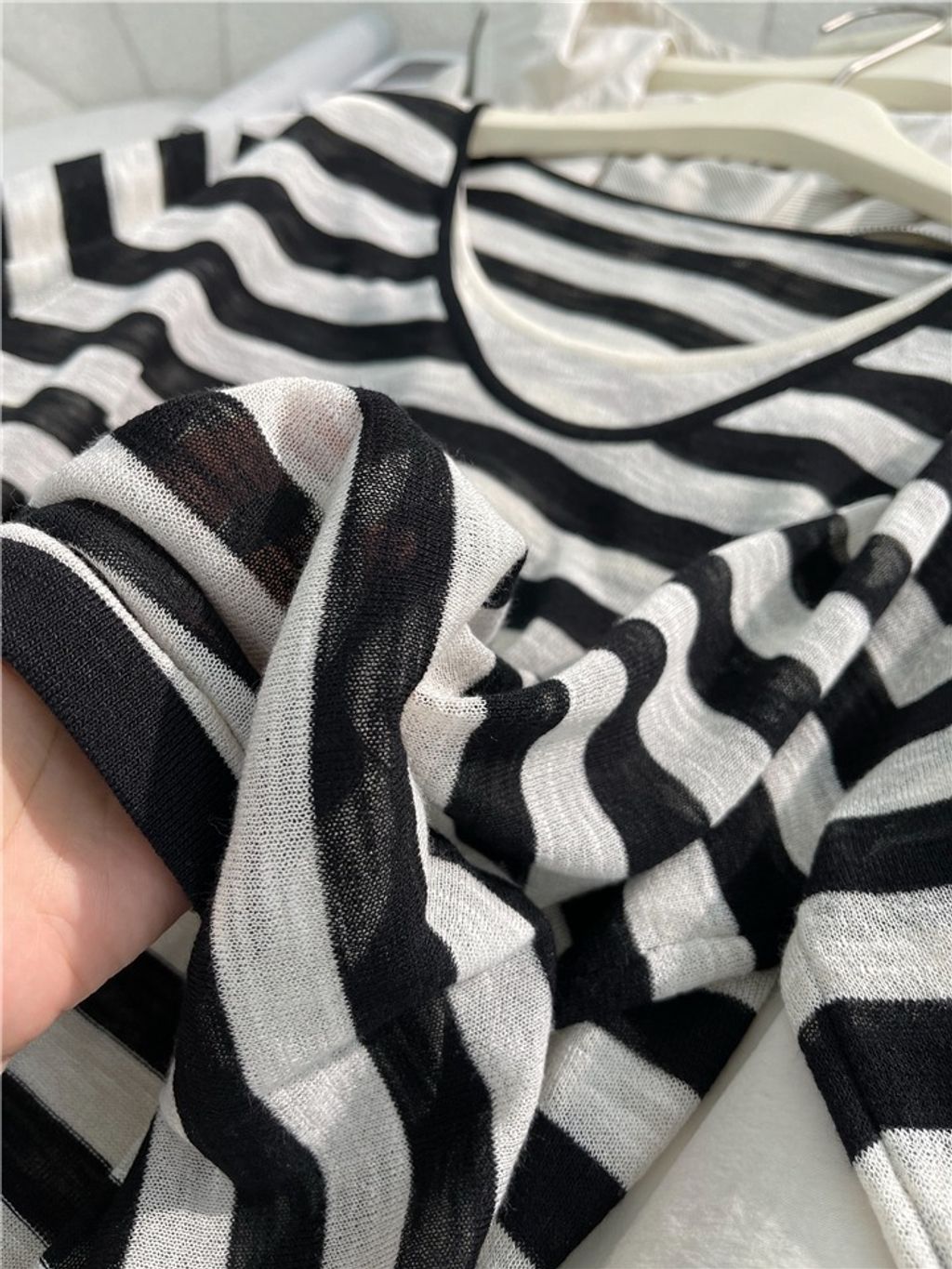 簡約慵懶風格假兩件條紋針織上衣 *黑*【R0920-60】