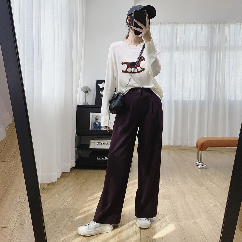 純色長腿設計天絲羊毛質感休閒褲*灰黑紫*S-XL【R0920-44】