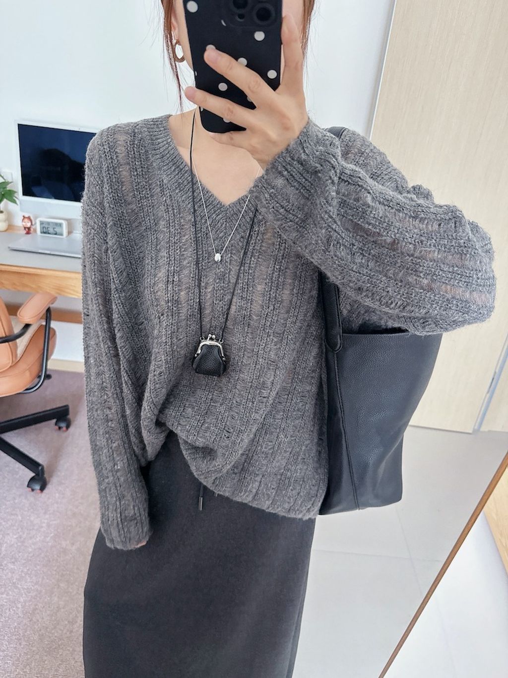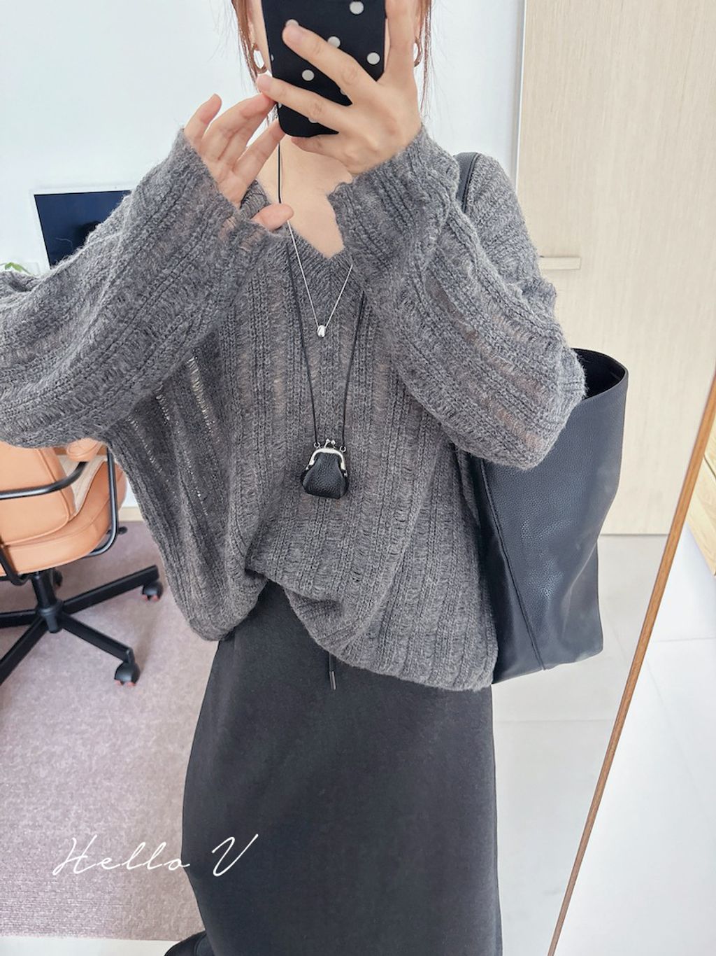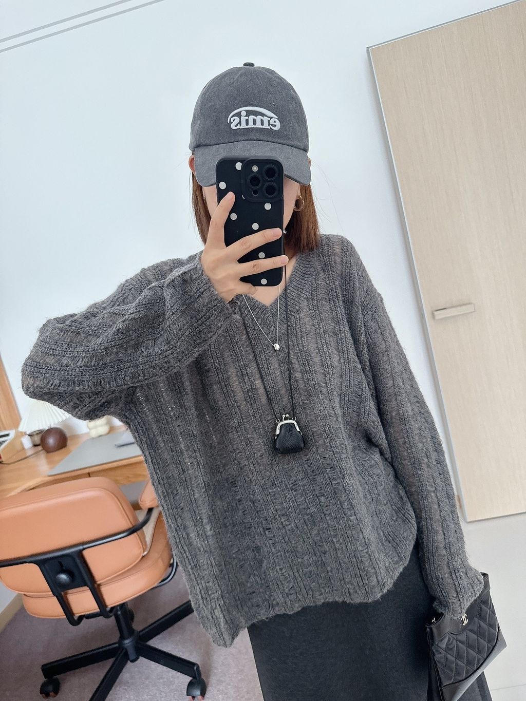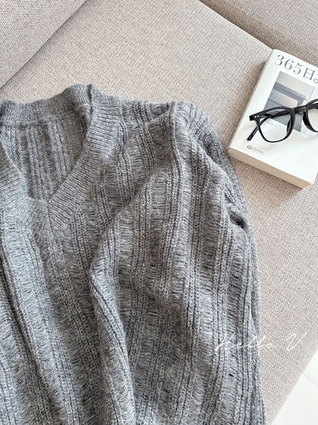 輕柔溫暖織感質感V領針織毛衣 *灰白黑綠*【R0920-74】