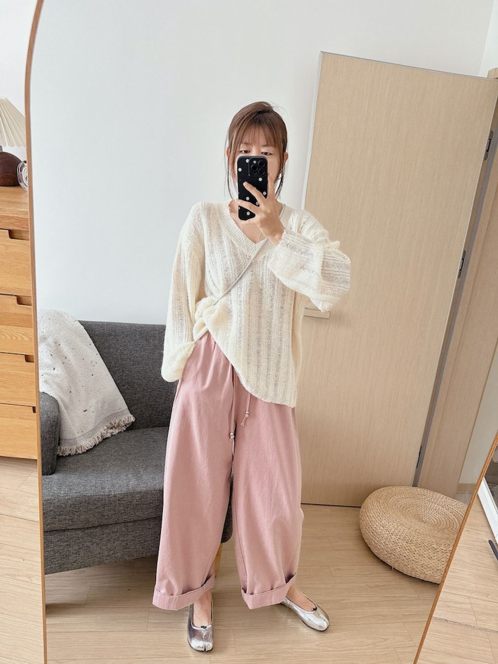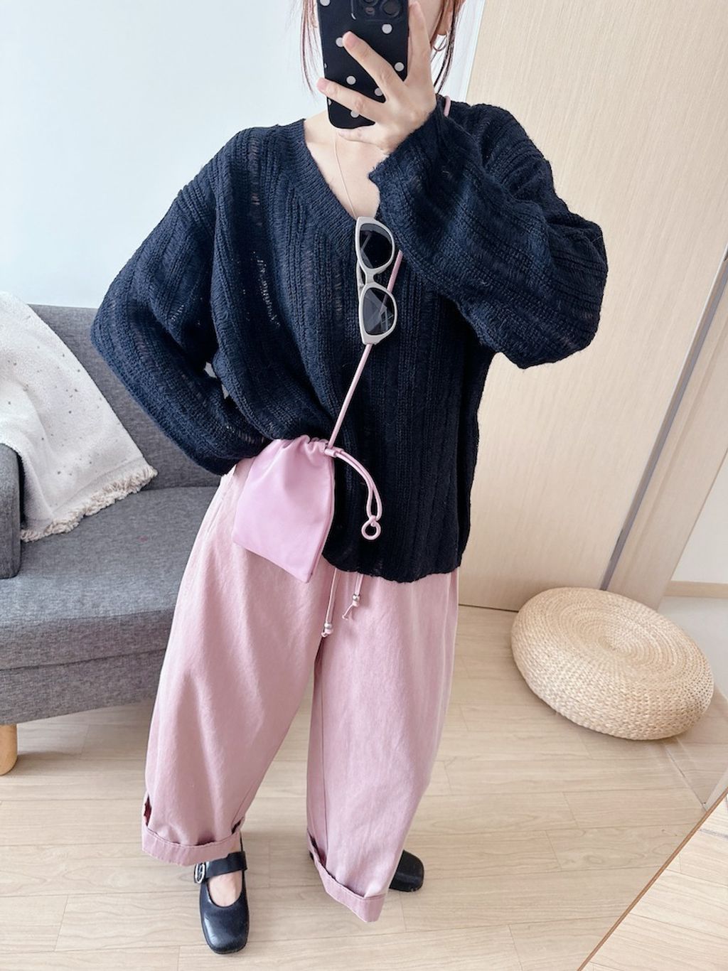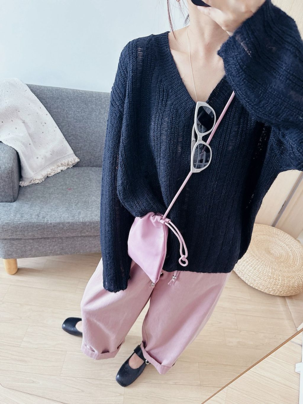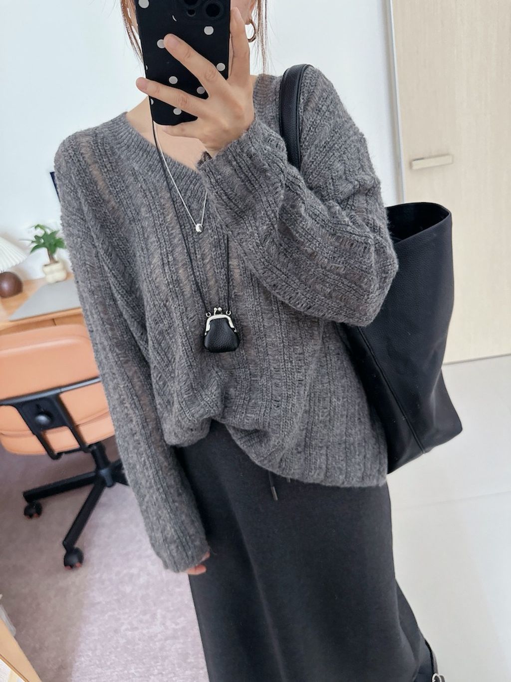 輕柔溫暖織感質感V領針織毛衣 *灰白黑綠*【R0920-74】