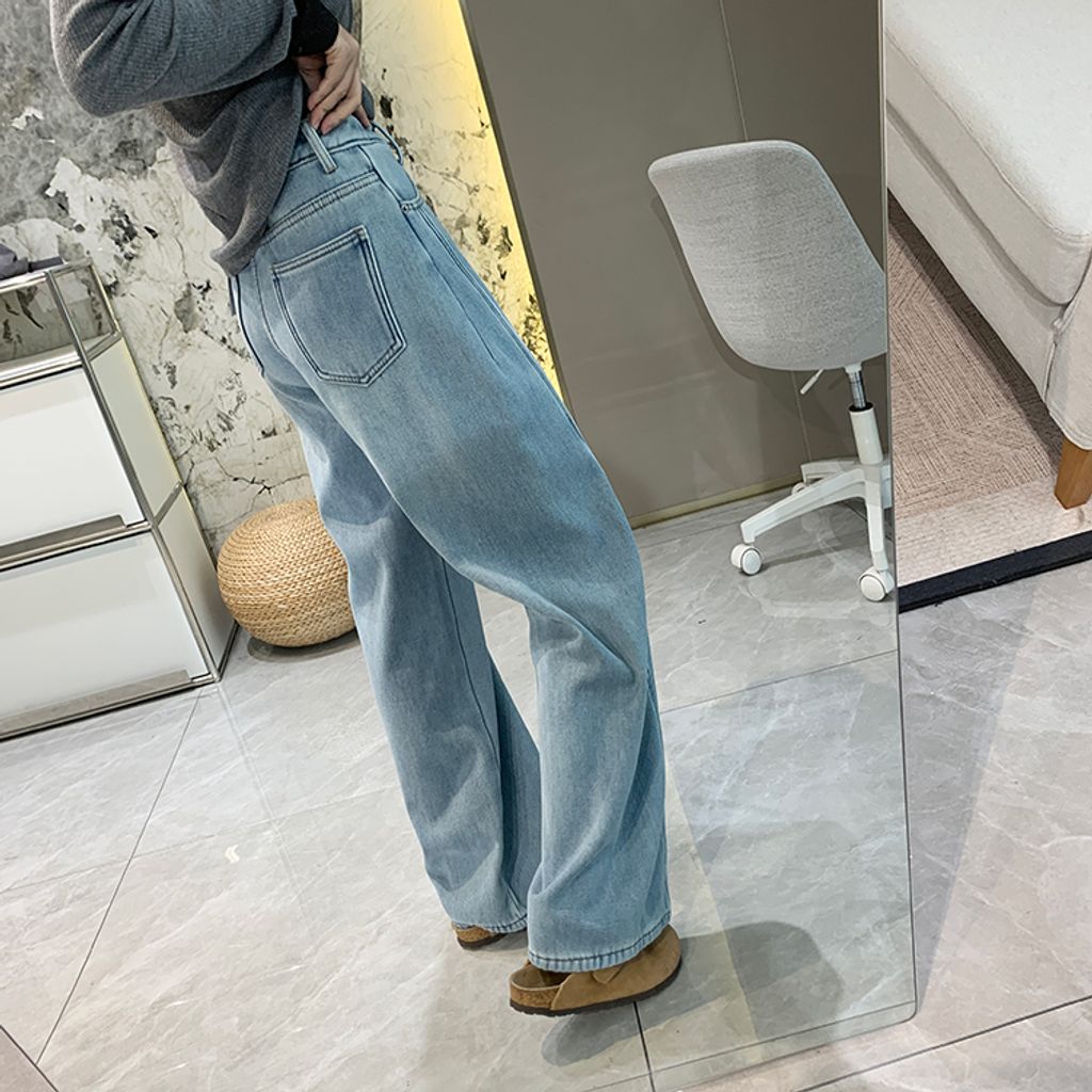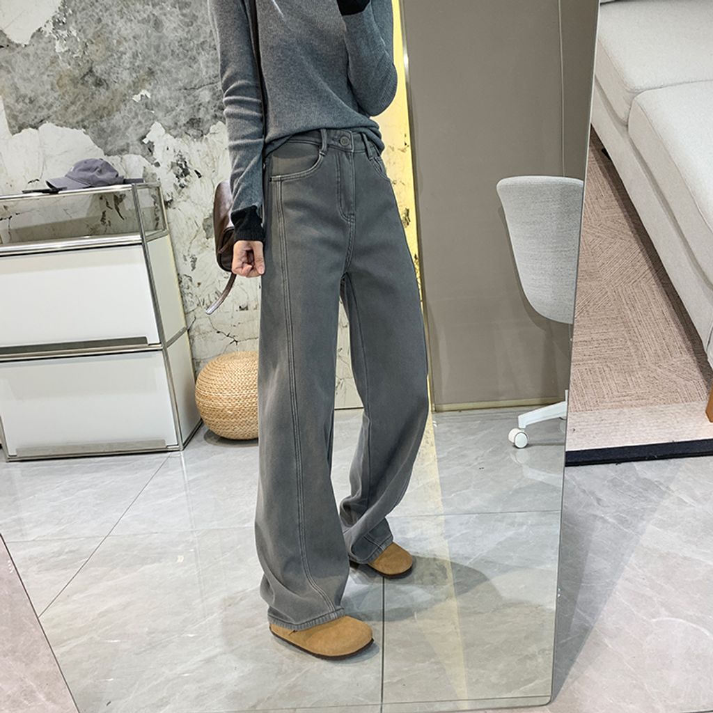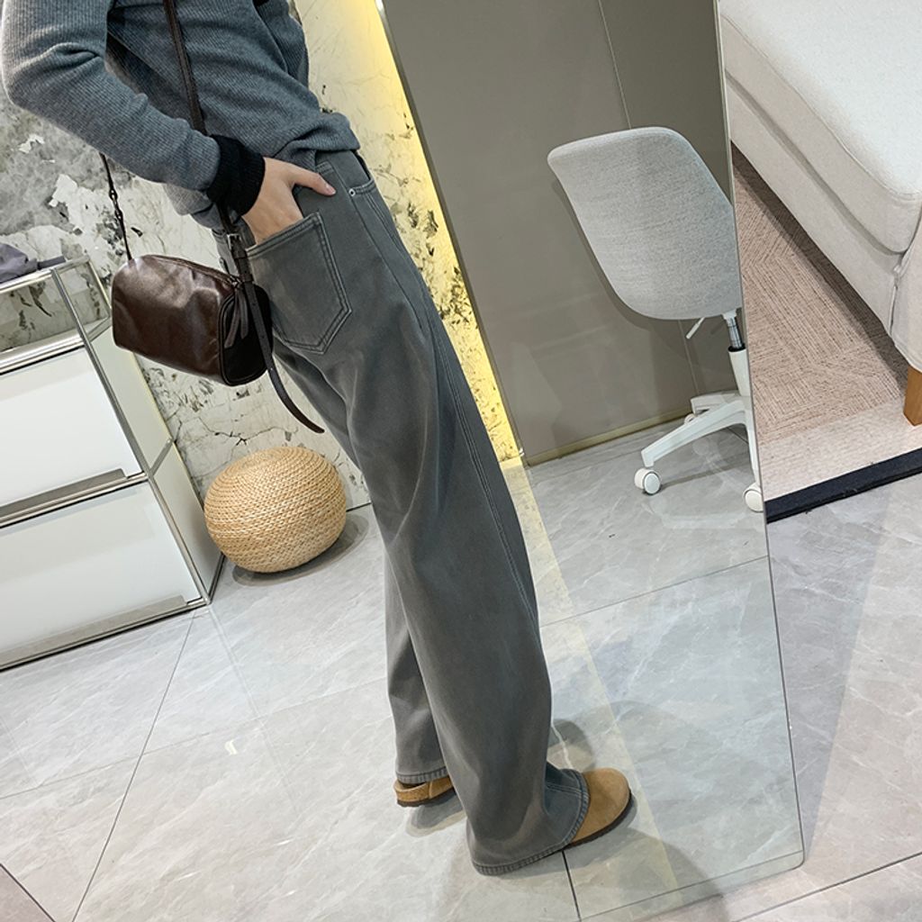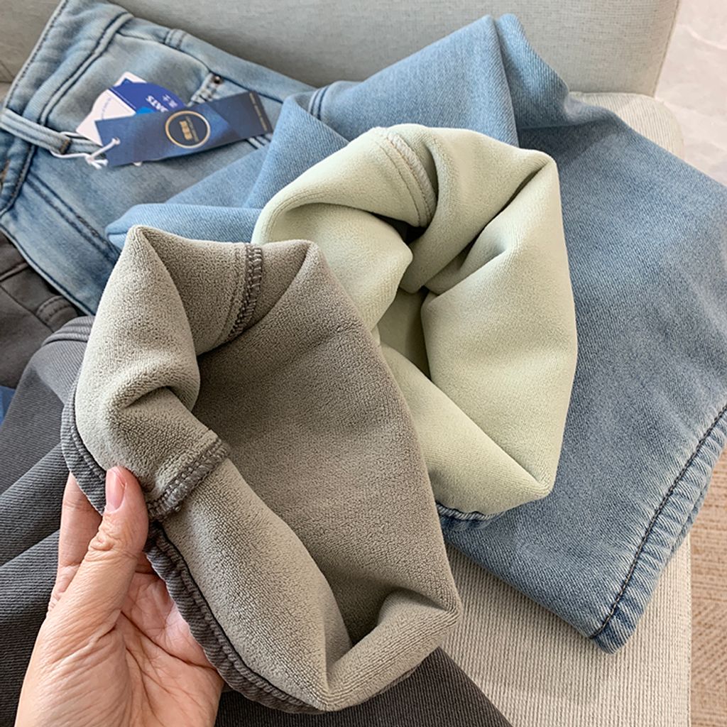 亮眼復古刷色保暖刷毛好穿牛仔褲*灰藍*【S1216-39】