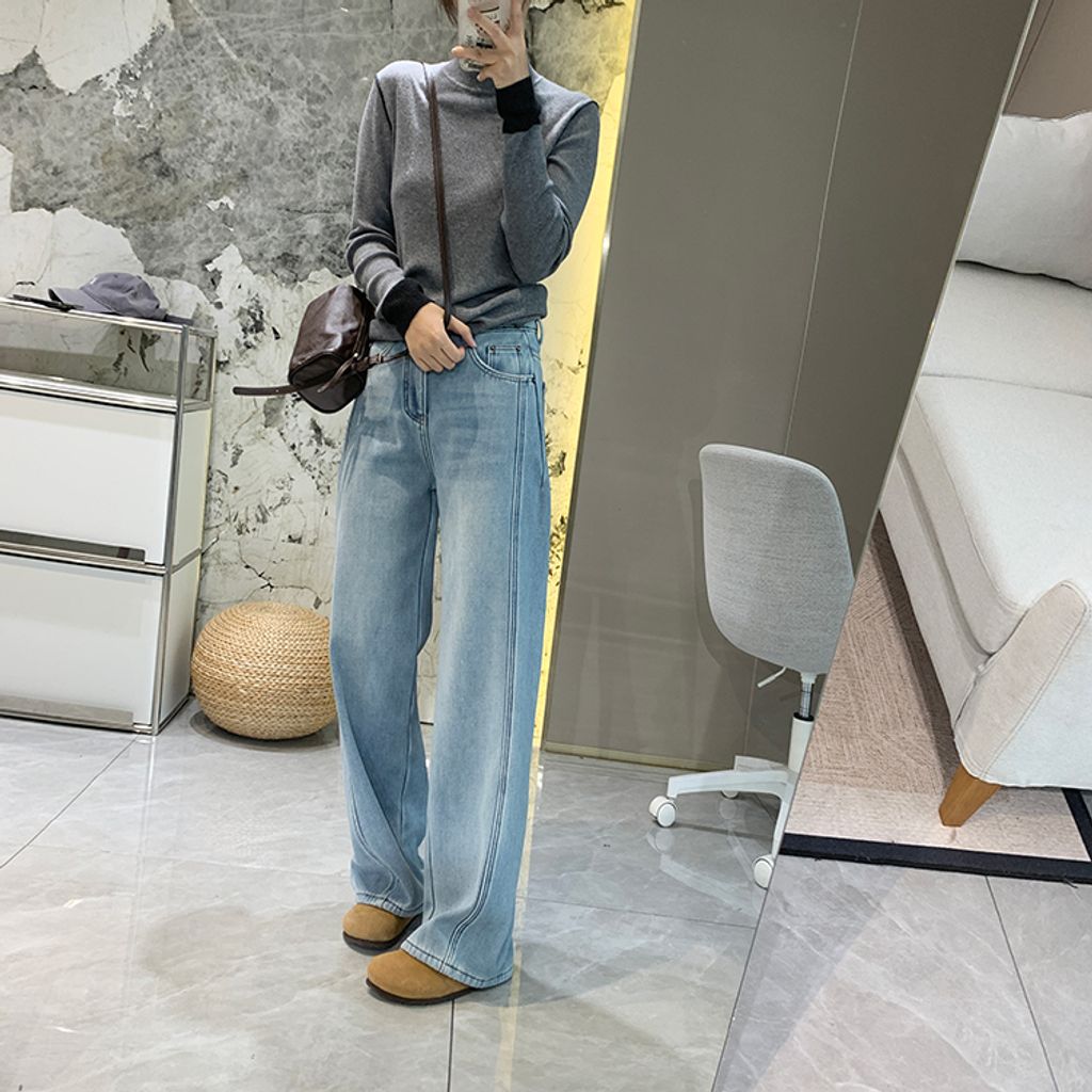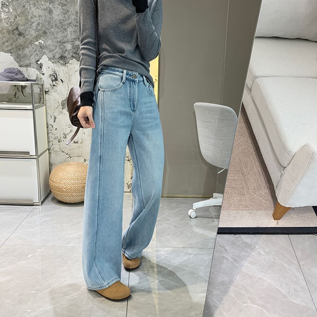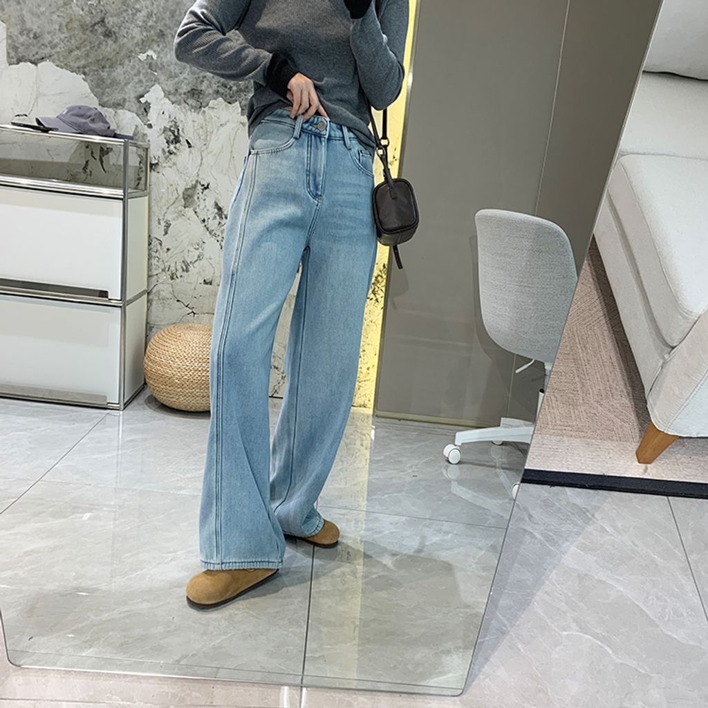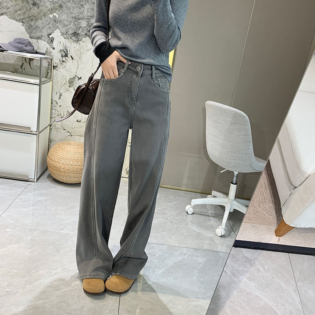 亮眼復古刷色保暖刷毛好穿牛仔褲*灰藍*【S1216-39】